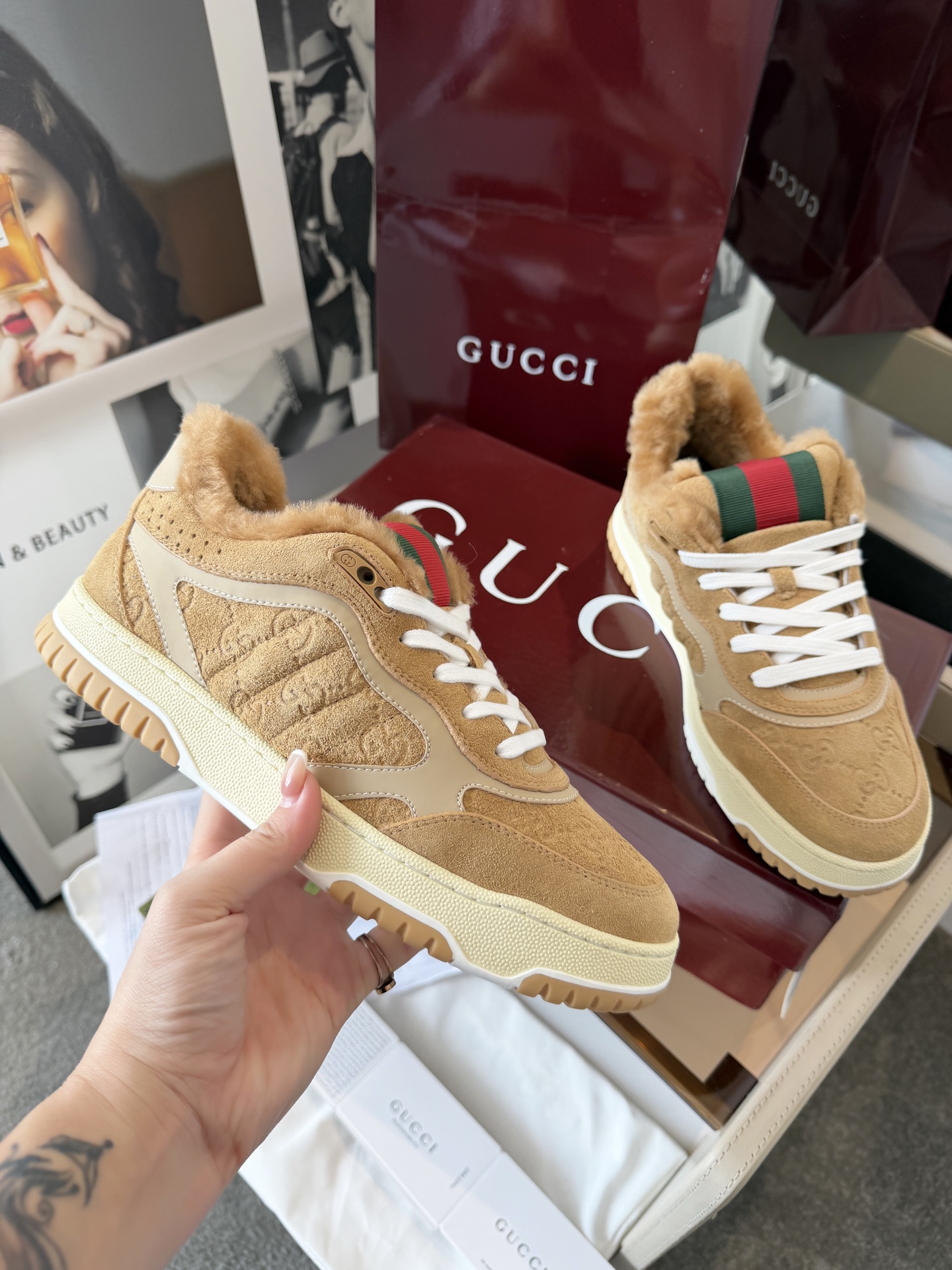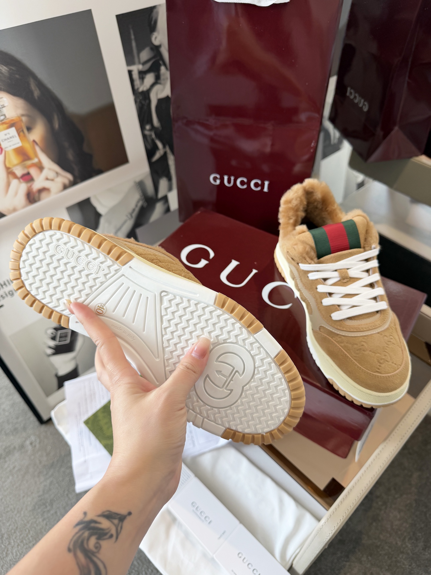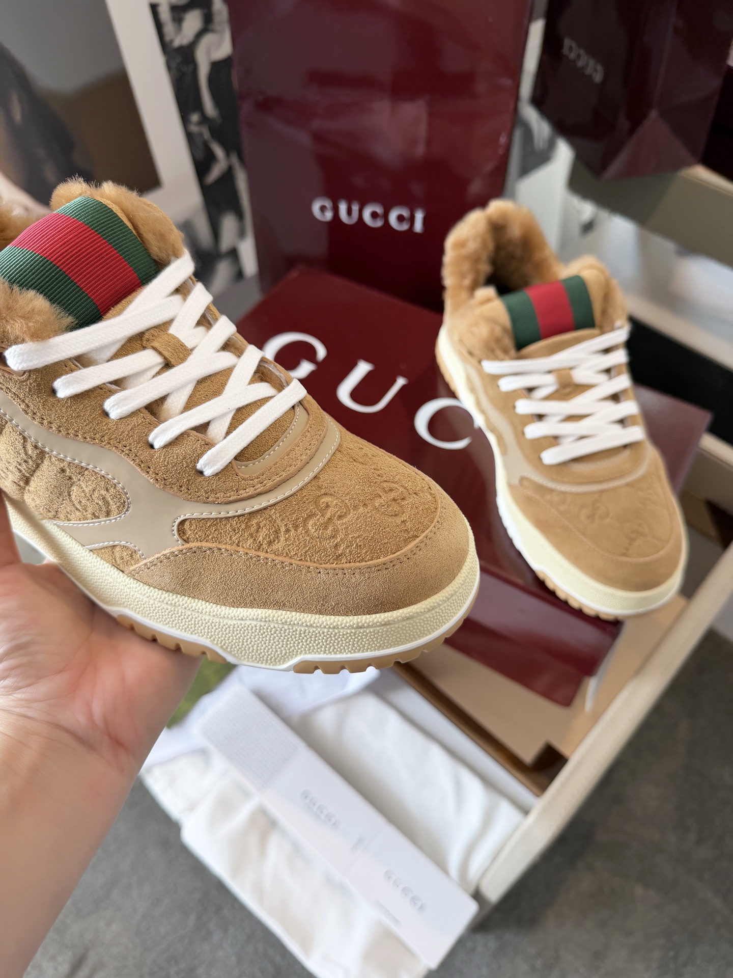 这款鞋子是AAAAA 1:1 质量 (非常棒). 使用了和原版一模一样的材料. 商标部分也保持了和古奇/Gucci一样. 图片拍摄是实物鞋子拍摄, 您所收到的实物保证和我们图片一模一样.