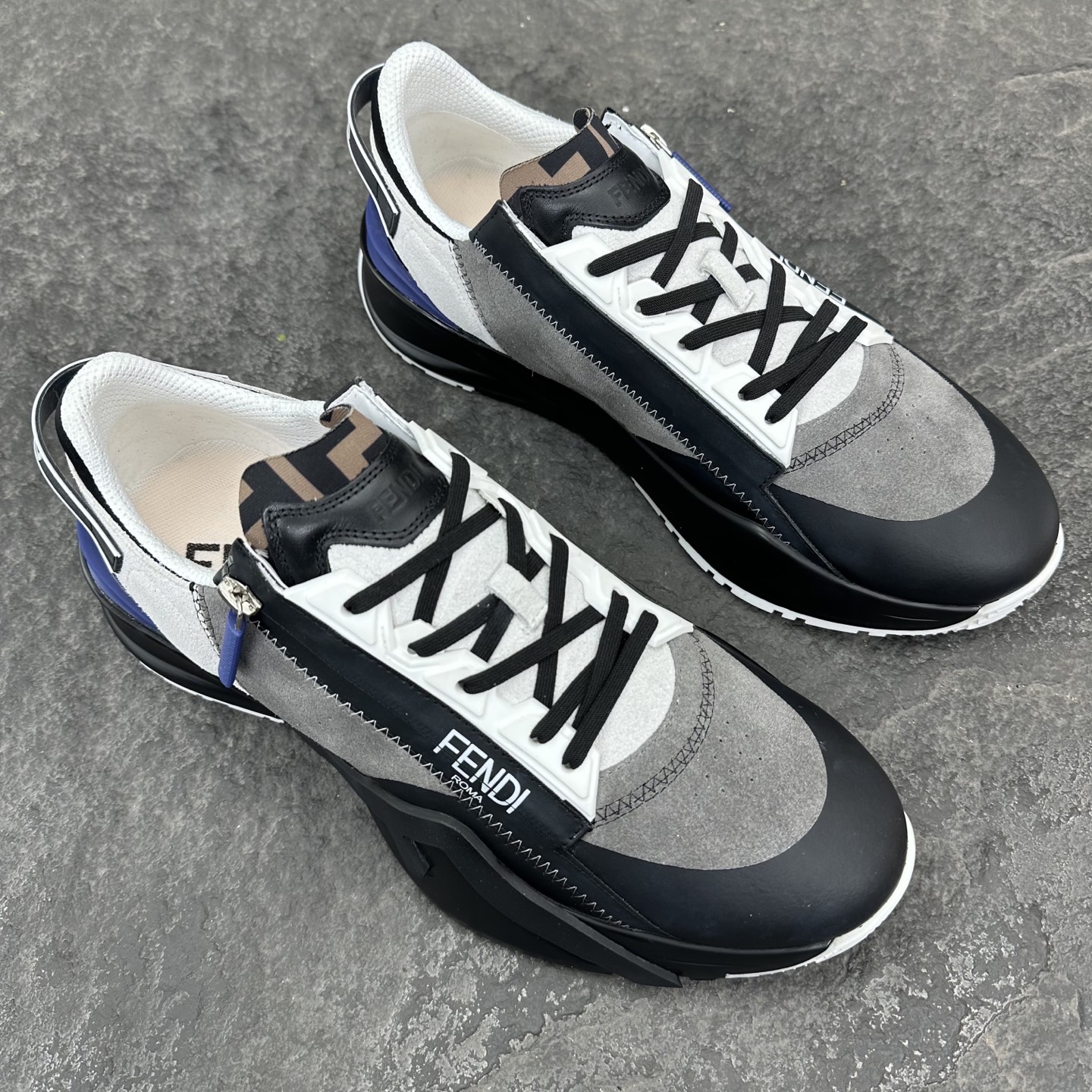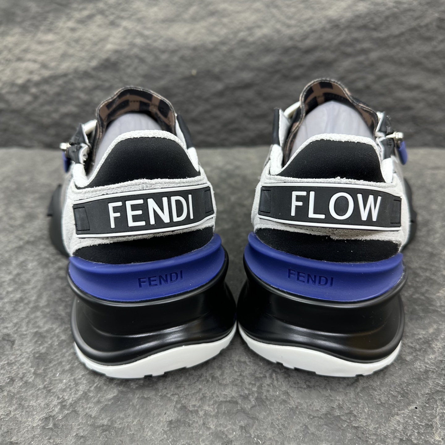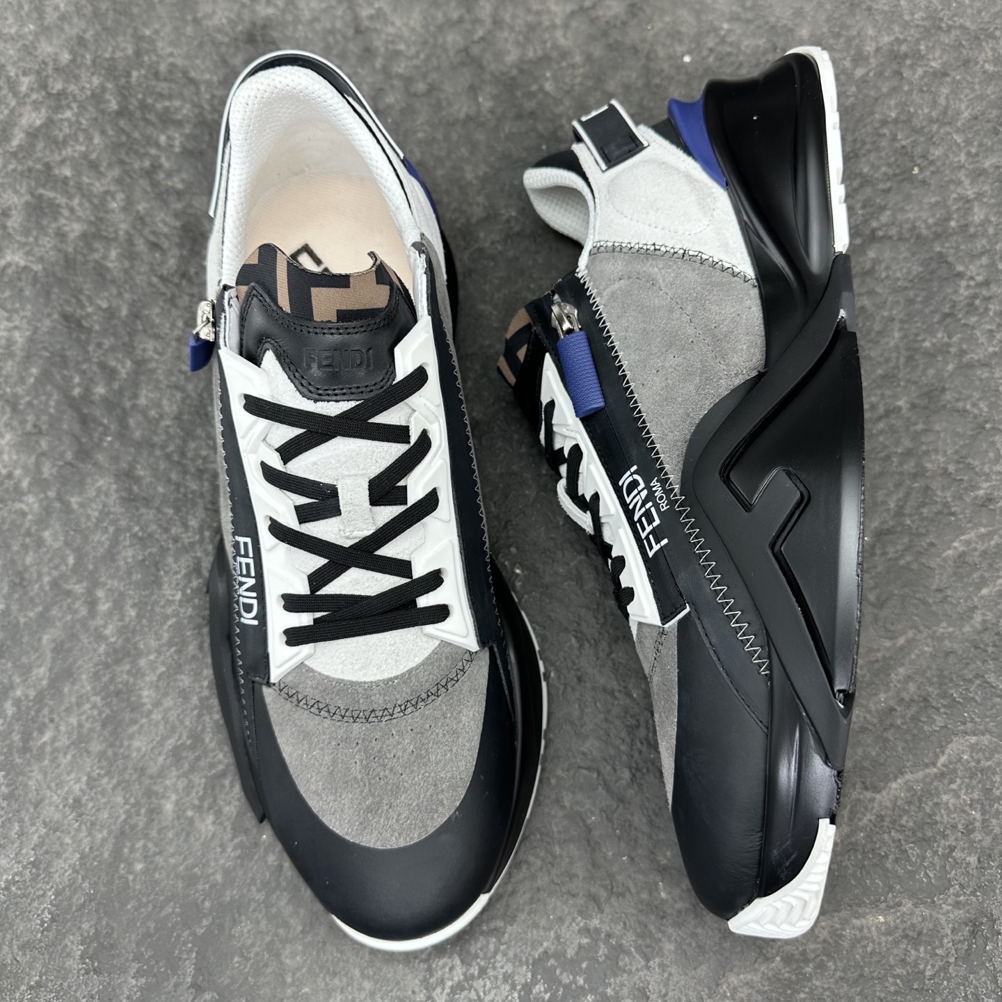 这款鞋子是AAAAA 1:1 质量 (非常棒). 使用了和原版一模一样的材料. 商标部分也保持了和芬迪/Fendi一样. 图片拍摄是实物鞋子拍摄, 您所收到的实物保证和我们图片一模一样.