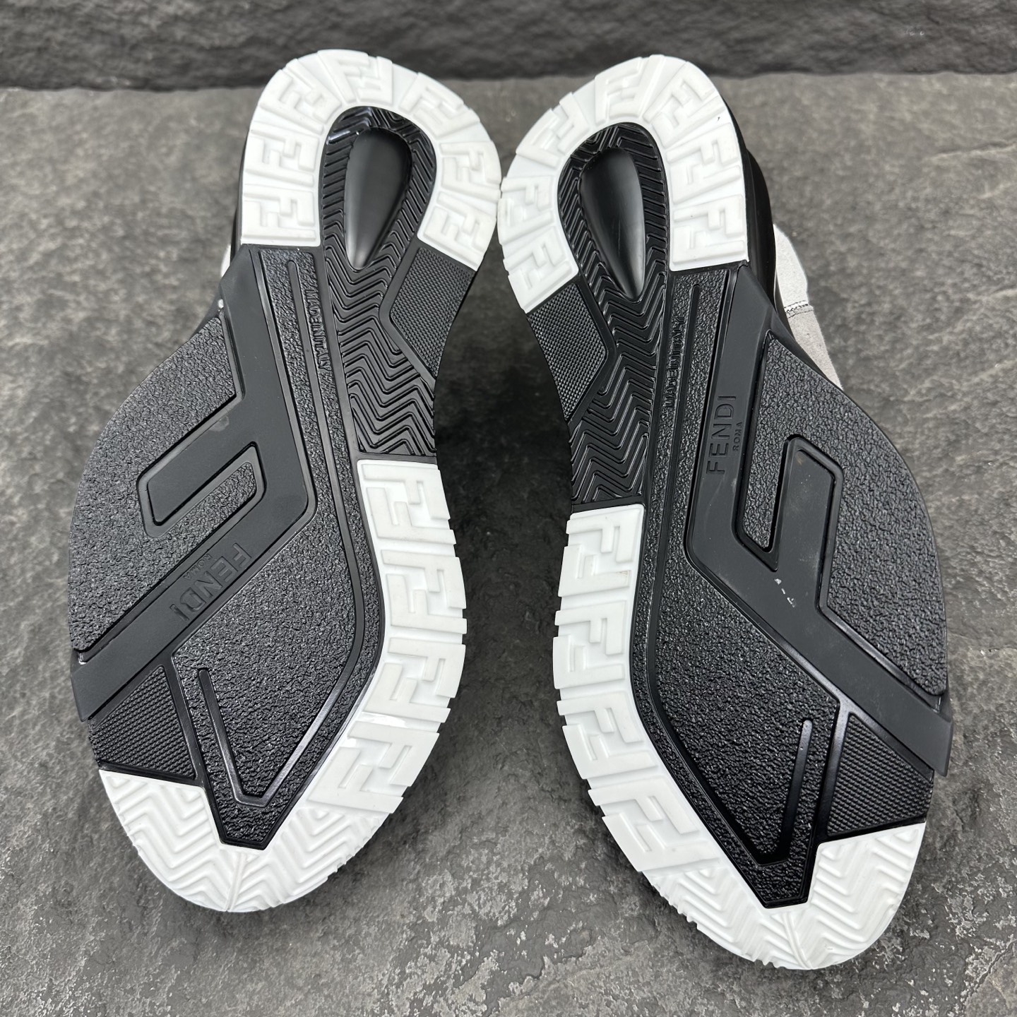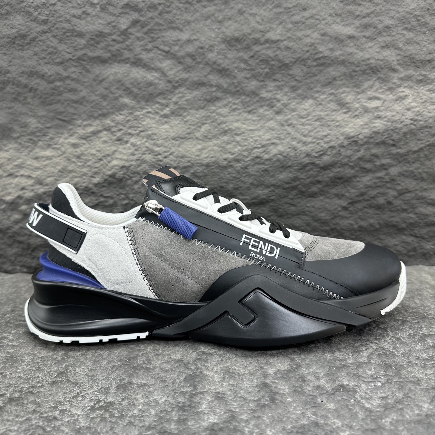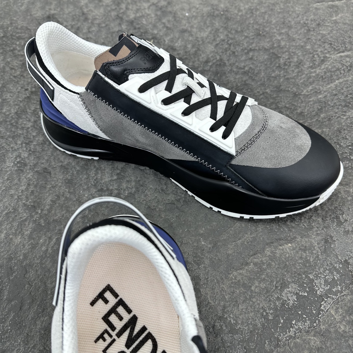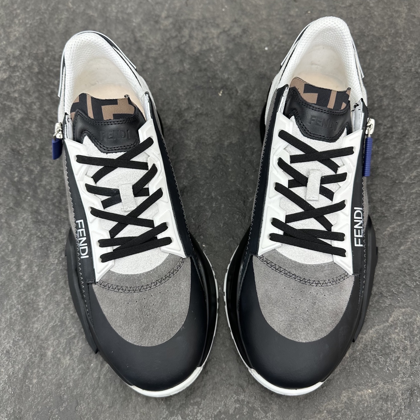 这款鞋子是AAAAA 1:1 质量 (非常棒). 使用了和原版一模一样的材料. 商标部分也保持了和芬迪/Fendi一样. 图片拍摄是实物鞋子拍摄, 您所收到的实物保证和我们图片一模一样.