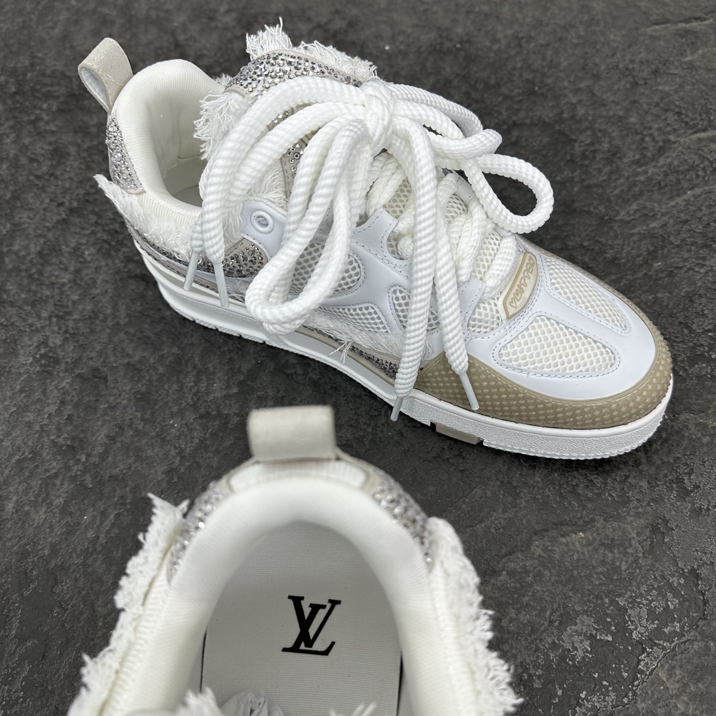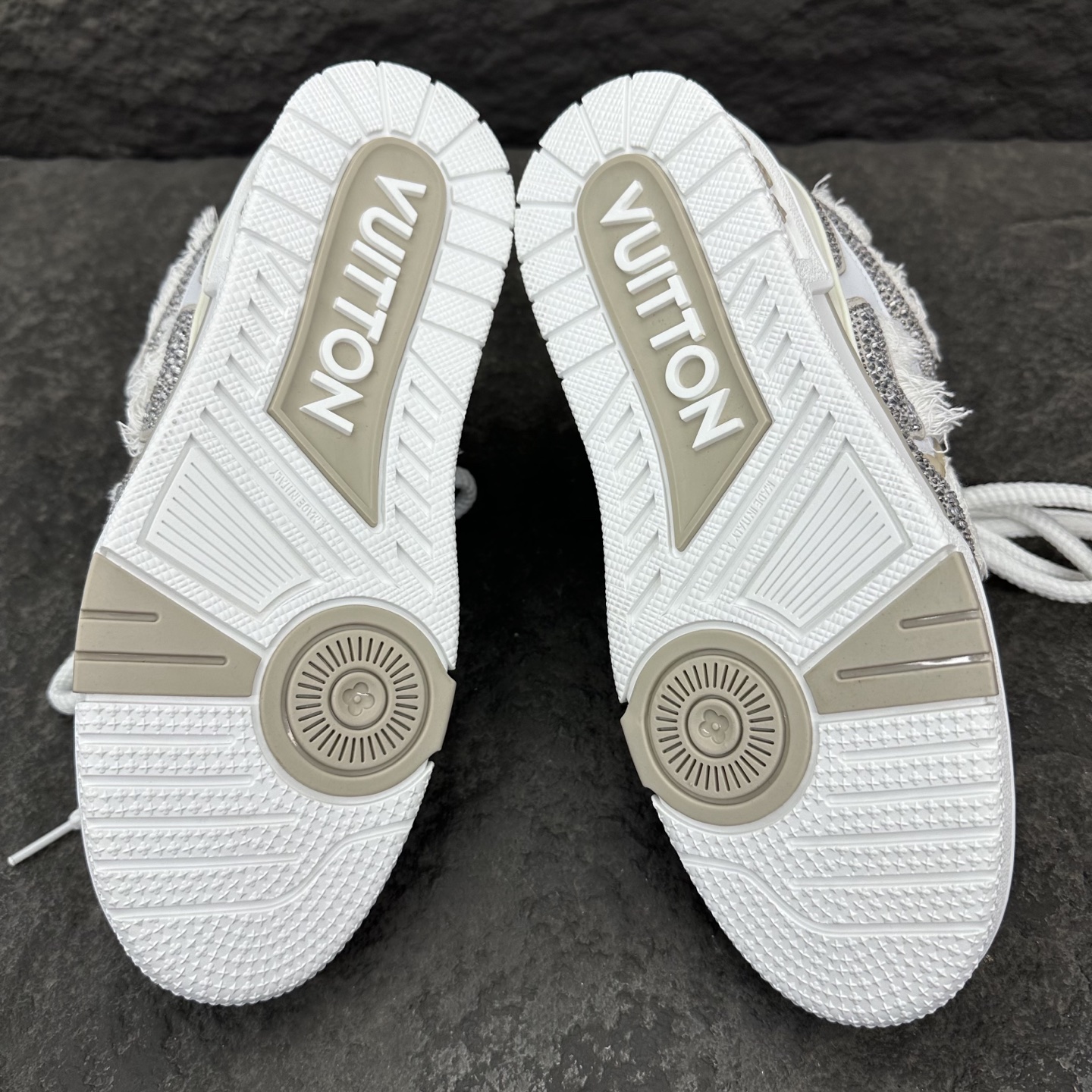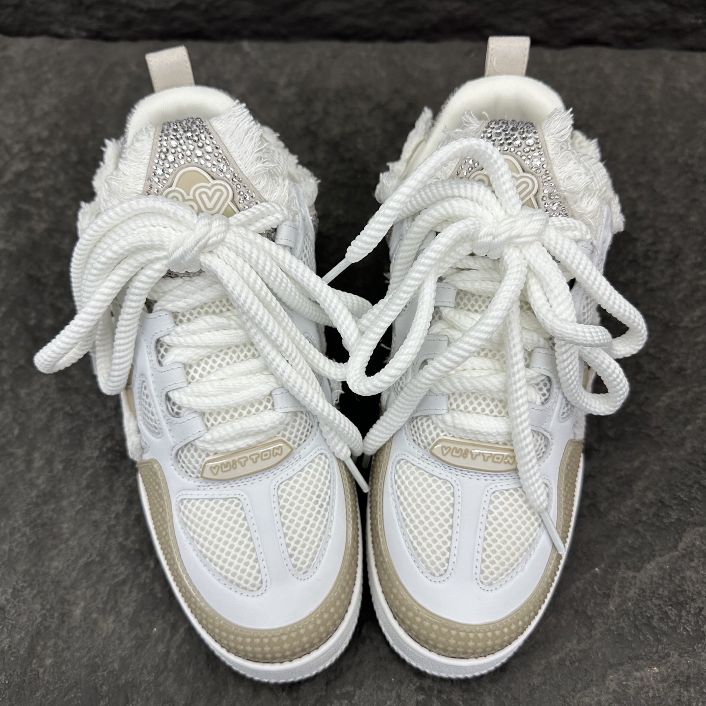 这款鞋子是AAAAA 1:1 质量 (非常棒). 使用了和原版一模一样的材料. 商标部分也保持了和路易威登/Louis Vuitton一样. 图片拍摄是实物鞋子拍摄, 您所收到的实物保证和我们图片一模一样.