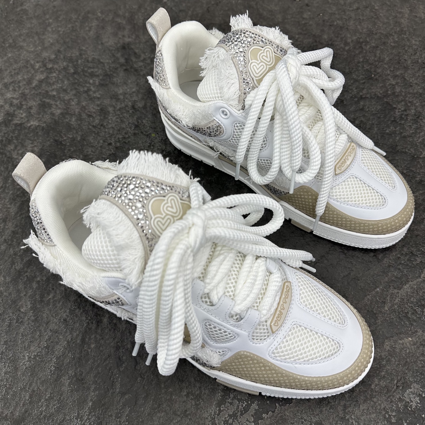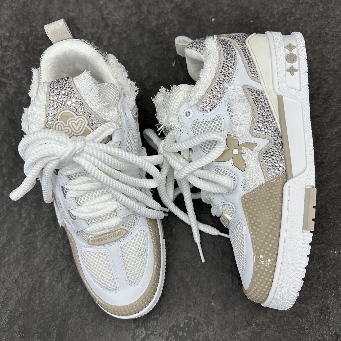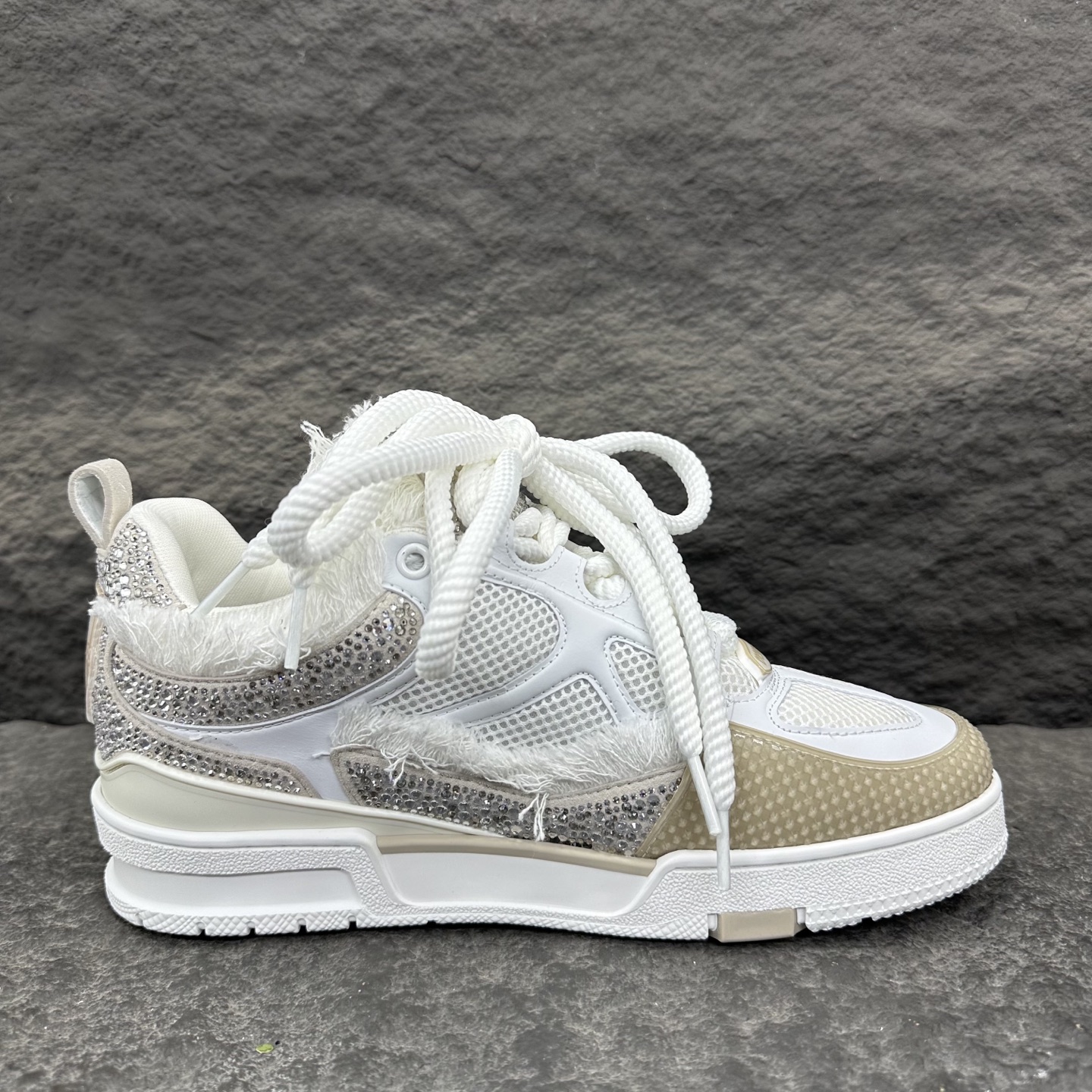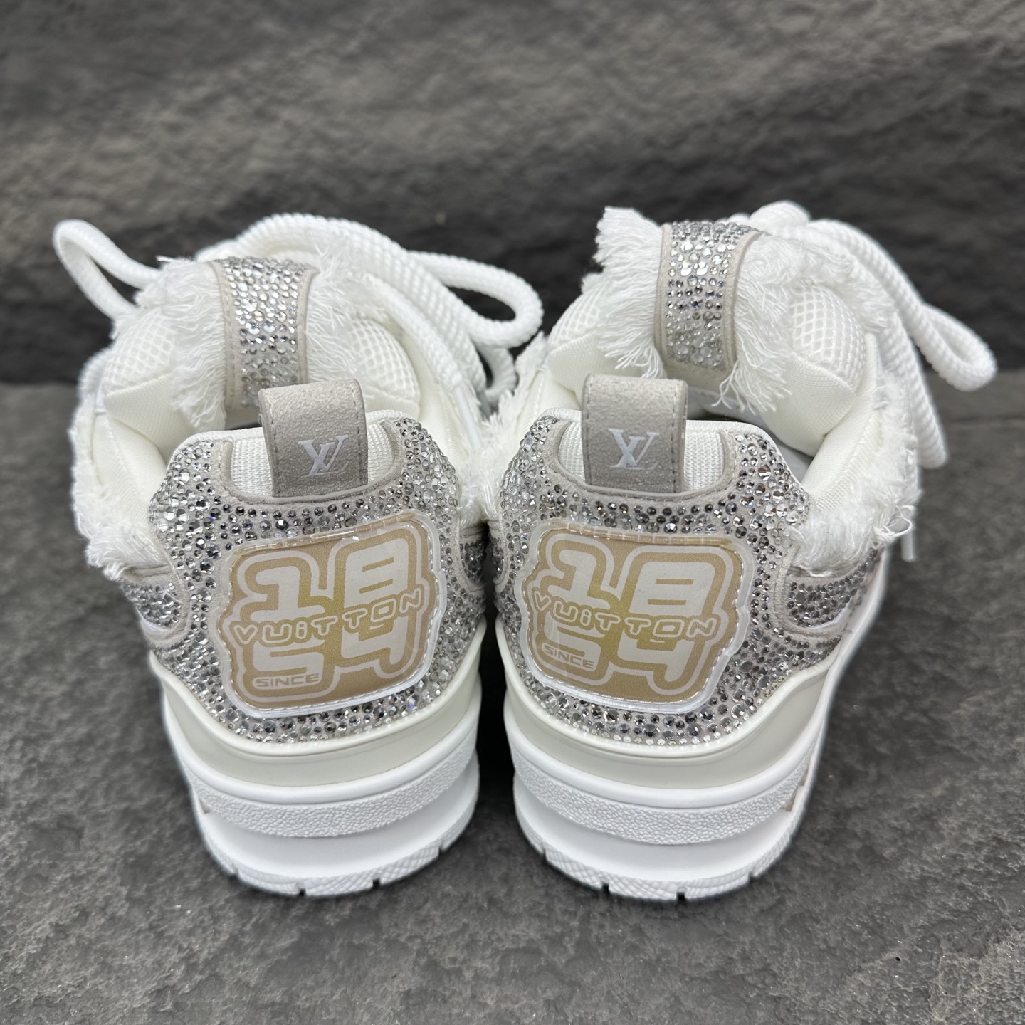 这款鞋子是AAAAA 1:1 质量 (非常棒). 使用了和原版一模一样的材料. 商标部分也保持了和路易威登/Louis Vuitton一样. 图片拍摄是实物鞋子拍摄, 您所收到的实物保证和我们图片一模一样.