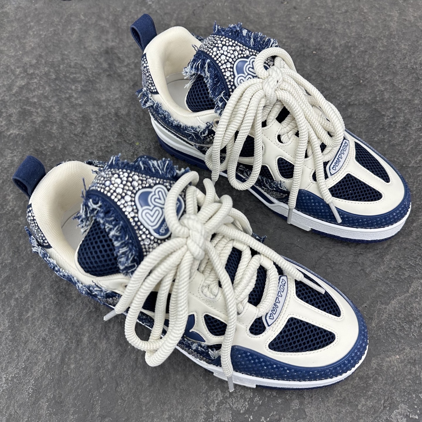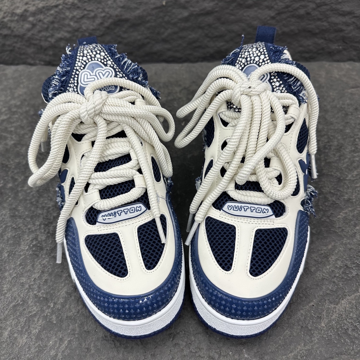 这款鞋子是AAAAA 1:1 质量 (非常棒). 使用了和原版一模一样的材料. 商标部分也保持了和路易威登/Louis Vuitton一样. 图片拍摄是实物鞋子拍摄, 您所收到的实物保证和我们图片一模一样.
