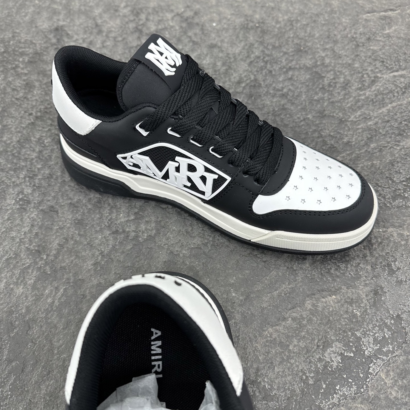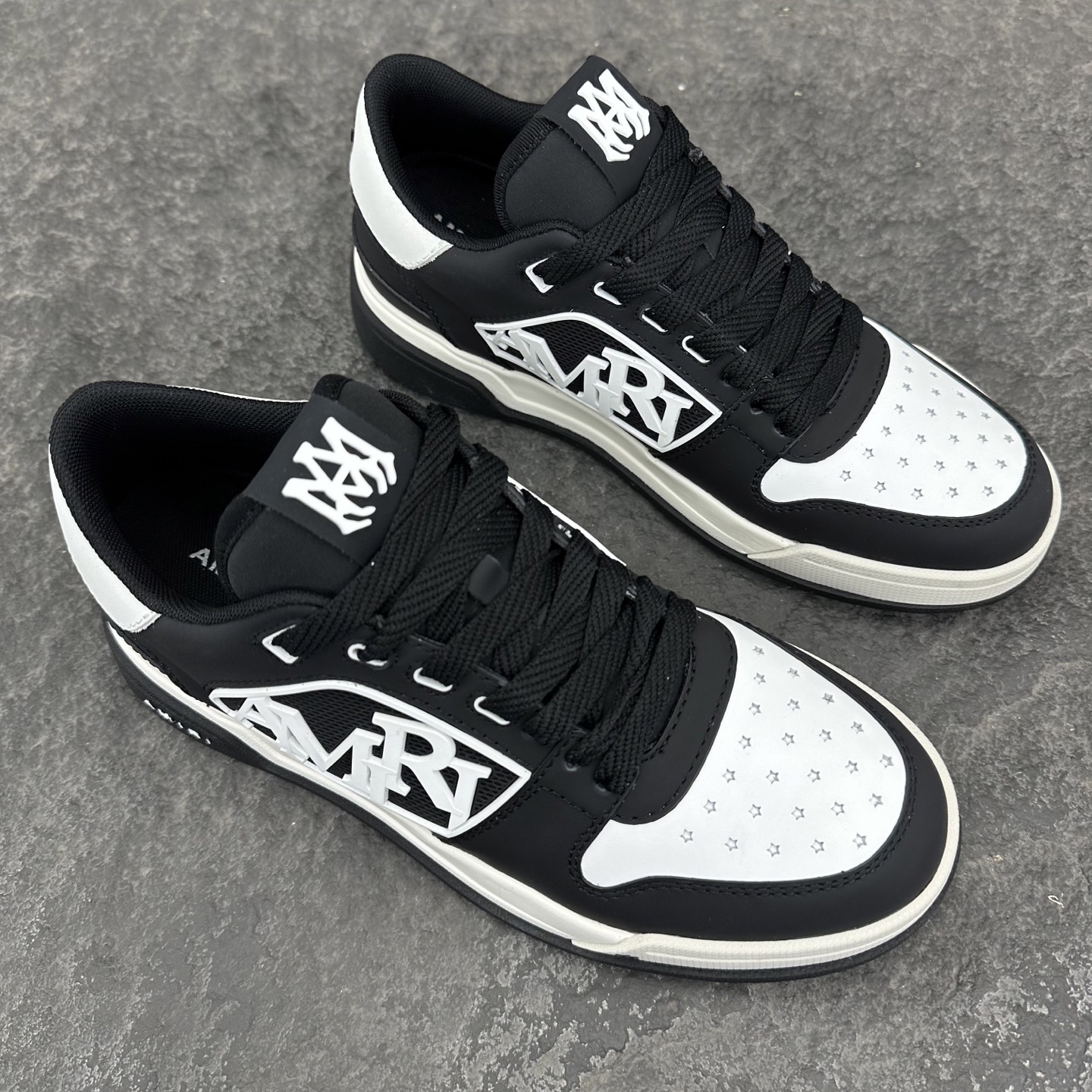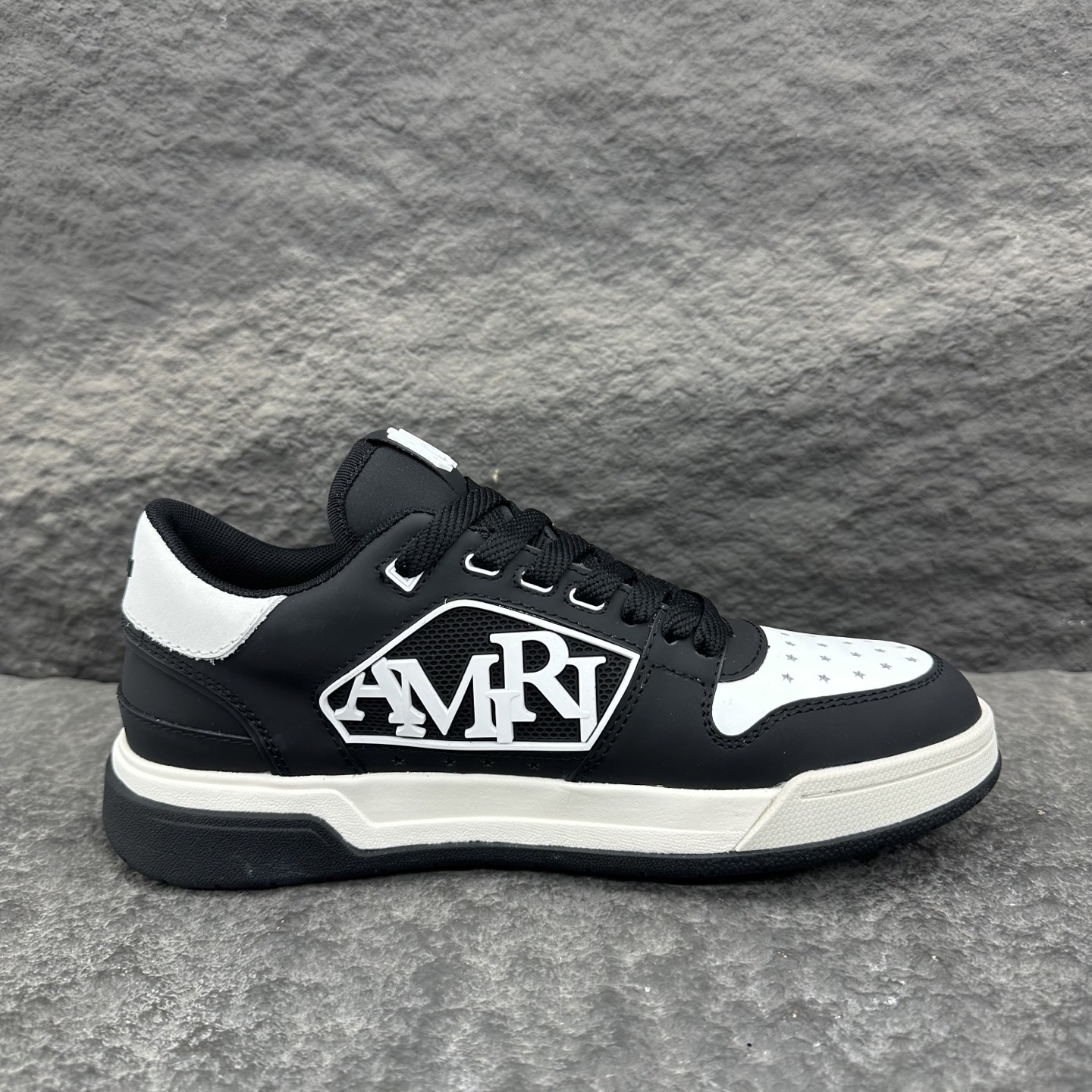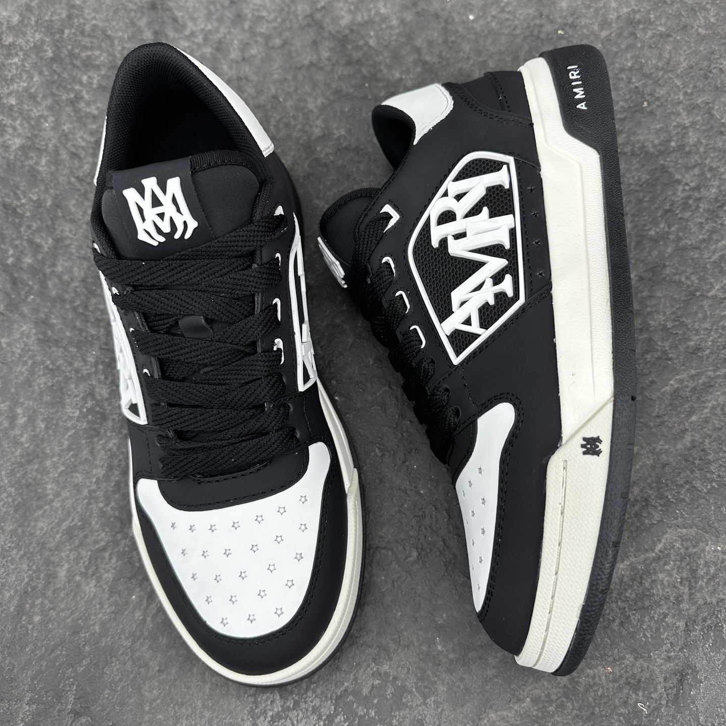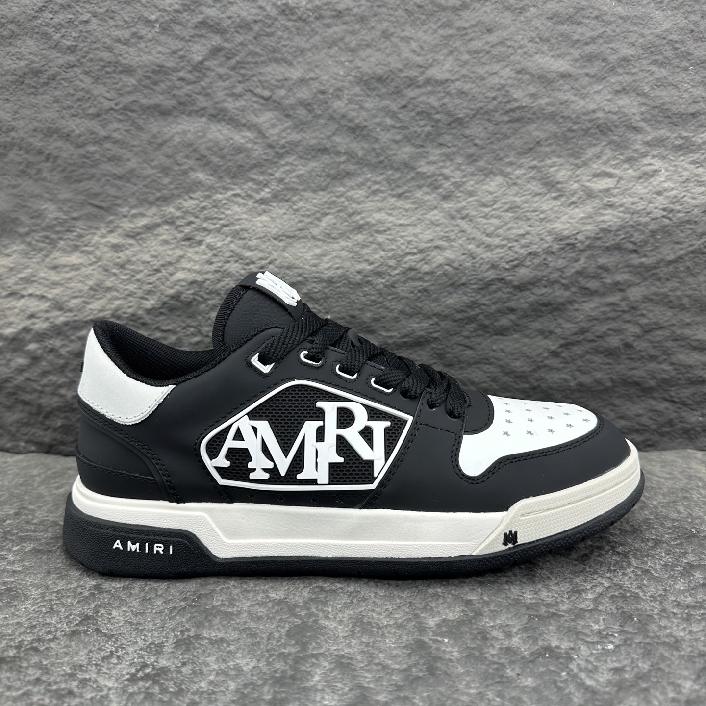这款鞋子是AAAAA 1:1 质量 (非常棒). 使用了和原版一模一样的材料. 商标部分也保持了和AMIRI一样. 图片拍摄是实物鞋子拍摄, 您所收到的实物保证和我们图片一模一样.