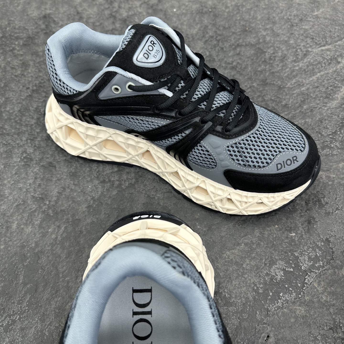 这款鞋子是AAAAA 1:1 质量 (非常棒). 使用了和原版一模一样的材料. 商标部分也保持了和迪奥/Dior一样. 图片拍摄是实物鞋子拍摄, 您所收到的实物保证和我们图片一模一样.
