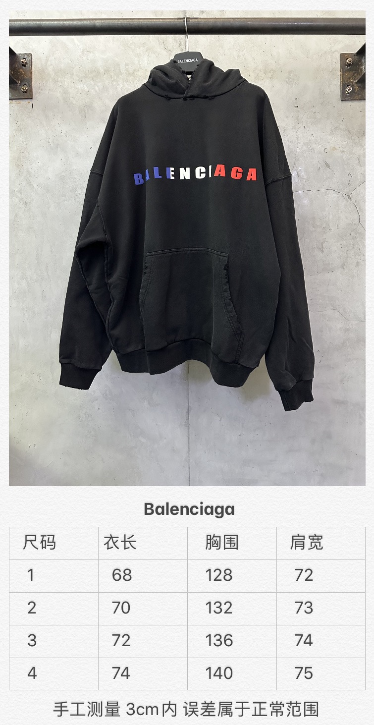 这款衣服是AAAAA 1:1 质量 (非常棒). 使用了和原版一模一样的材料. 商标部分也保持了和巴黎世家/Balenciaga一样. 图片拍摄是实物衣服拍摄, 您所收到的实物保证和我们图片一模一样.