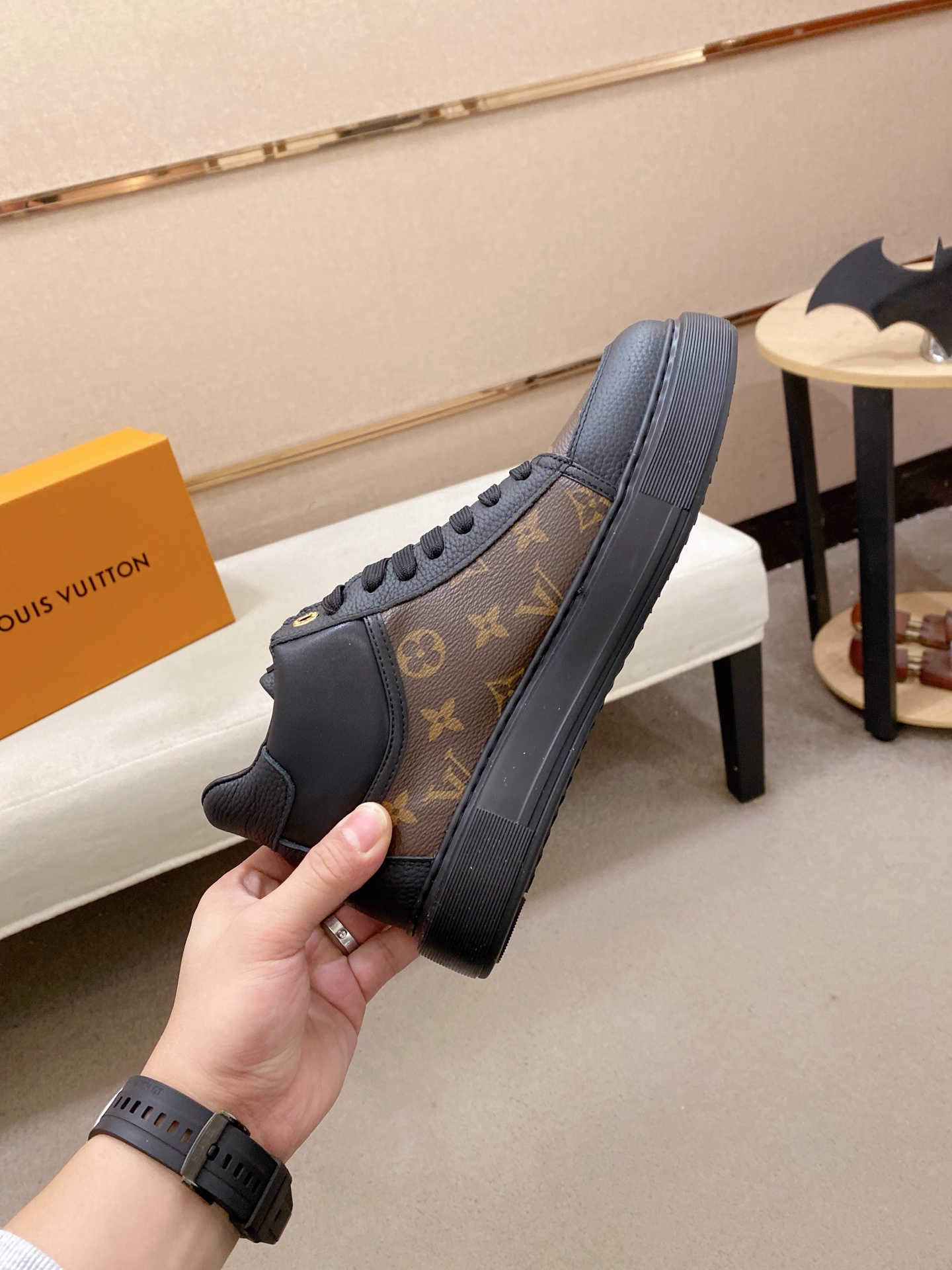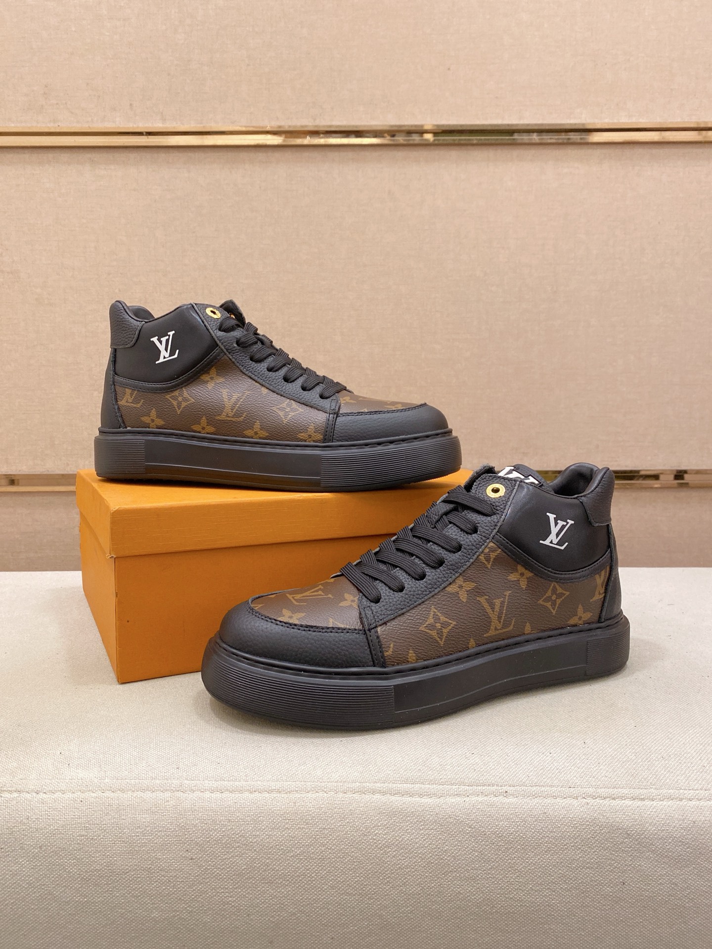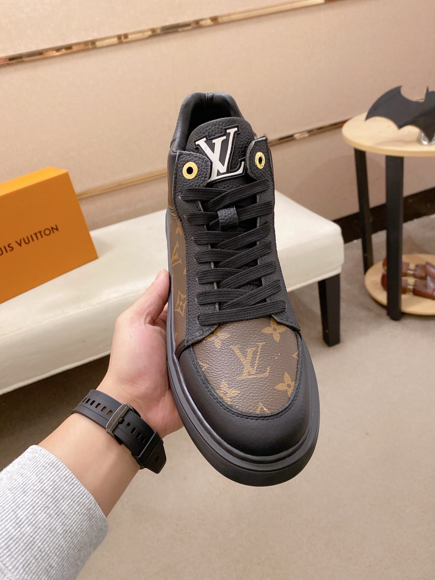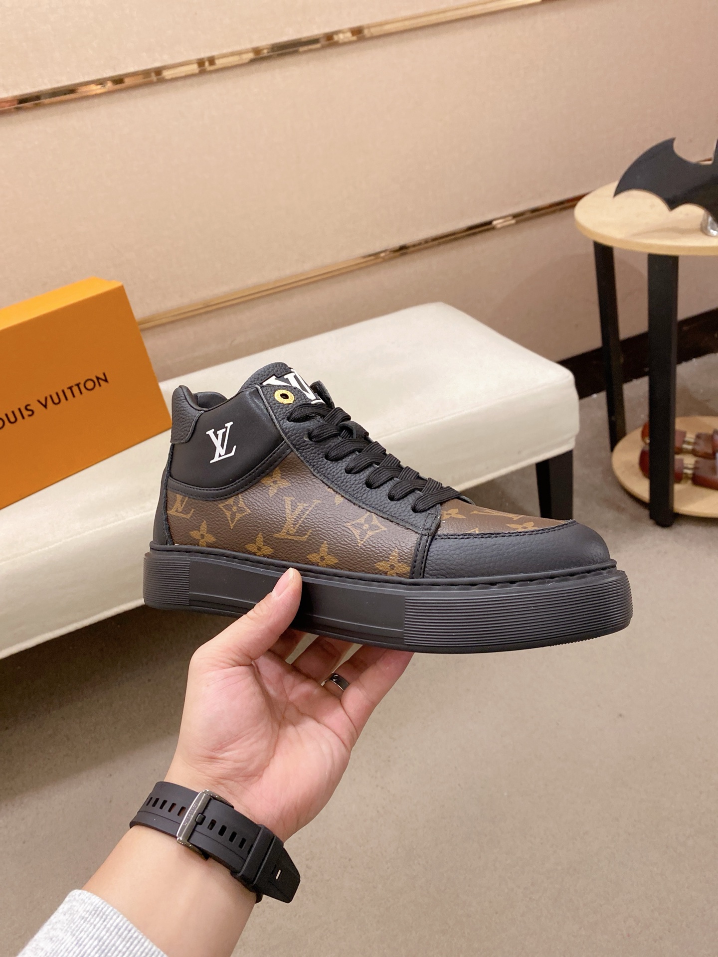 这款鞋子是AAAAA 1:1 质量 (非常棒). 使用了和原版一模一样的材料. 商标部分也保持了和路易威登/Louis Vuitton一样. 图片拍摄是实物鞋子拍摄, 您所收到的实物保证和我们图片一模一样.
