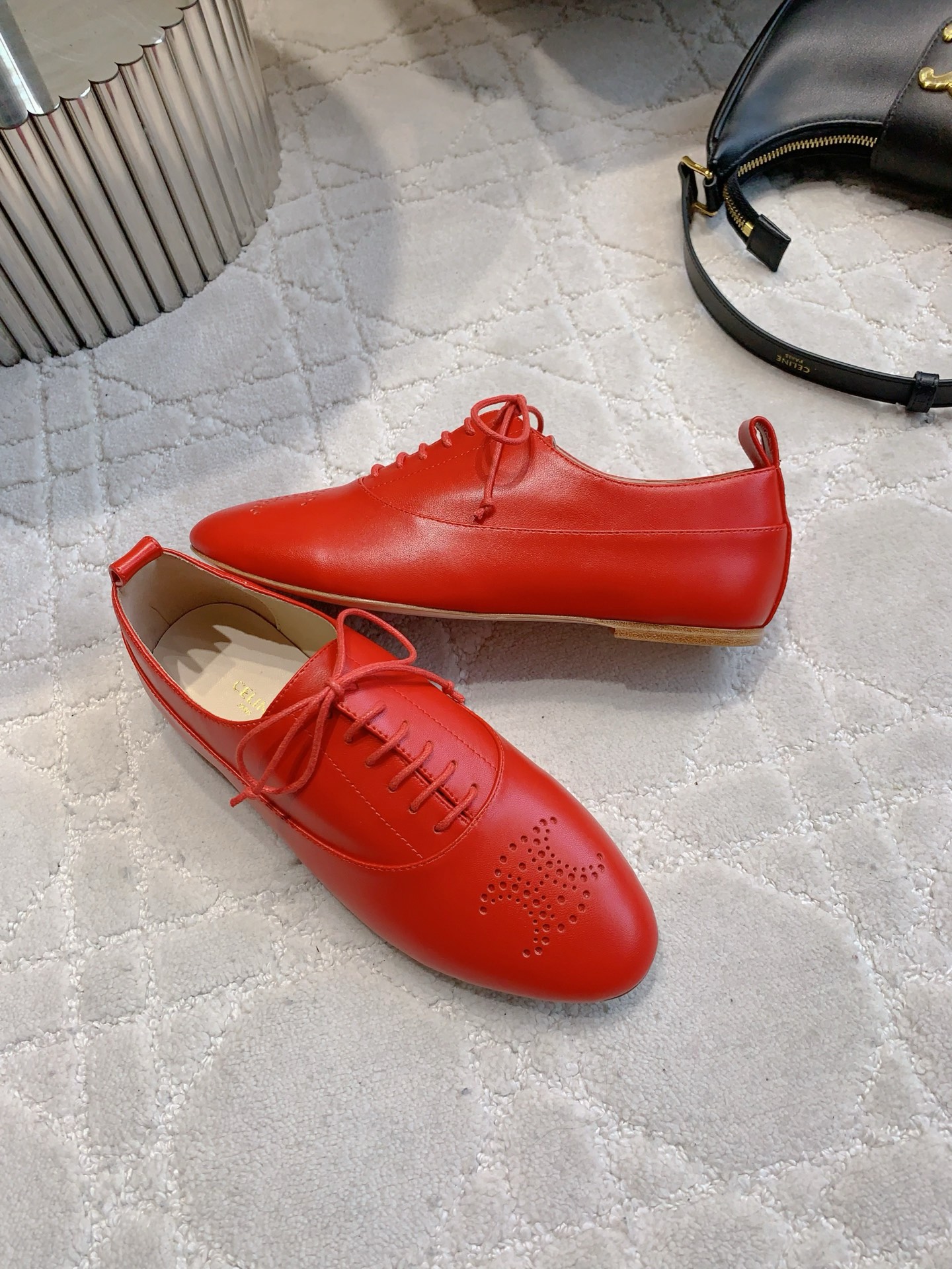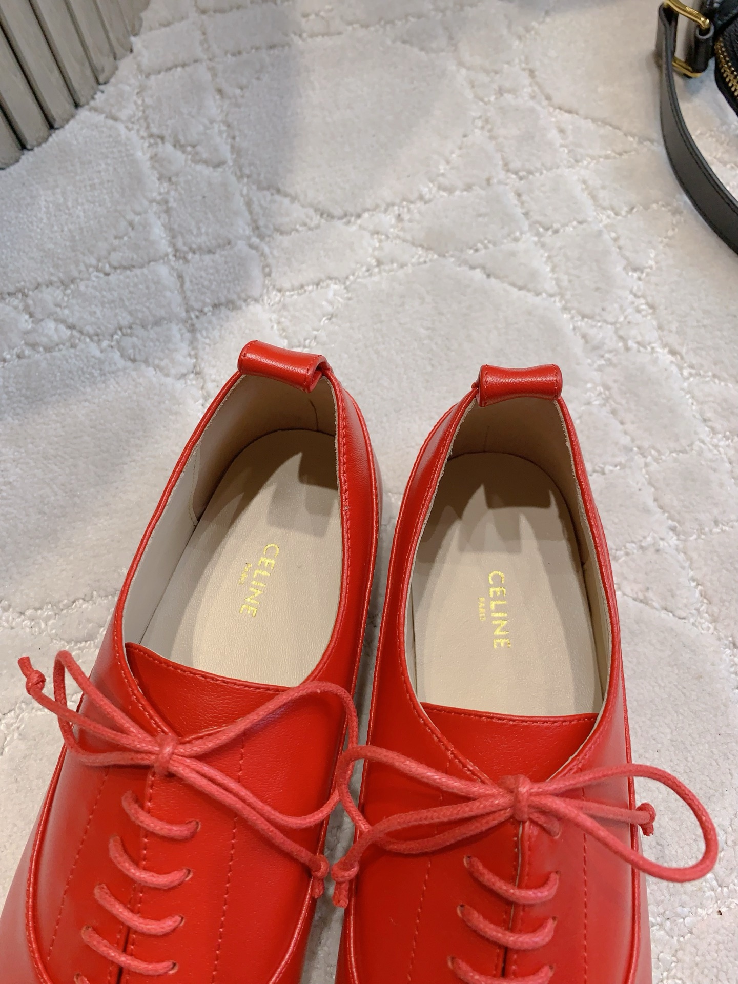这款鞋子是AAAAA 1:1 质量 (非常棒). 使用了和原版一模一样的材料. 商标部分也保持了和思琳/Celine一样. 图片拍摄是实物鞋子拍摄, 您所收到的实物保证和我们图片一模一样.