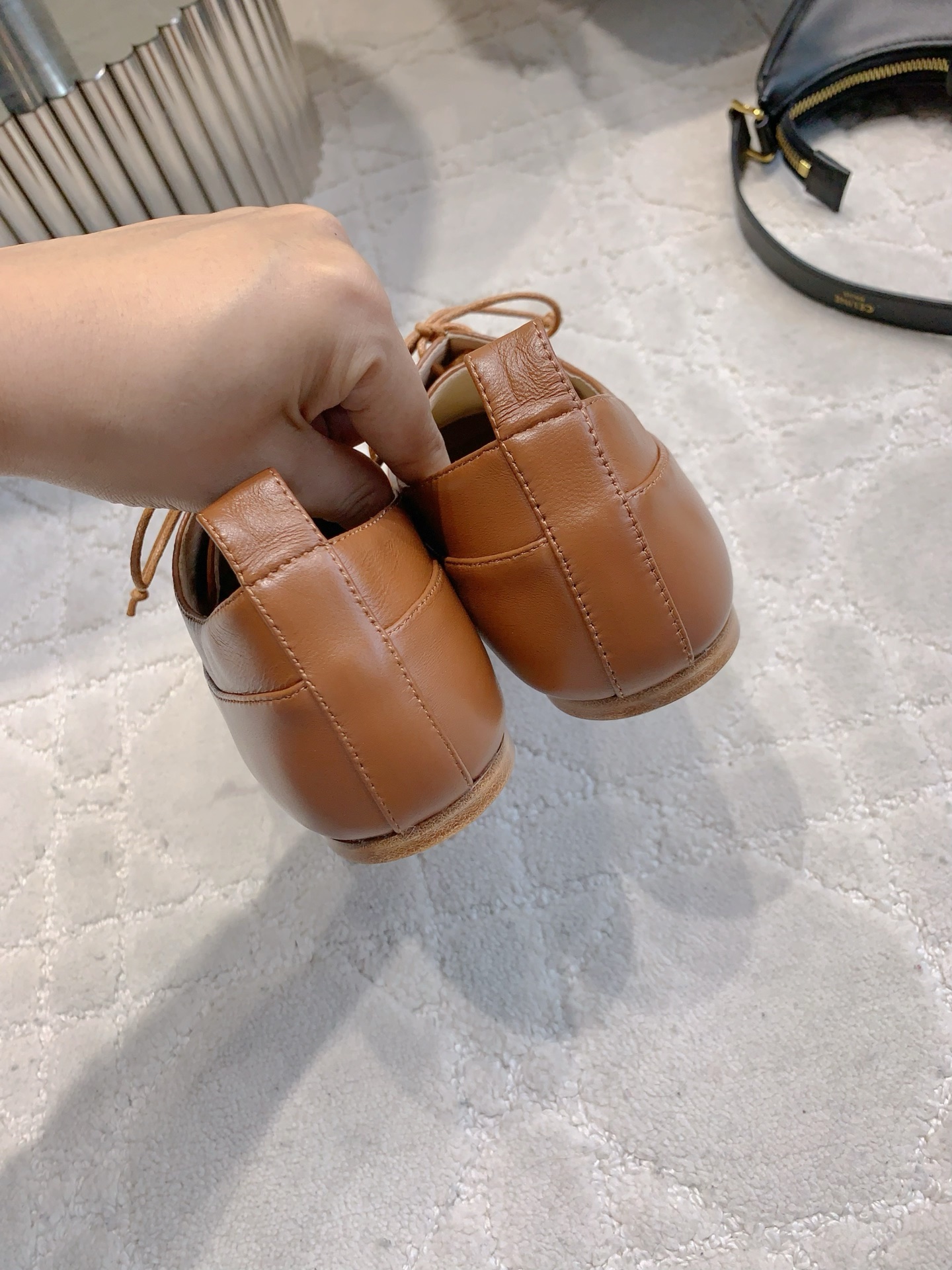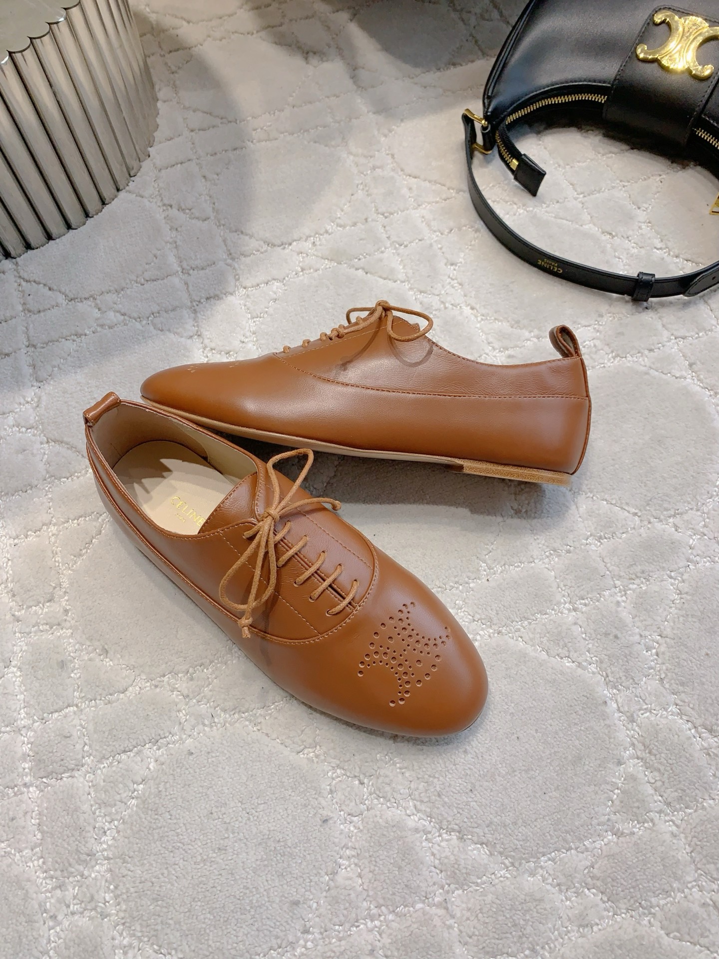这款鞋子是AAAAA 1:1 质量 (非常棒). 使用了和原版一模一样的材料. 商标部分也保持了和思琳/Celine一样. 图片拍摄是实物鞋子拍摄, 您所收到的实物保证和我们图片一模一样.