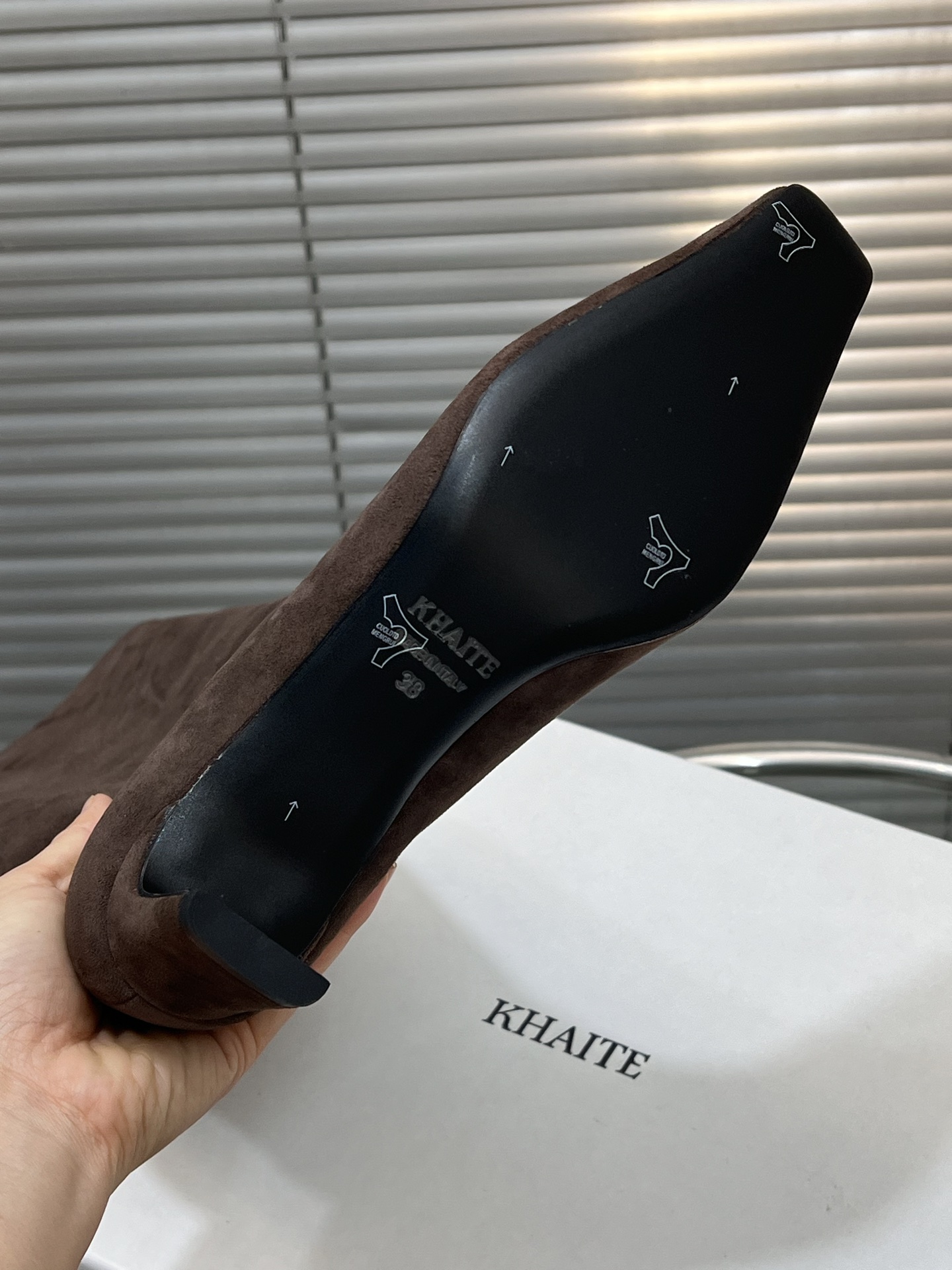这款鞋子是AAAAA 1:1 质量 (非常棒). 使用了和原版一模一样的材料. 商标部分也保持了和Khaite一样. 图片拍摄是实物鞋子拍摄, 您所收到的实物保证和我们图片一模一样.