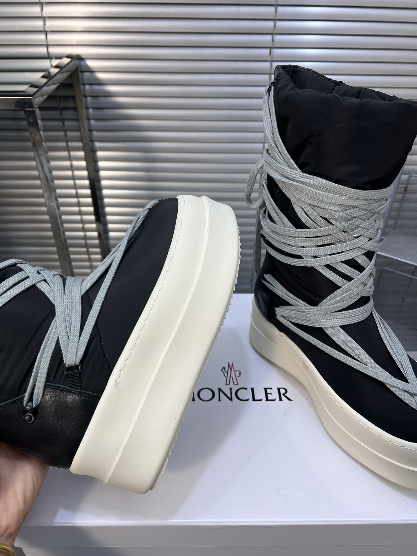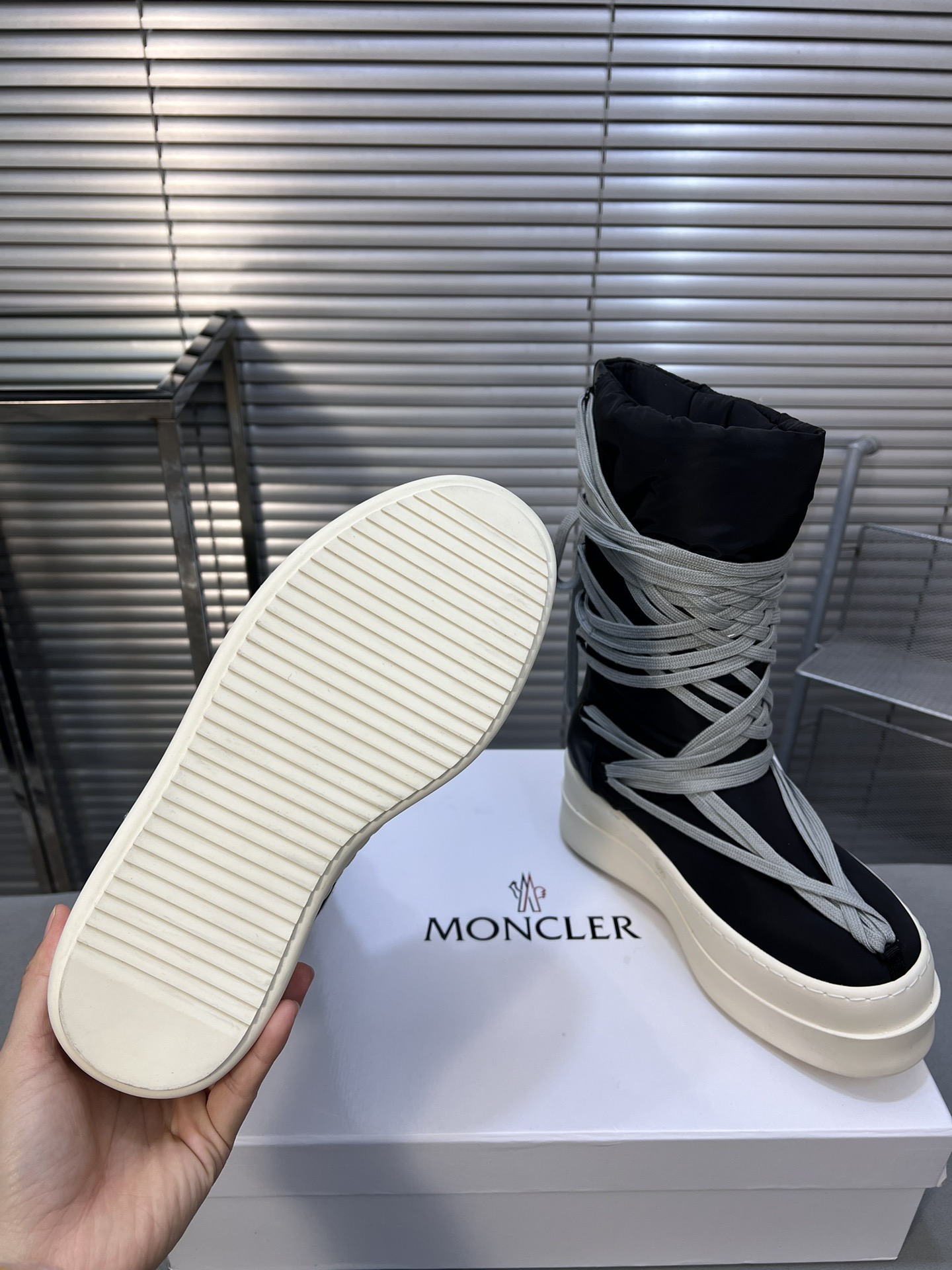 这款鞋子是AAAAA 1:1 质量 (非常棒). 使用了和原版一模一样的材料. 商标部分也保持了和盟可睐/moncler一样. 图片拍摄是实物鞋子拍摄, 您所收到的实物保证和我们图片一模一样.