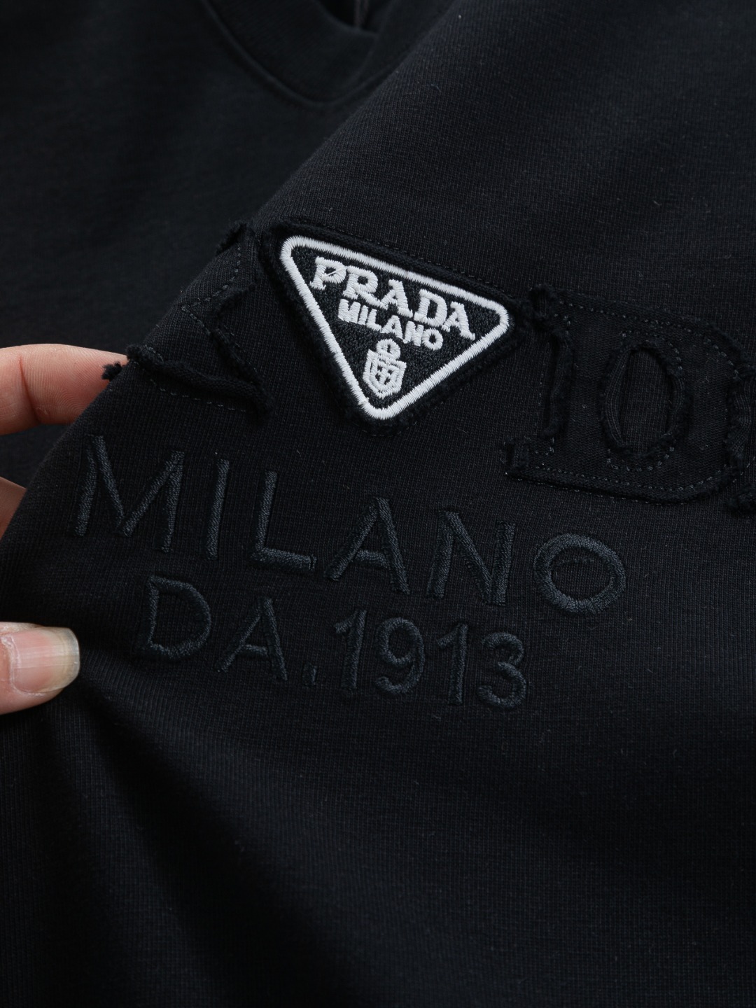这款衣服是AAAAA 1:1 质量 (非常棒). 使用了和原版一模一样的材料. 商标部分也保持了和普拉达/Prada一样. 图片拍摄是实物衣服拍摄, 您所收到的实物保证和我们图片一模一样.