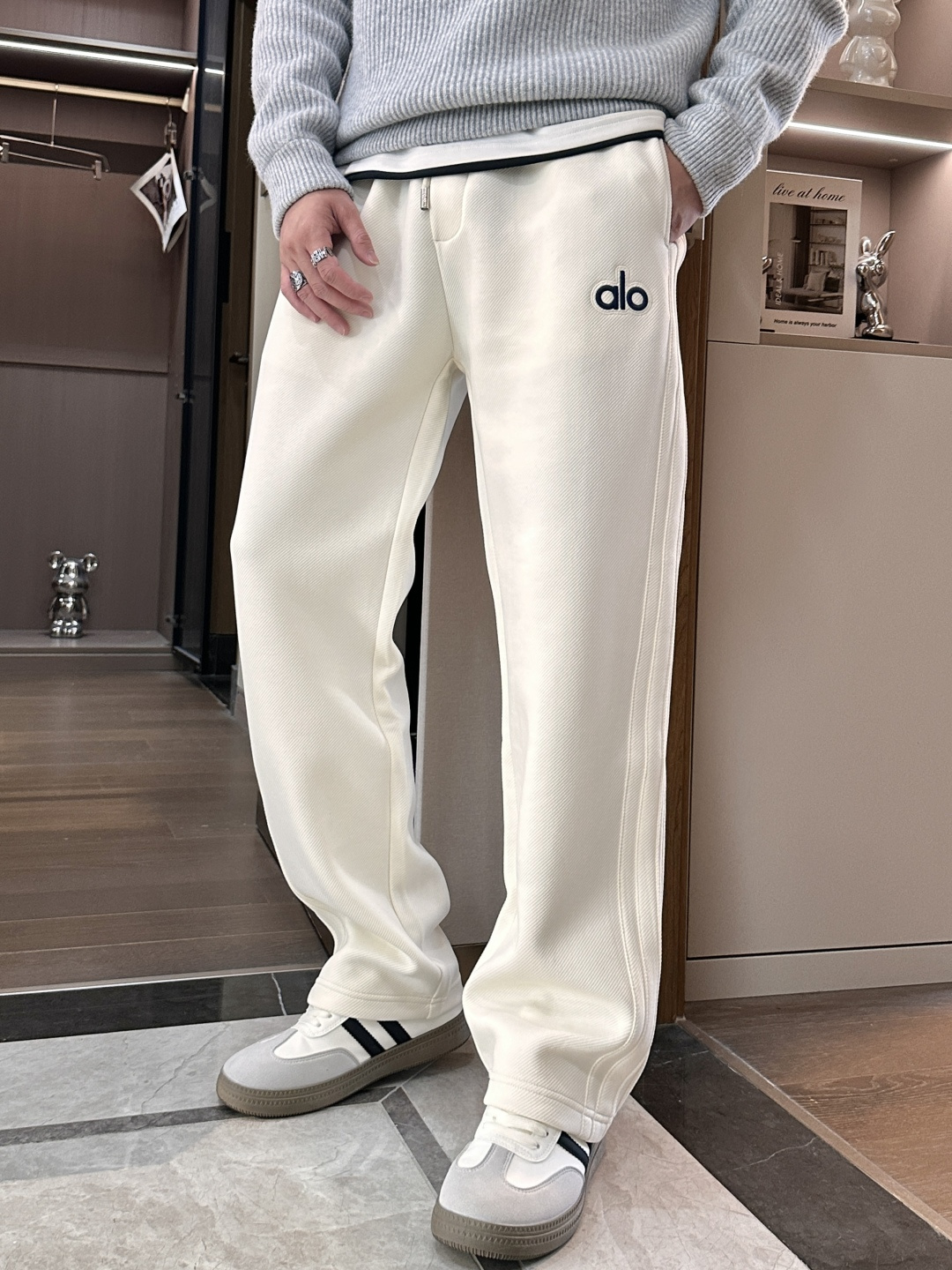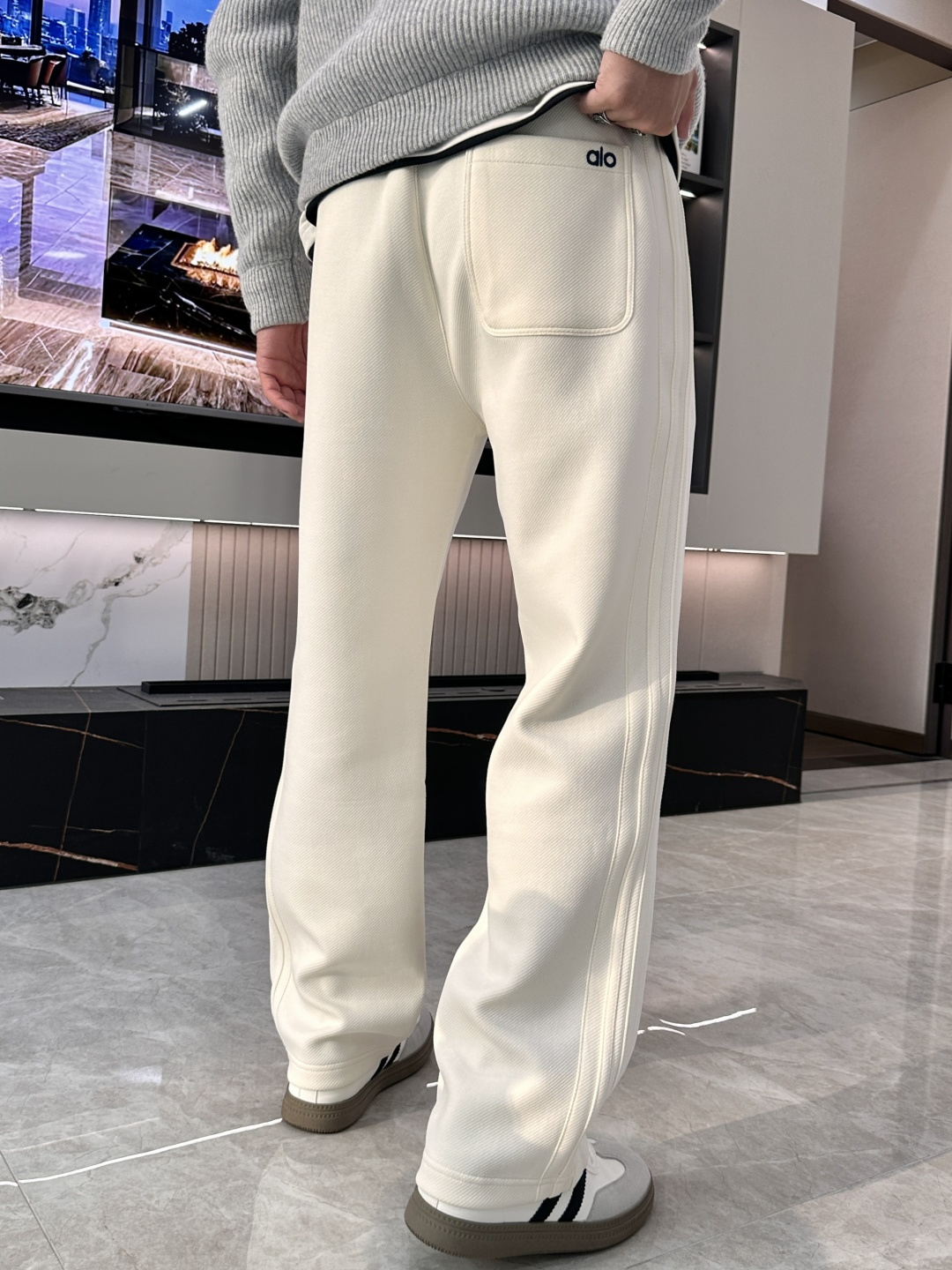 这款衣服是AAAAA 1:1 质量 (非常棒). 使用了和原版一模一样的材料. 商标部分也保持了和Alo Yoga一样. 图片拍摄是实物衣服拍摄, 您所收到的实物保证和我们图片一模一样.