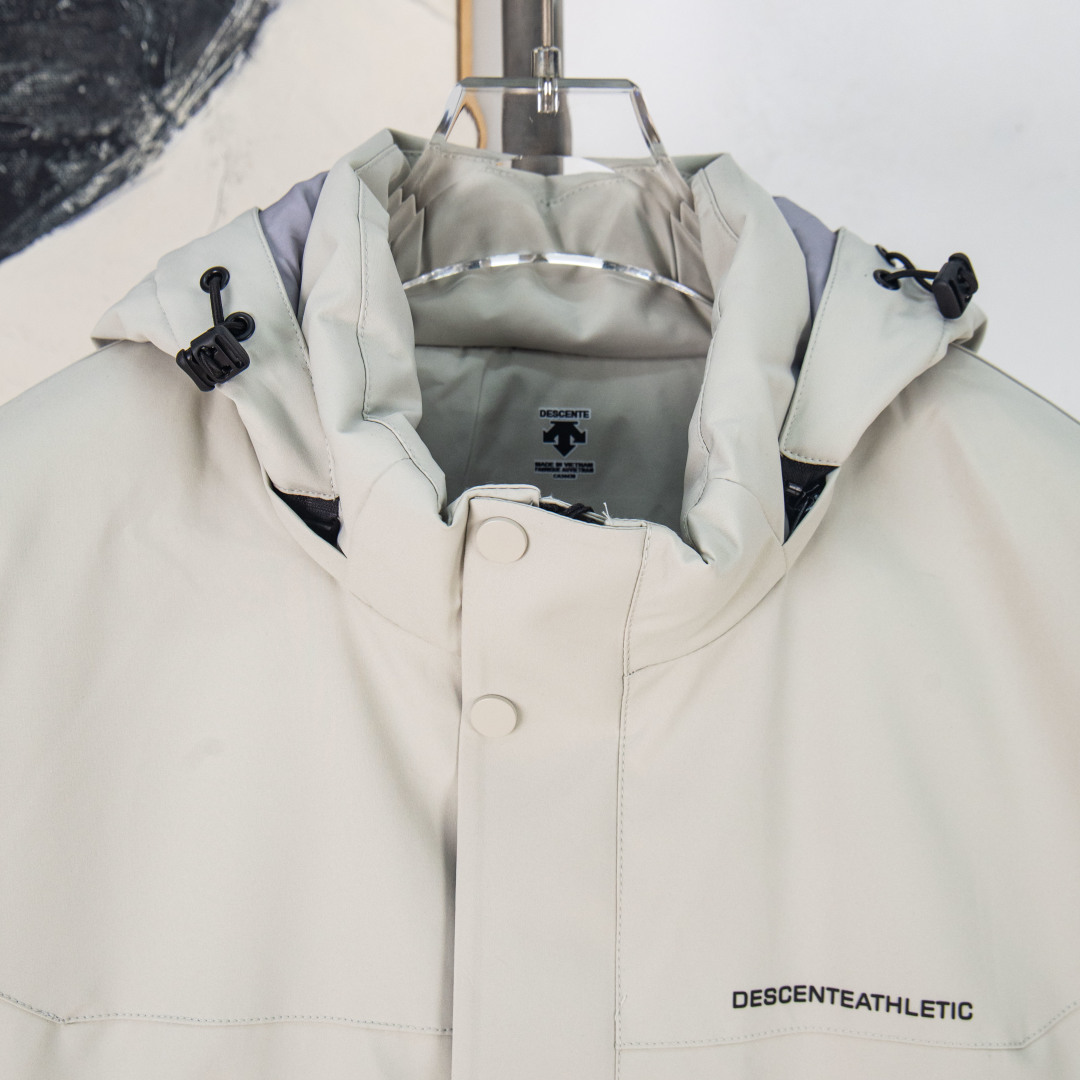 这款衣服是AAAAA 1:1 质量 (非常棒). 使用了和原版一模一样的材料. 商标部分也保持了和Descente一样. 图片拍摄是实物衣服拍摄, 您所收到的实物保证和我们图片一模一样.