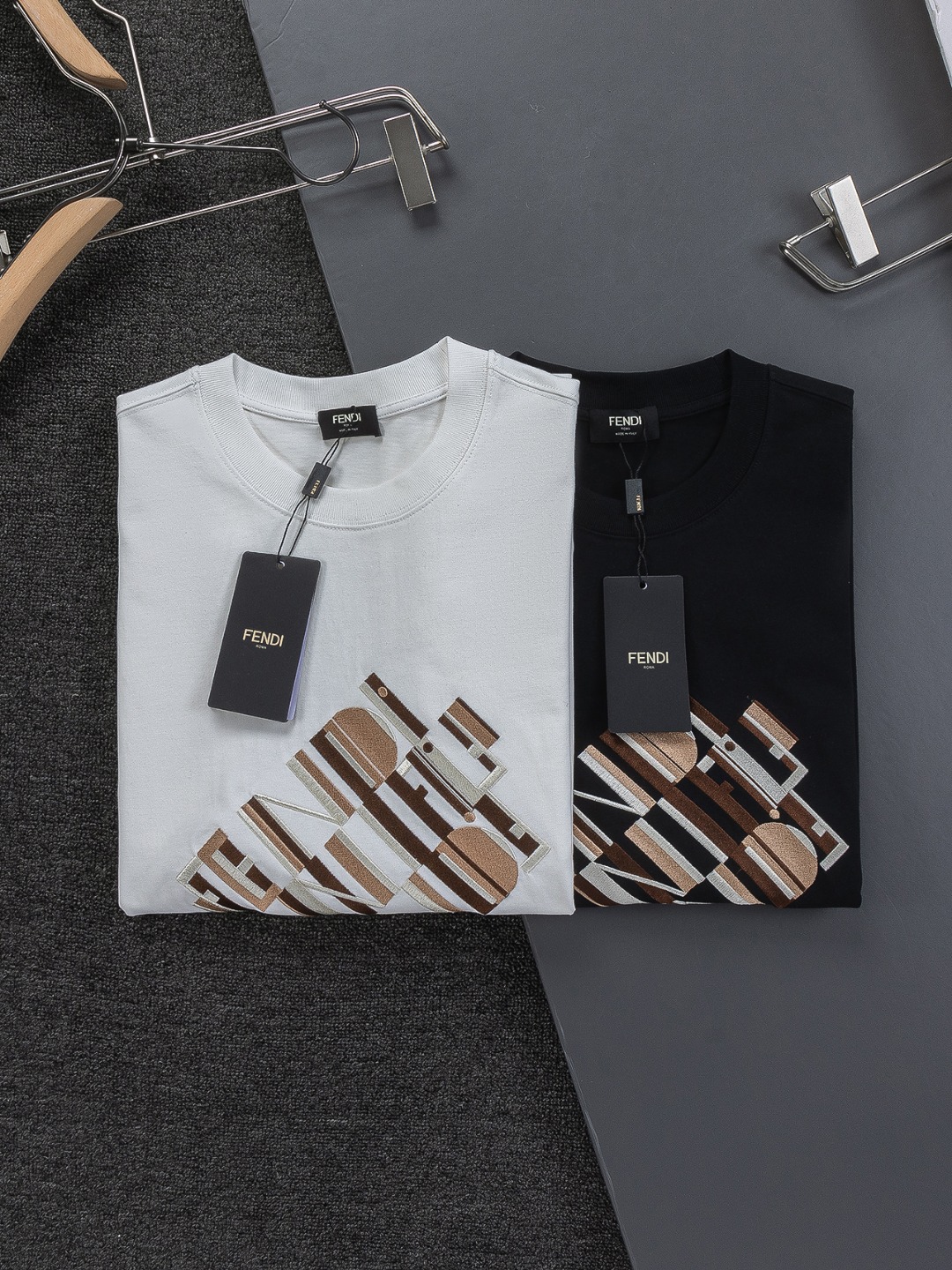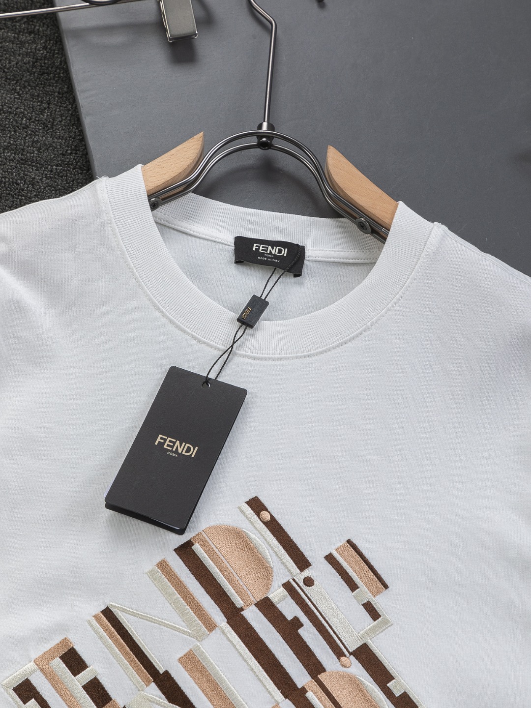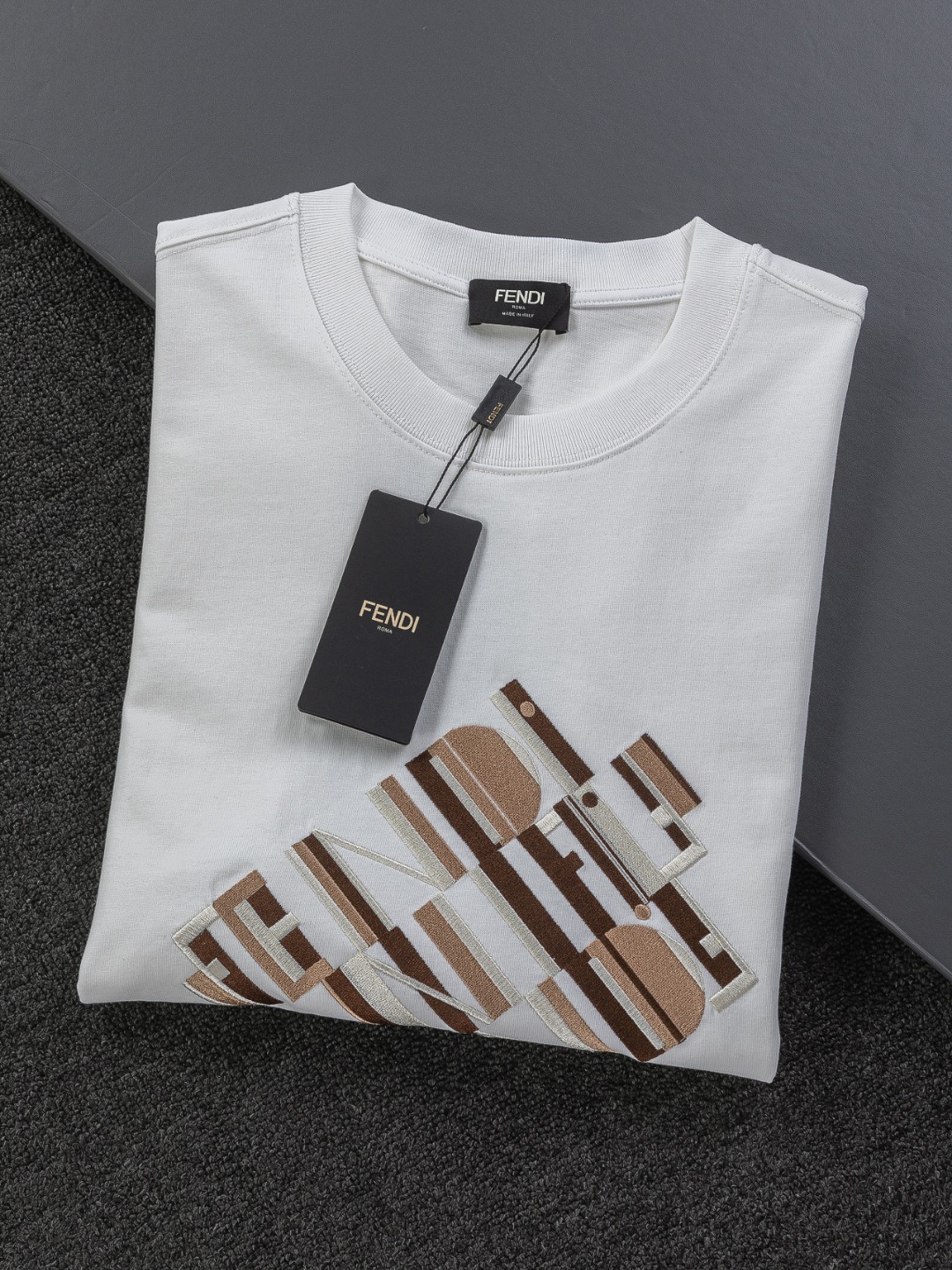 这款衣服是AAAAA 1:1 质量 (非常棒). 使用了和原版一模一样的材料. 商标部分也保持了和芬迪/Fendi一样. 图片拍摄是实物衣服拍摄, 您所收到的实物保证和我们图片一模一样.