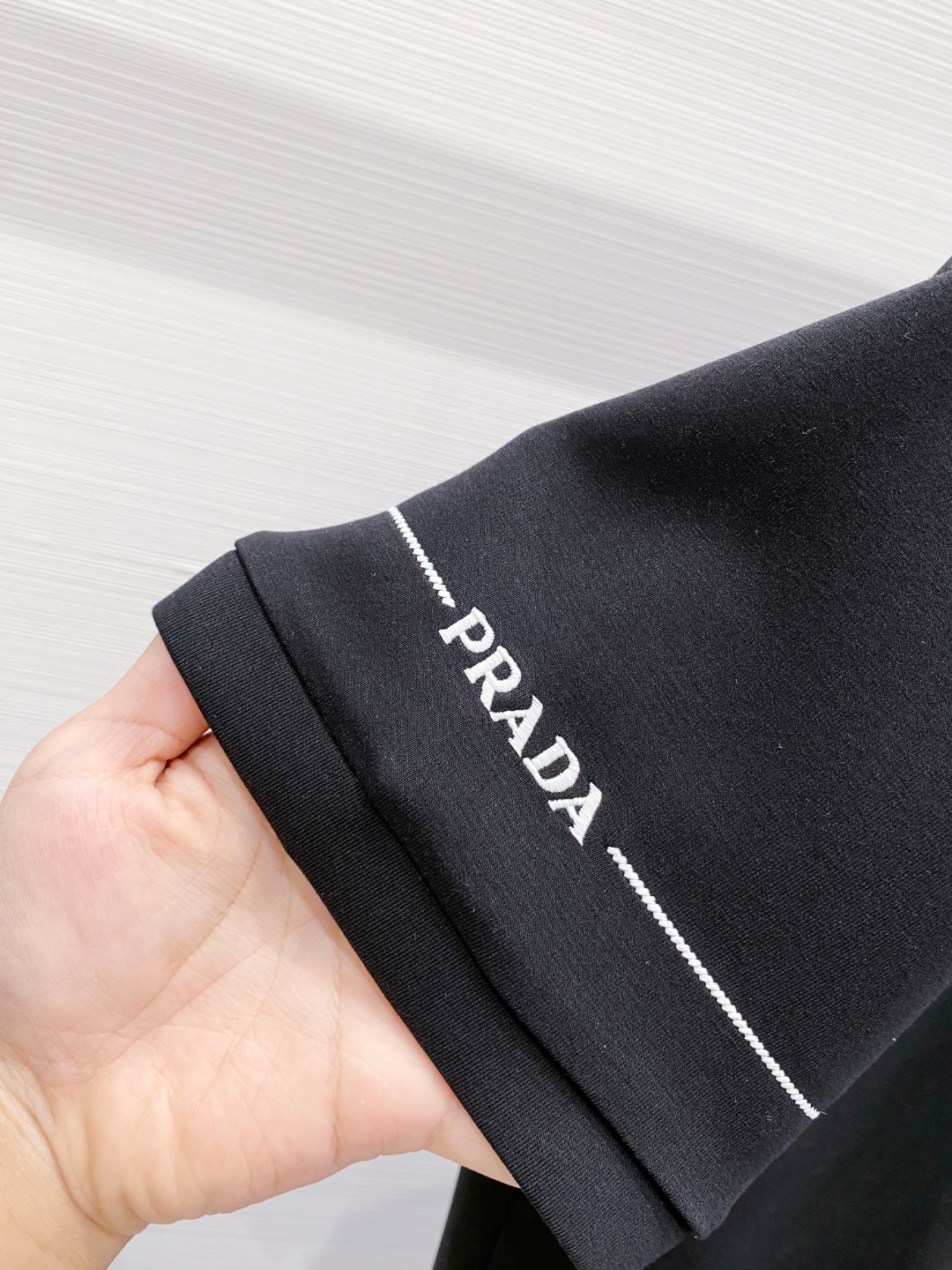 这款衣服是AAAAA 1:1 质量 (非常棒). 使用了和原版一模一样的材料. 商标部分也保持了和普拉达/Prada一样. 图片拍摄是实物衣服拍摄, 您所收到的实物保证和我们图片一模一样.