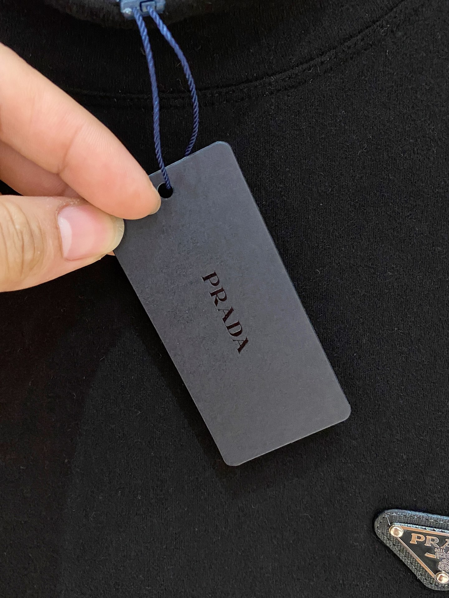 这款衣服是AAAAA 1:1 质量 (非常棒). 使用了和原版一模一样的材料. 商标部分也保持了和普拉达/Prada一样. 图片拍摄是实物衣服拍摄, 您所收到的实物保证和我们图片一模一样.