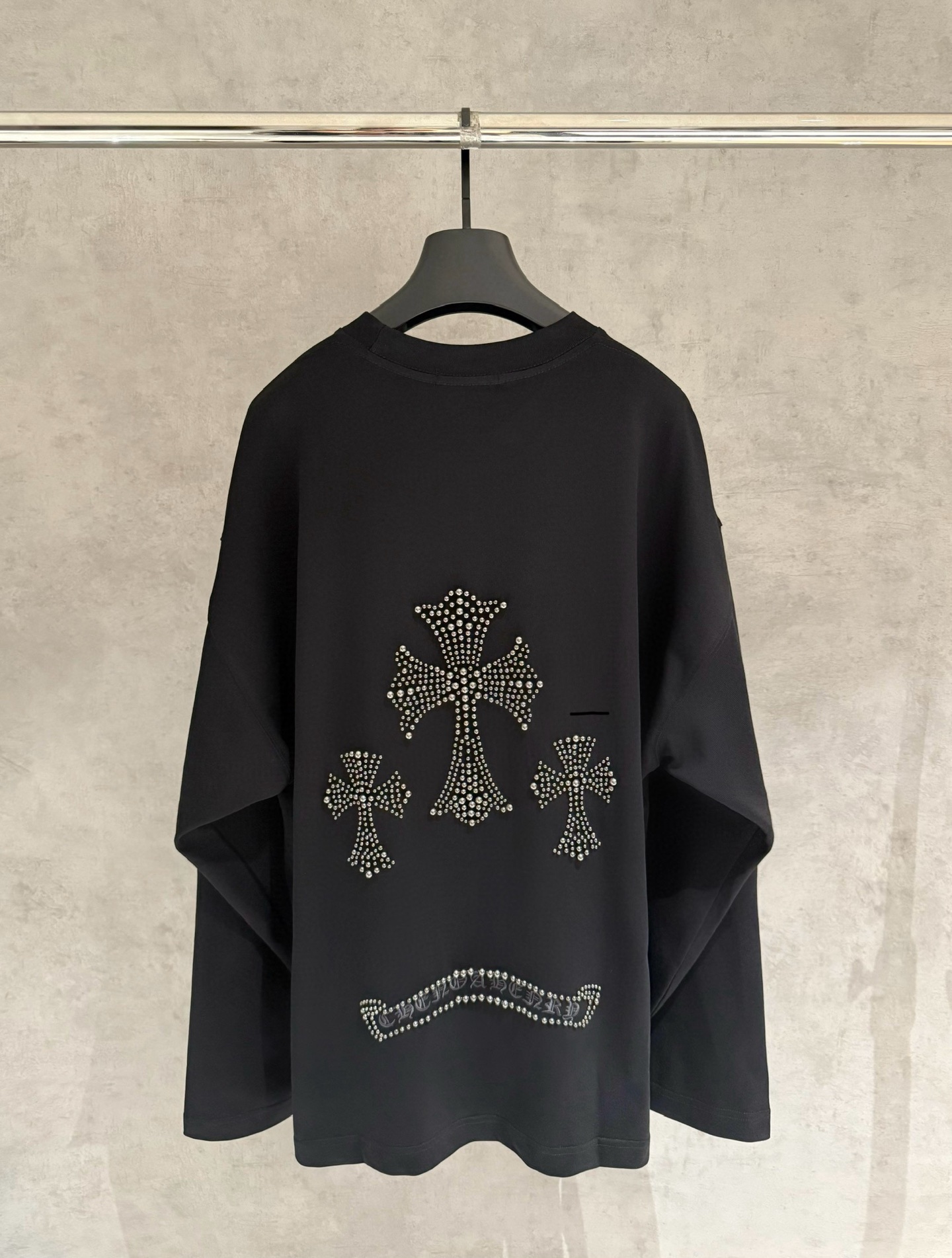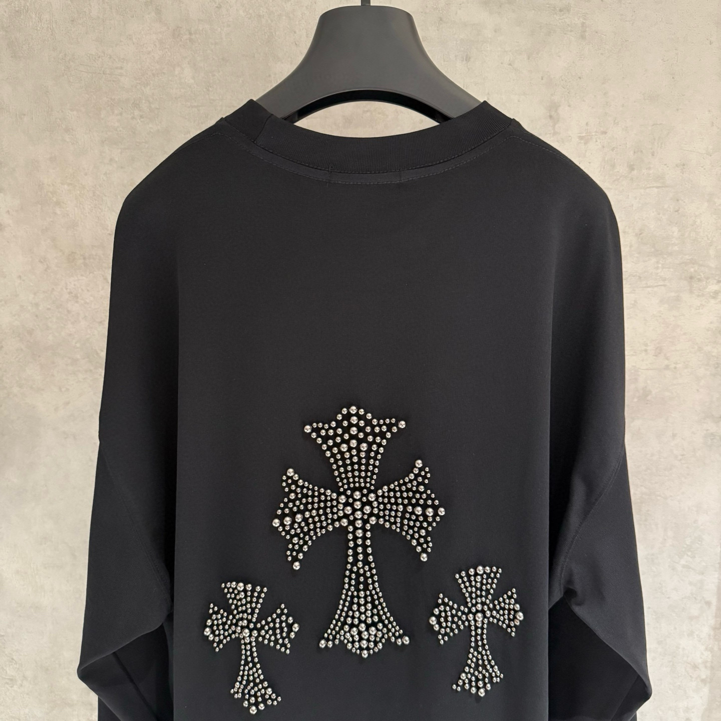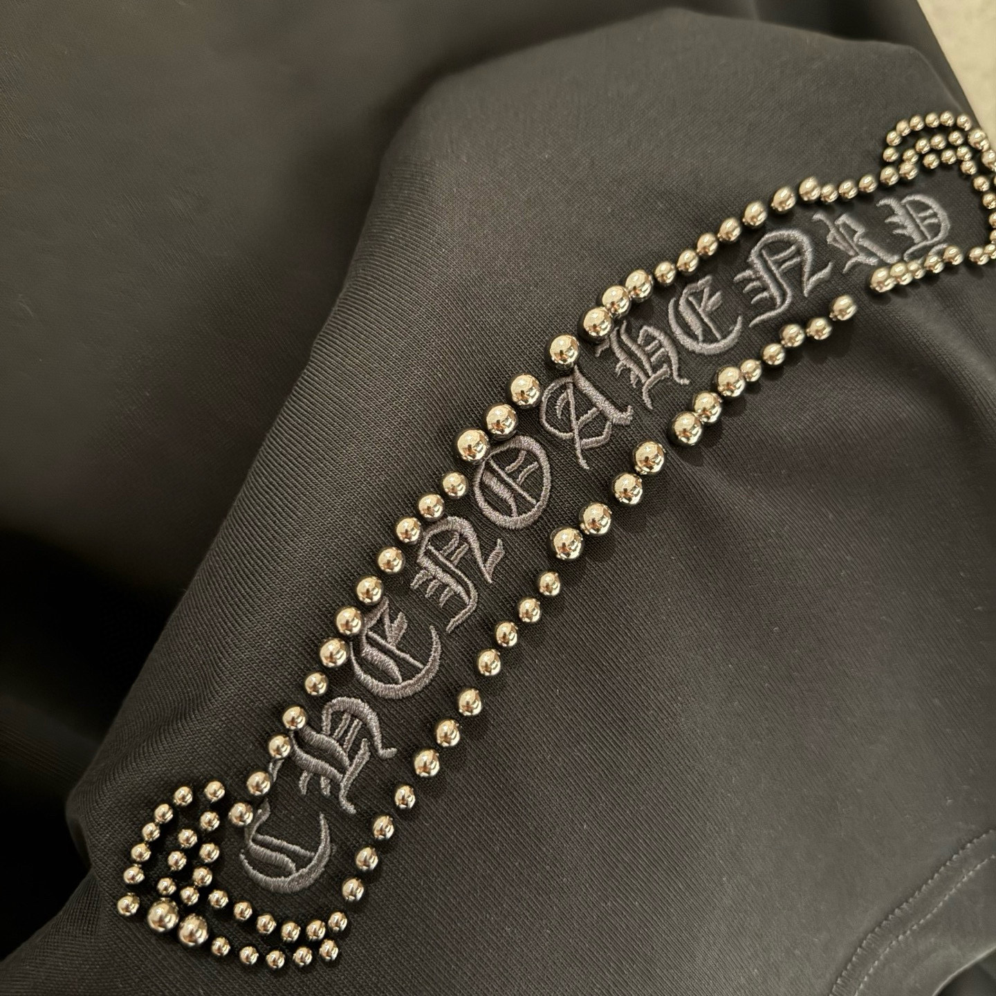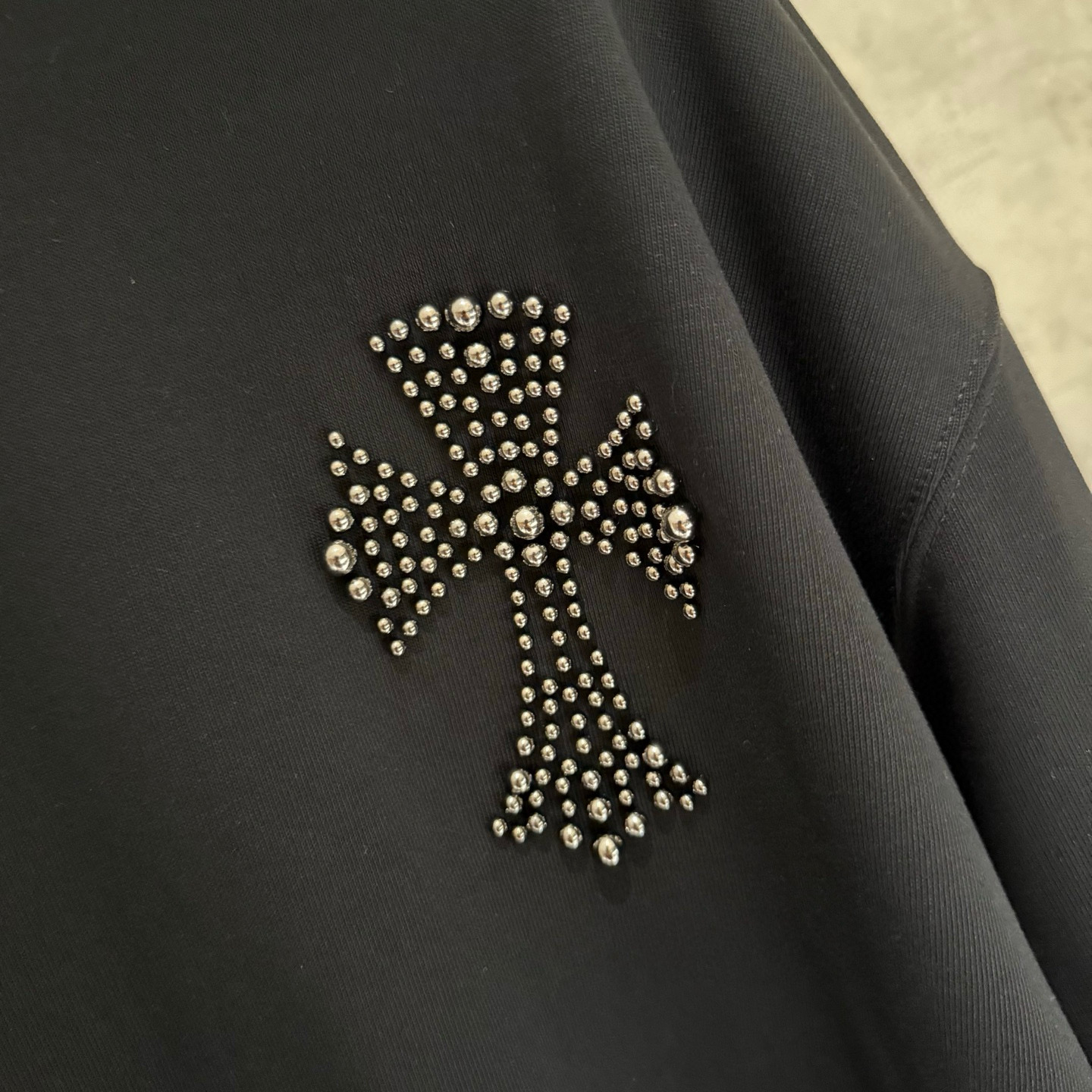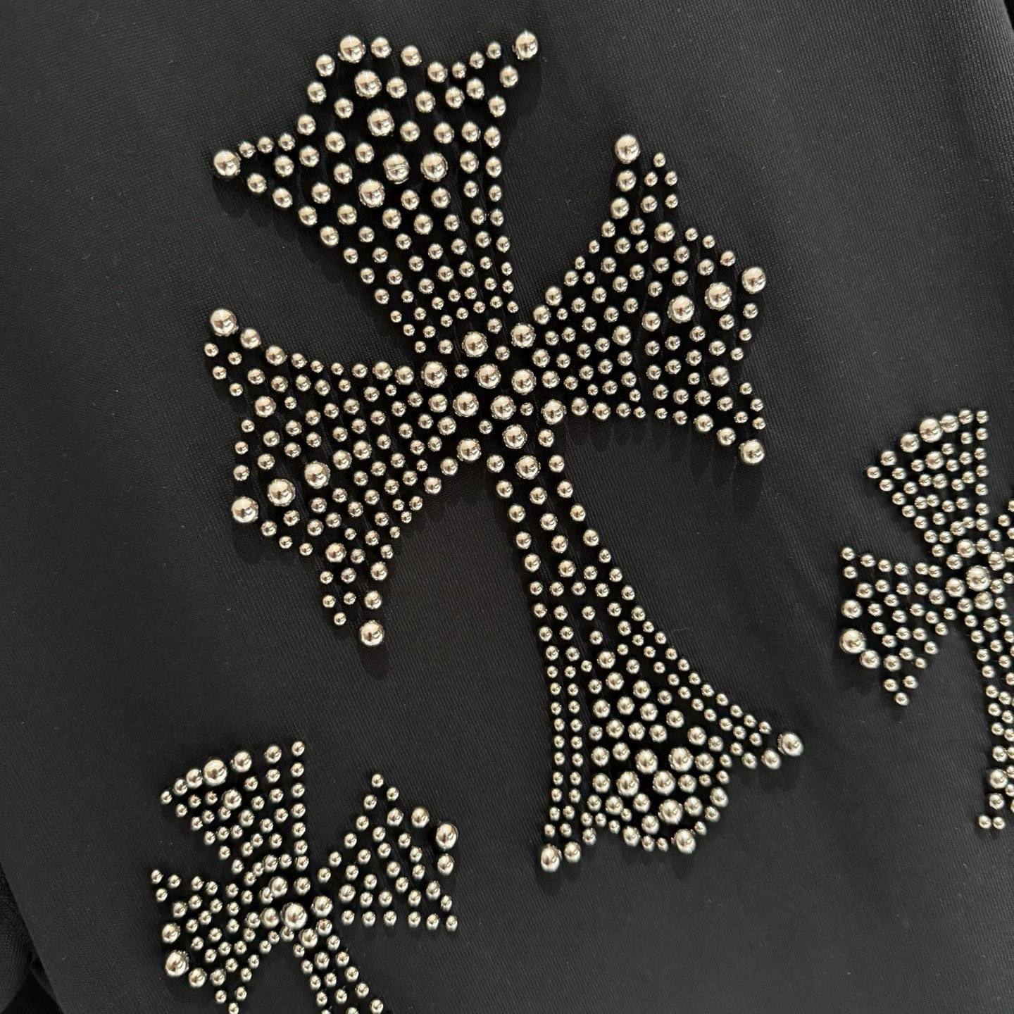 这款衣服是AAAAA 1:1 质量 (非常棒). 使用了和原版一模一样的材料. 商标部分也保持了和克罗心/Chrome Hearts一样. 图片拍摄是实物衣服拍摄, 您所收到的实物保证和我们图片一模一样.
