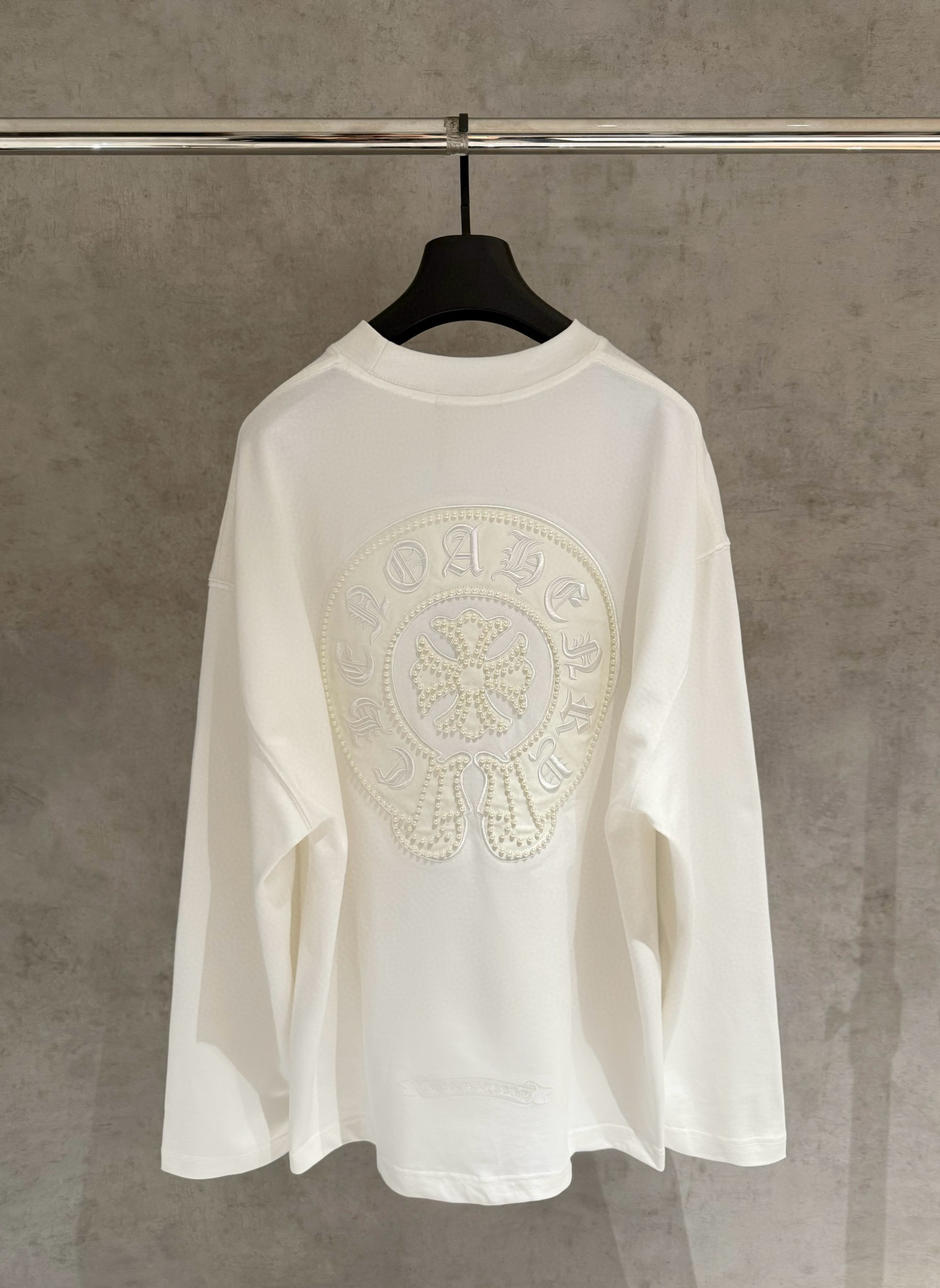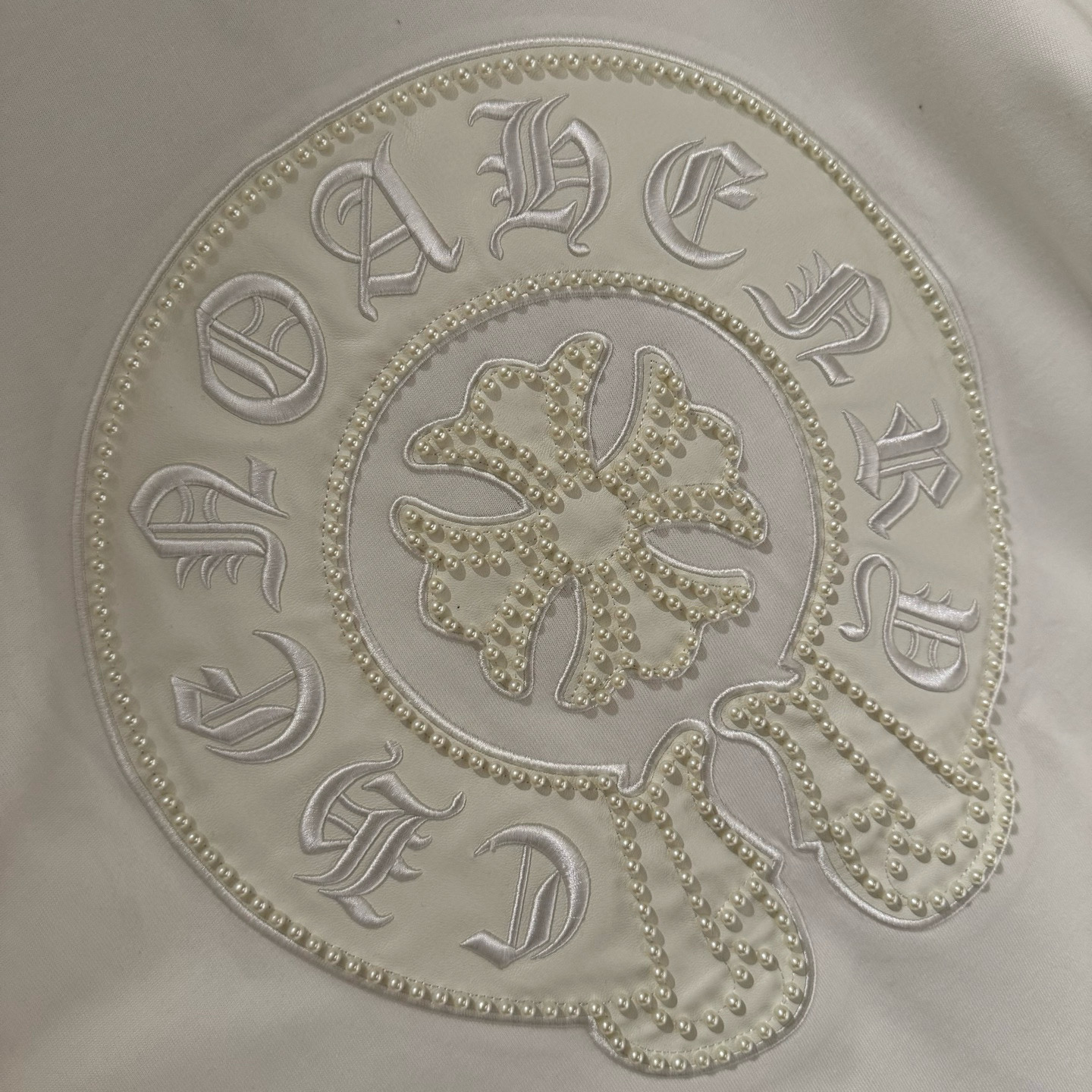 这款衣服是AAAAA 1:1 质量 (非常棒). 使用了和原版一模一样的材料. 商标部分也保持了和克罗心/Chrome Hearts一样. 图片拍摄是实物衣服拍摄, 您所收到的实物保证和我们图片一模一样.