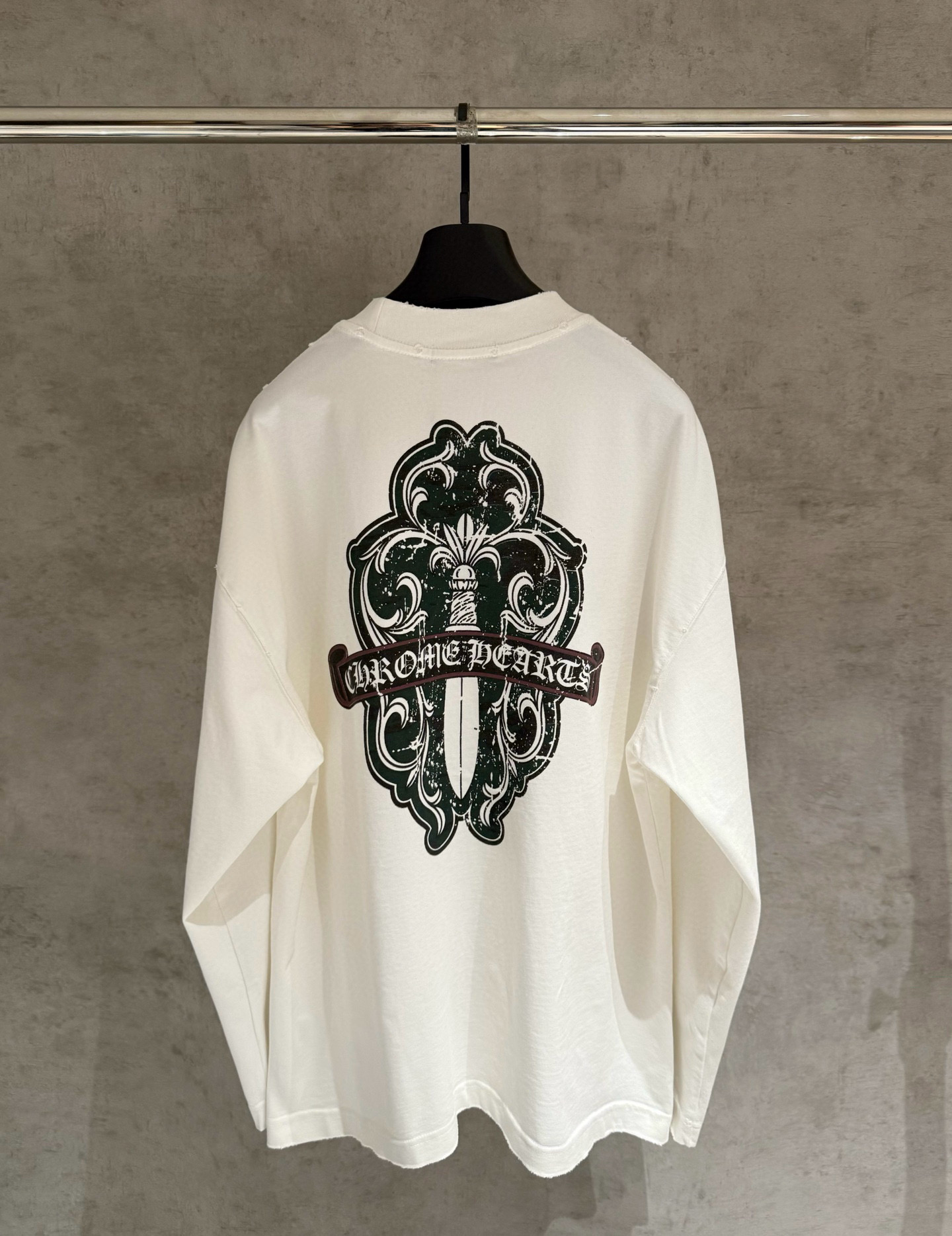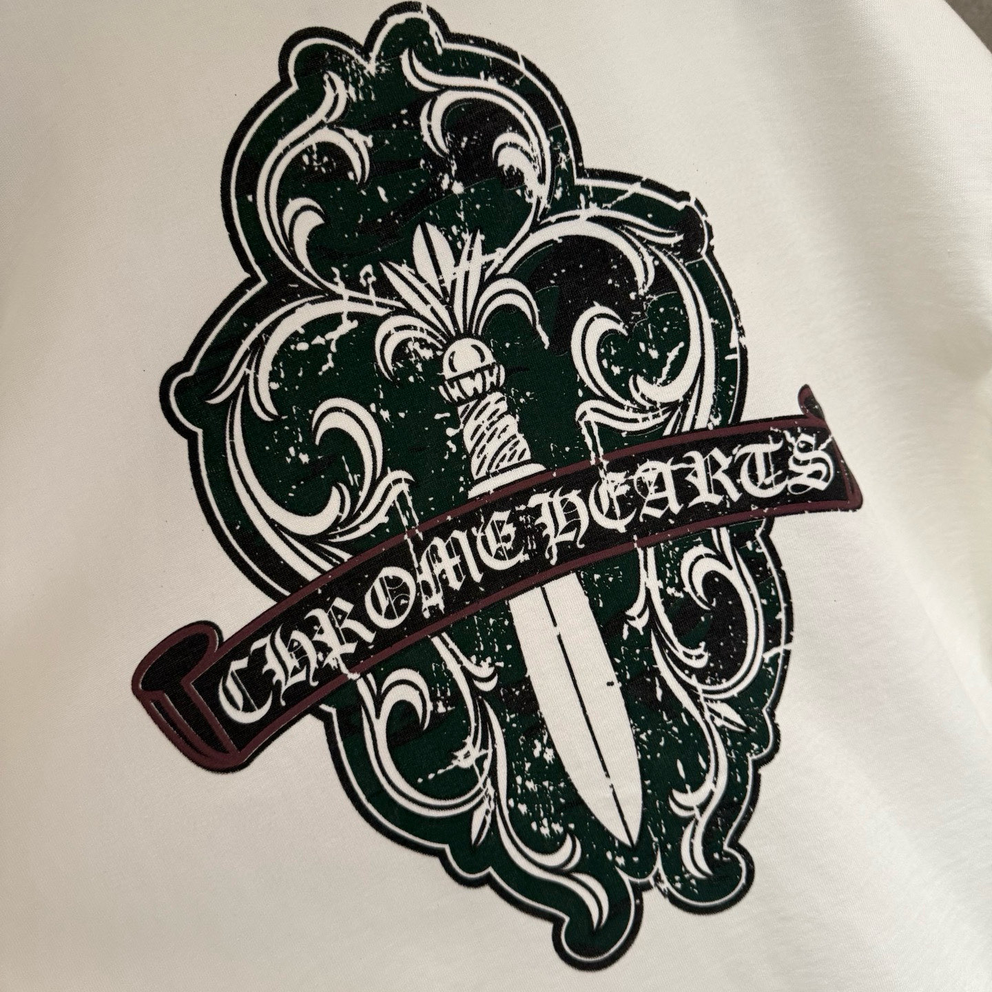 这款衣服是AAAAA 1:1 质量 (非常棒). 使用了和原版一模一样的材料. 商标部分也保持了和克罗心/Chrome Hearts一样. 图片拍摄是实物衣服拍摄, 您所收到的实物保证和我们图片一模一样.