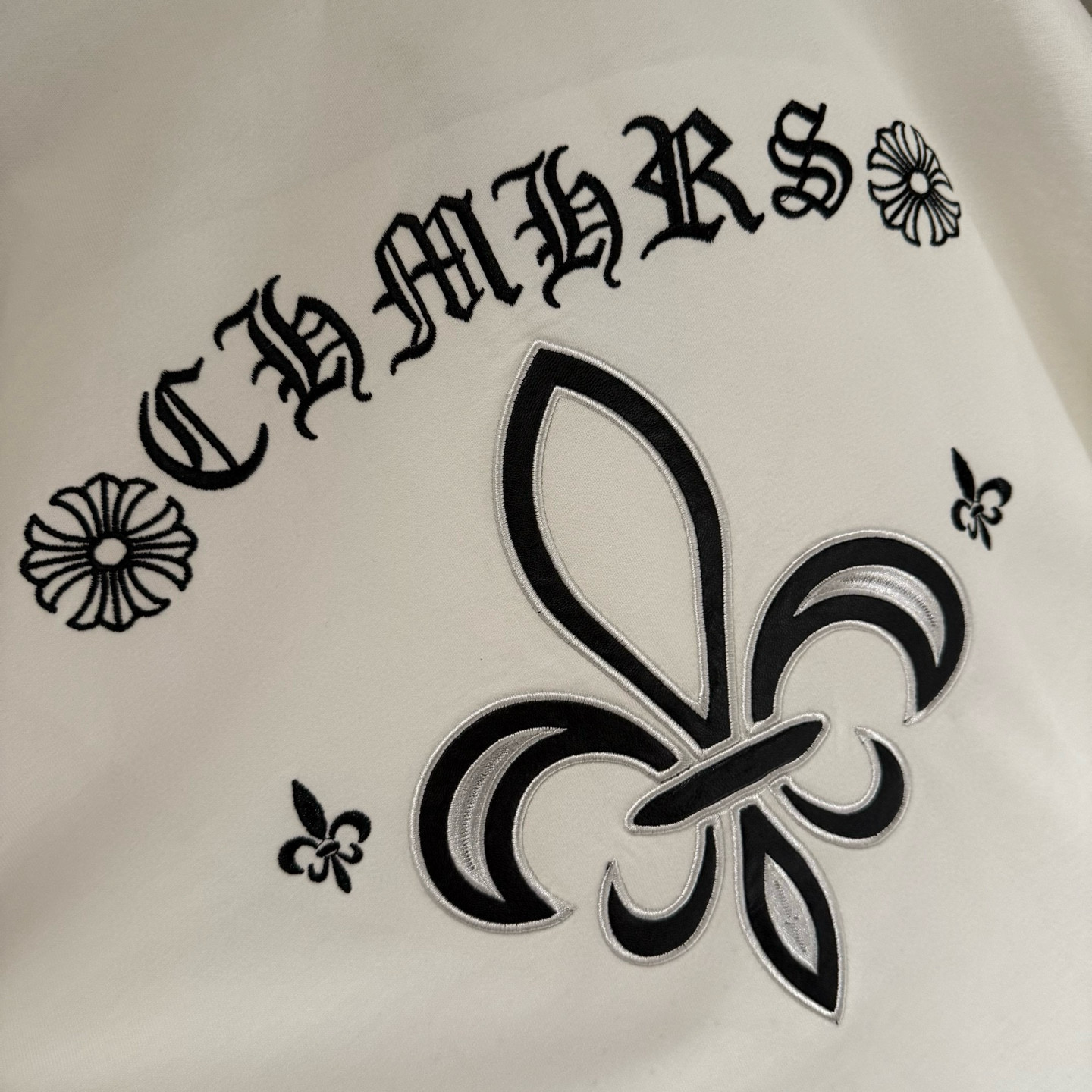 这款衣服是AAAAA 1:1 质量 (非常棒). 使用了和原版一模一样的材料. 商标部分也保持了和克罗心/Chrome Hearts一样. 图片拍摄是实物衣服拍摄, 您所收到的实物保证和我们图片一模一样.