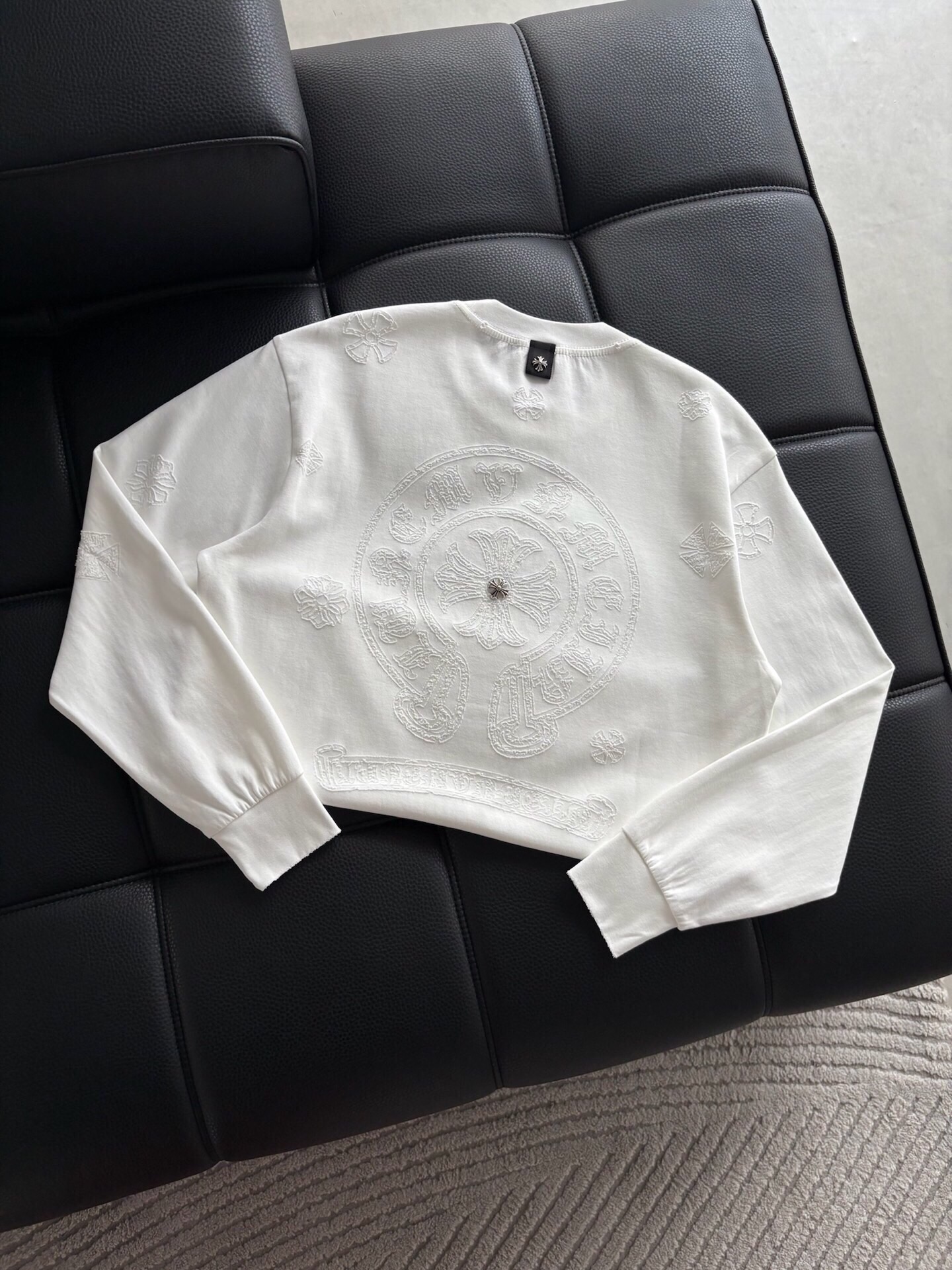 这款衣服是AAAAA 1:1 质量 (非常棒). 使用了和原版一模一样的材料. 商标部分也保持了和克罗心/Chrome Hearts一样. 图片拍摄是实物衣服拍摄, 您所收到的实物保证和我们图片一模一样.