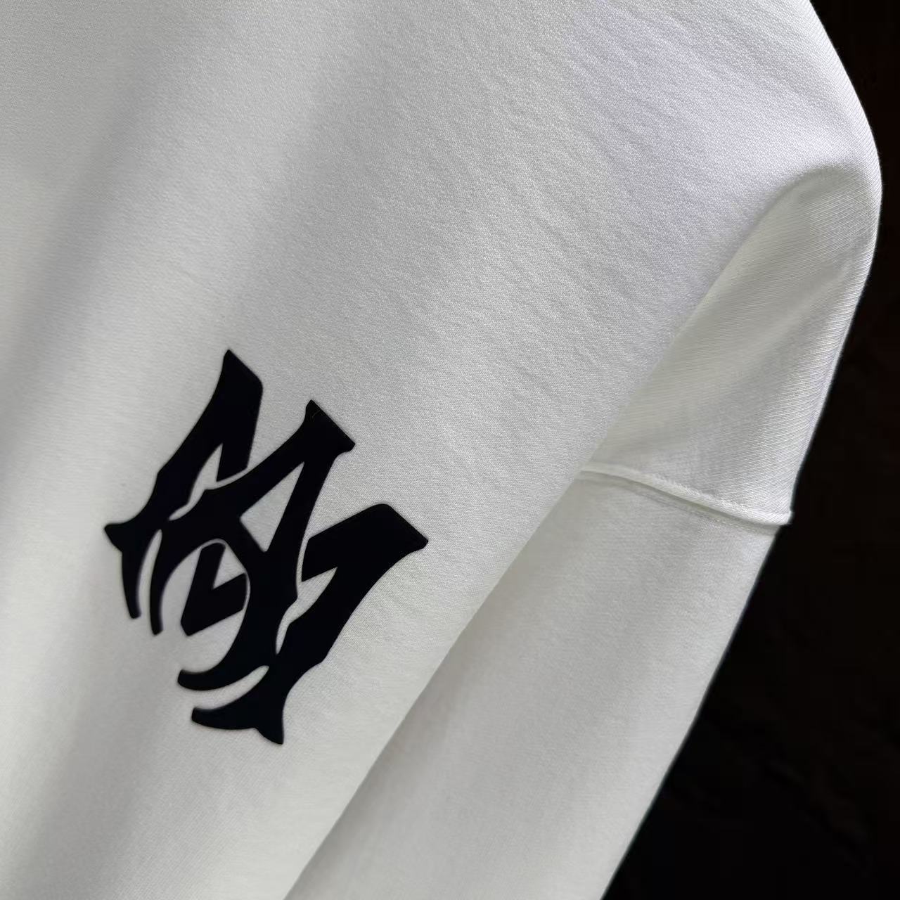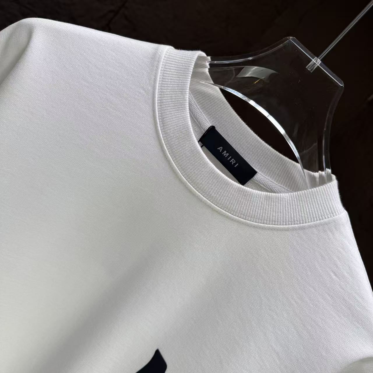 这款衣服是AAAAA 1:1 质量 (非常棒). 使用了和原版一模一样的材料. 商标部分也保持了和AMIRI一样. 图片拍摄是实物衣服拍摄, 您所收到的实物保证和我们图片一模一样.