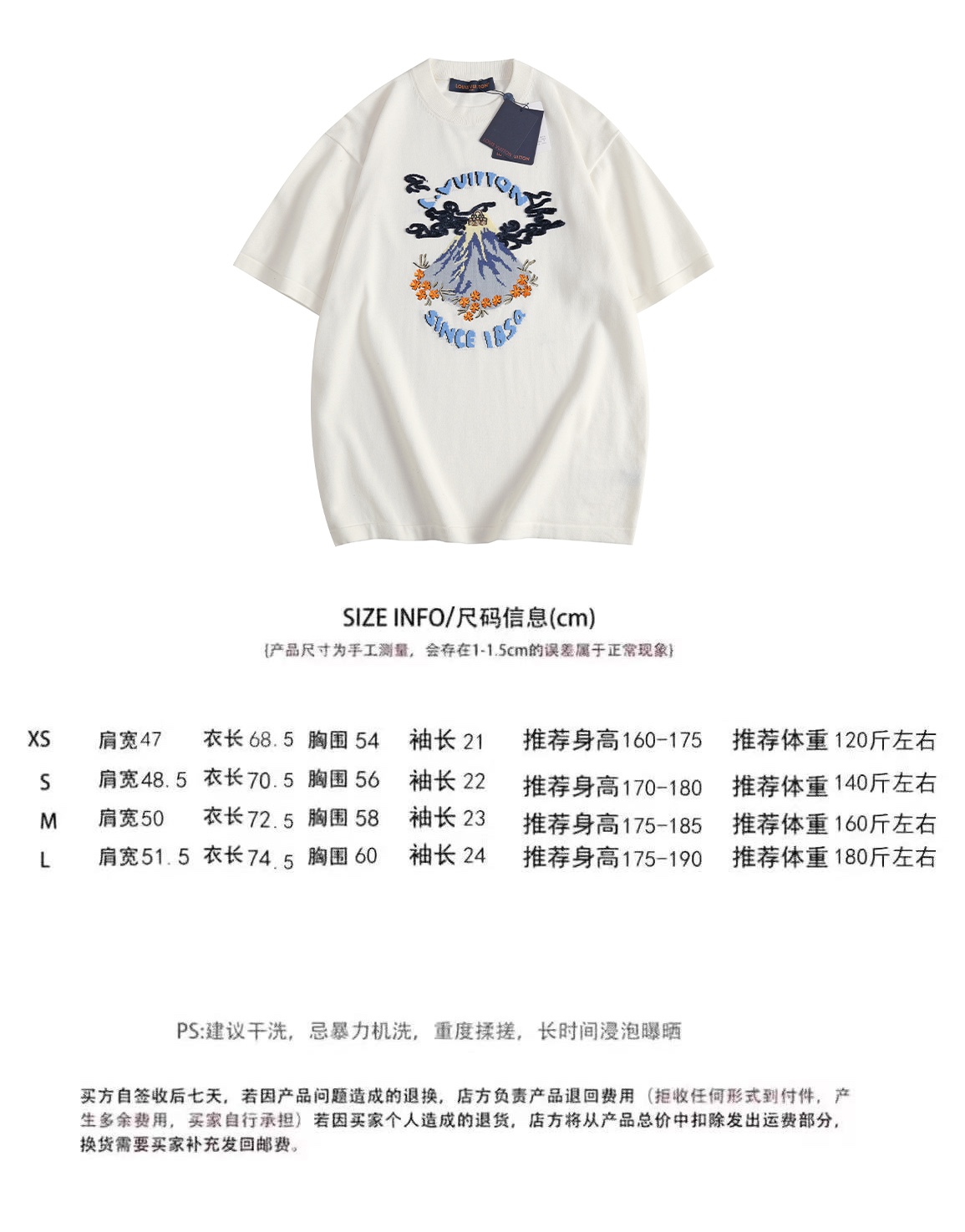 这款衣服是AAAAA 1:1 质量 (非常棒). 使用了和原版一模一样的材料. 商标部分也保持了和路易威登/Louis Vuitton一样. 图片拍摄是实物衣服拍摄, 您所收到的实物保证和我们图片一模一样.
