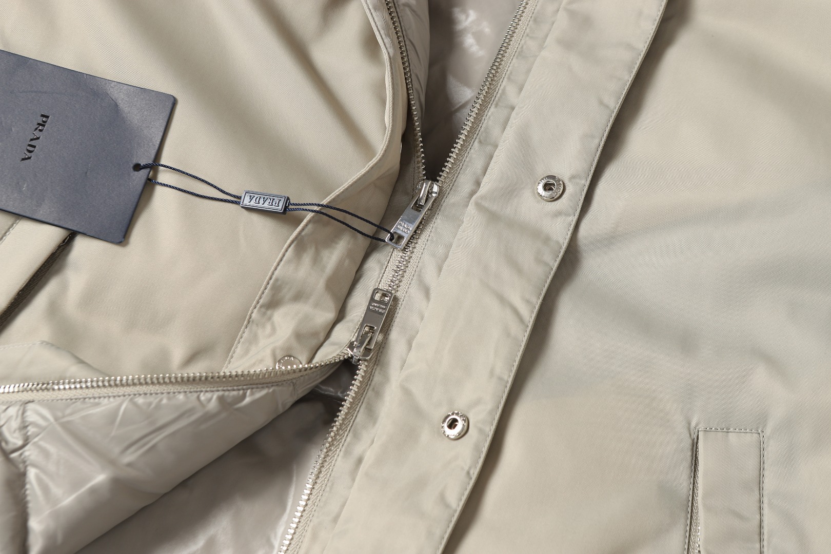 这款衣服是AAAAA 1:1 质量 (非常棒). 使用了和原版一模一样的材料. 商标部分也保持了和普拉达/Prada一样. 图片拍摄是实物衣服拍摄, 您所收到的实物保证和我们图片一模一样.