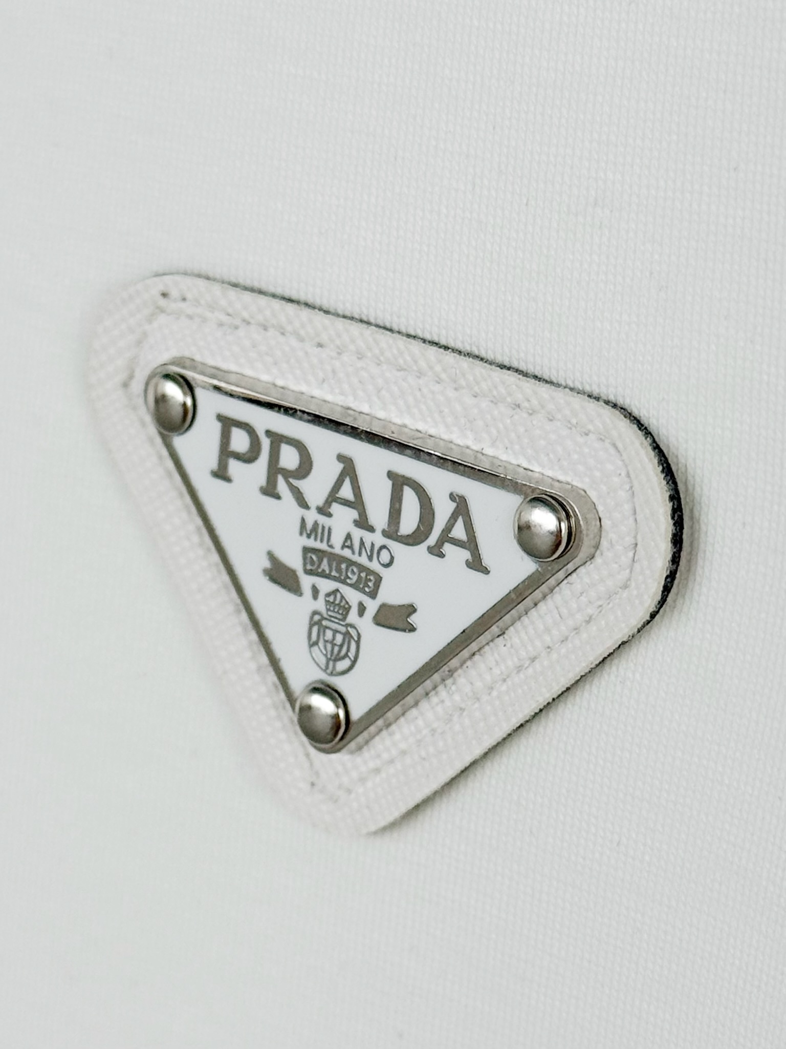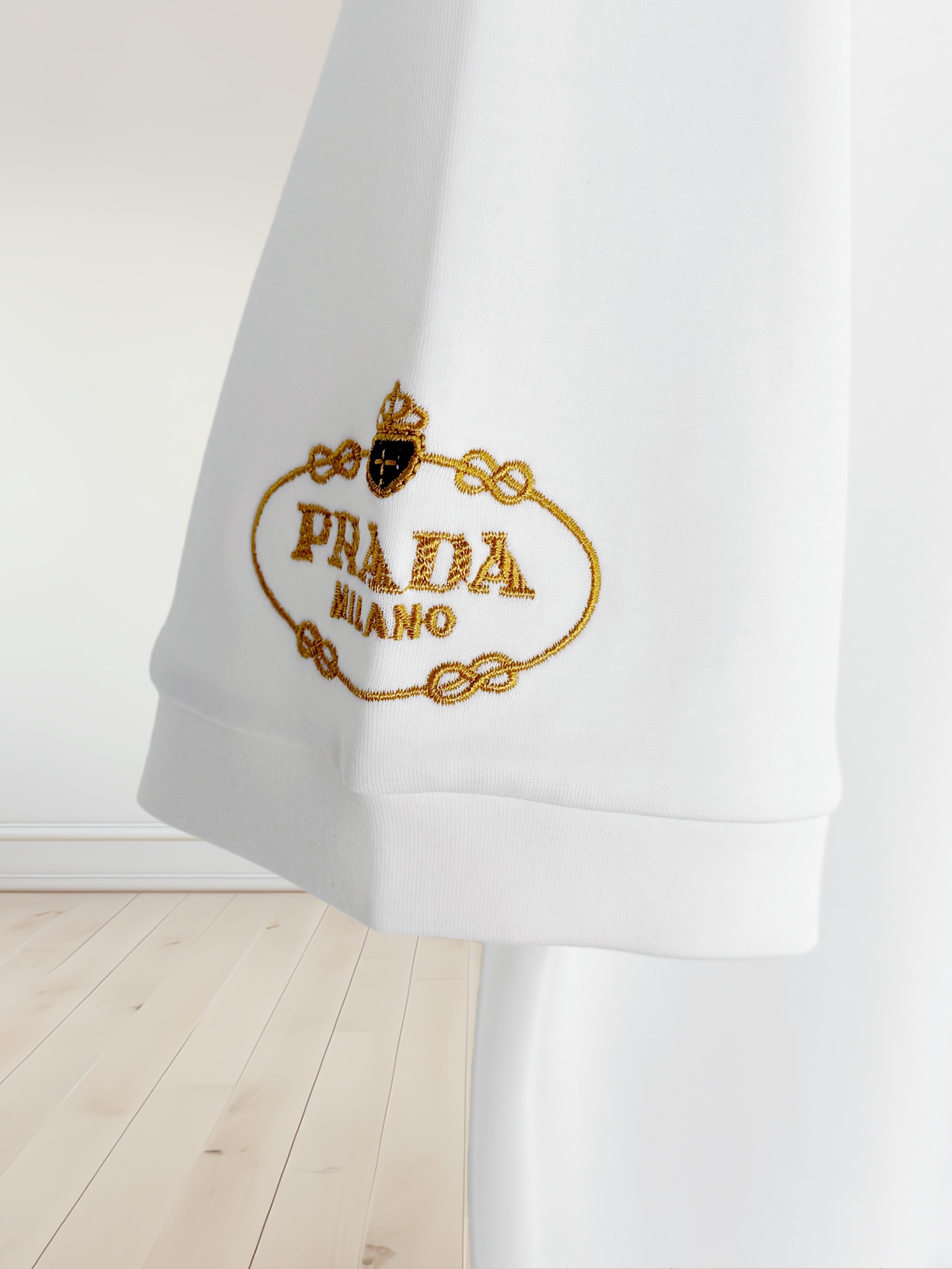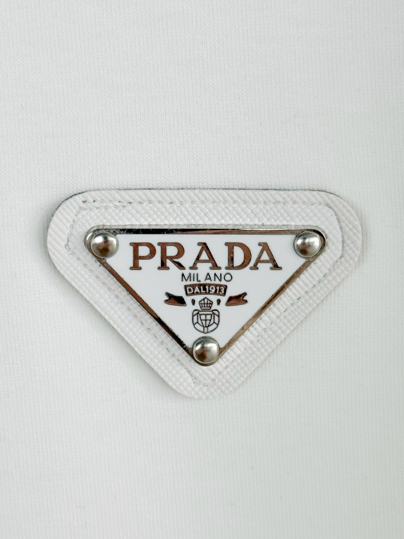 这款衣服是AAAAA 1:1 质量 (非常棒). 使用了和原版一模一样的材料. 商标部分也保持了和普拉达/Prada一样. 图片拍摄是实物衣服拍摄, 您所收到的实物保证和我们图片一模一样.