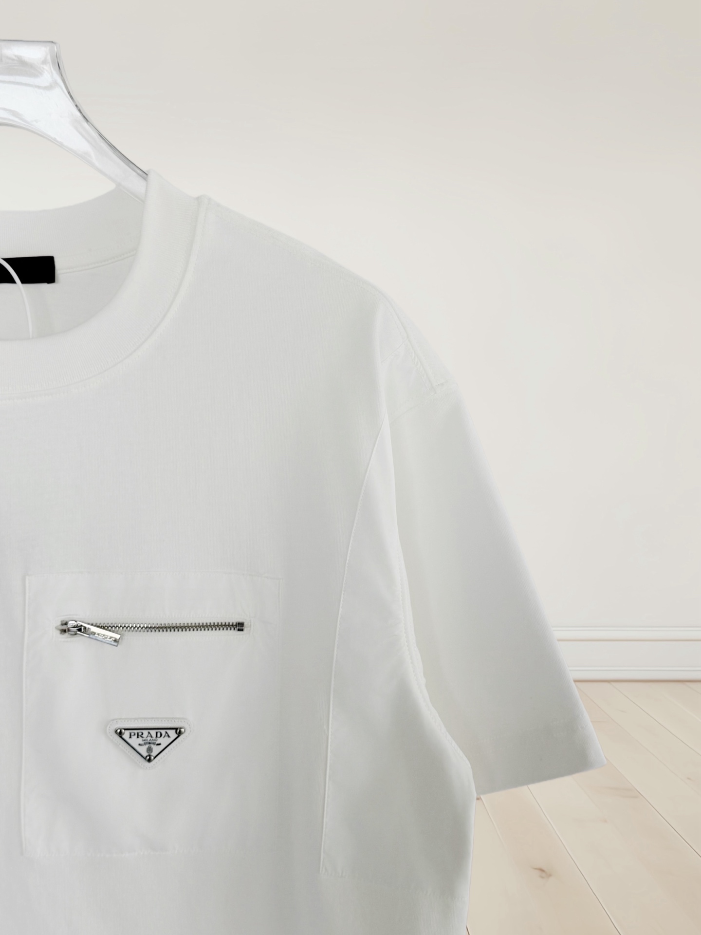 这款衣服是AAAAA 1:1 质量 (非常棒). 使用了和原版一模一样的材料. 商标部分也保持了和普拉达/Prada一样. 图片拍摄是实物衣服拍摄, 您所收到的实物保证和我们图片一模一样.