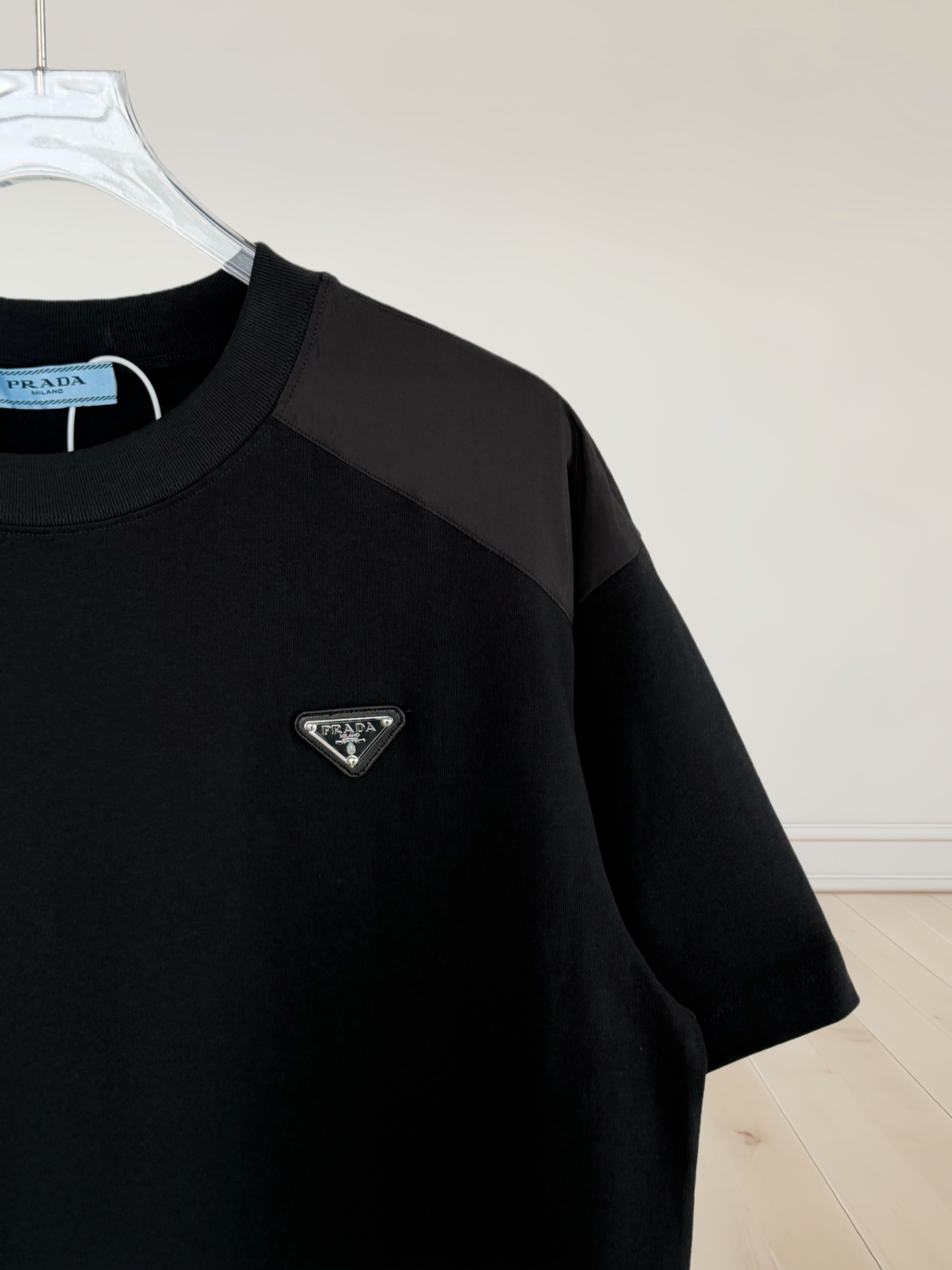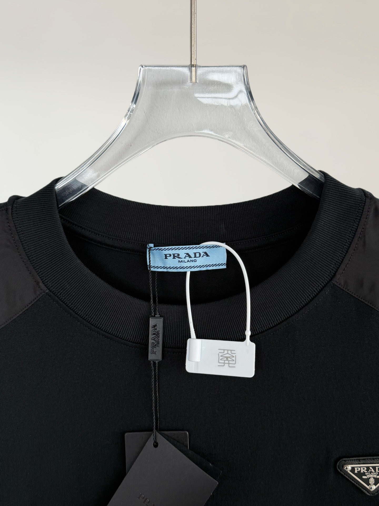 这款衣服是AAAAA 1:1 质量 (非常棒). 使用了和原版一模一样的材料. 商标部分也保持了和普拉达/Prada一样. 图片拍摄是实物衣服拍摄, 您所收到的实物保证和我们图片一模一样.
