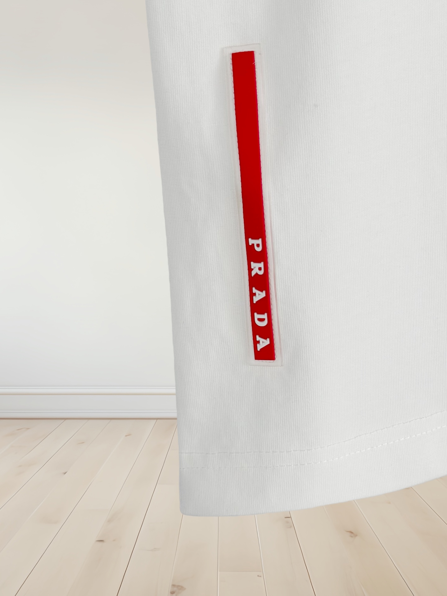 这款衣服是AAAAA 1:1 质量 (非常棒). 使用了和原版一模一样的材料. 商标部分也保持了和普拉达/Prada一样. 图片拍摄是实物衣服拍摄, 您所收到的实物保证和我们图片一模一样.