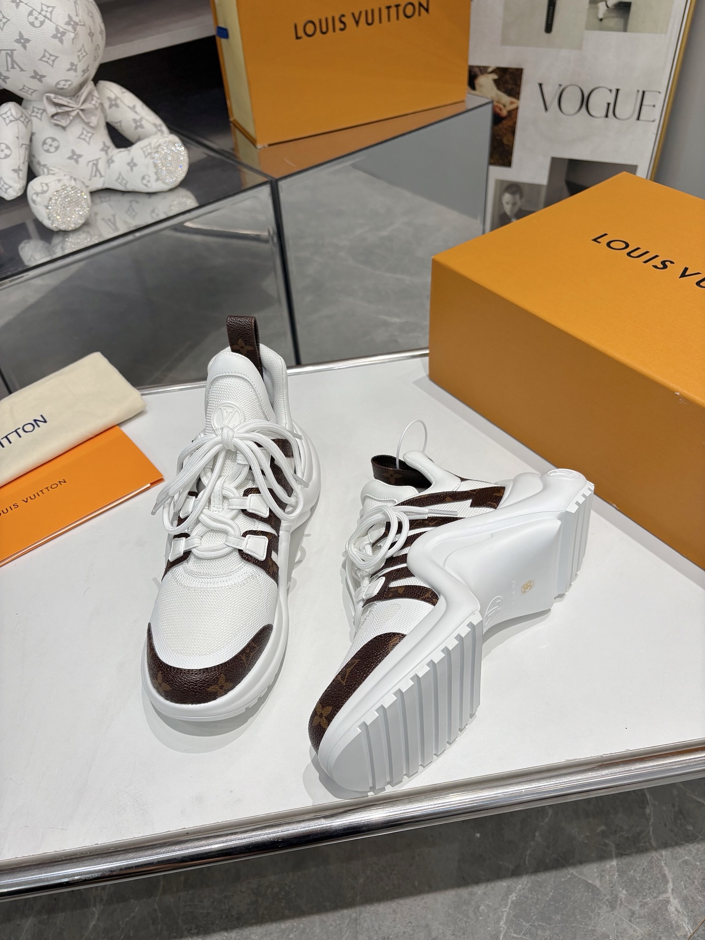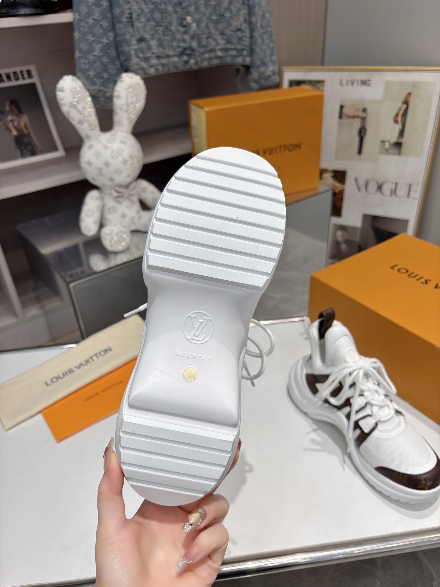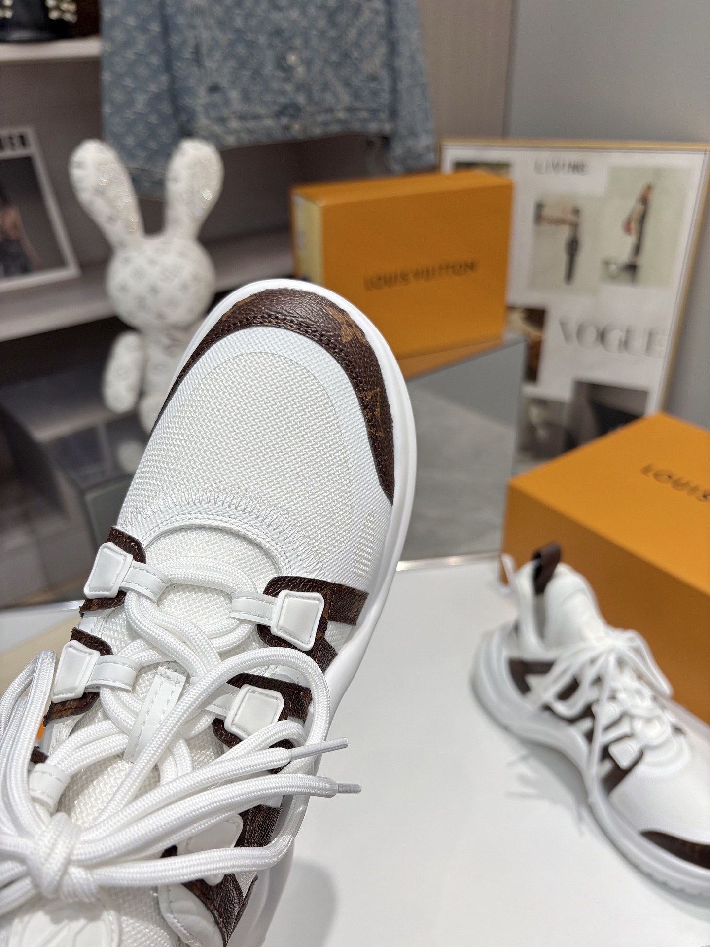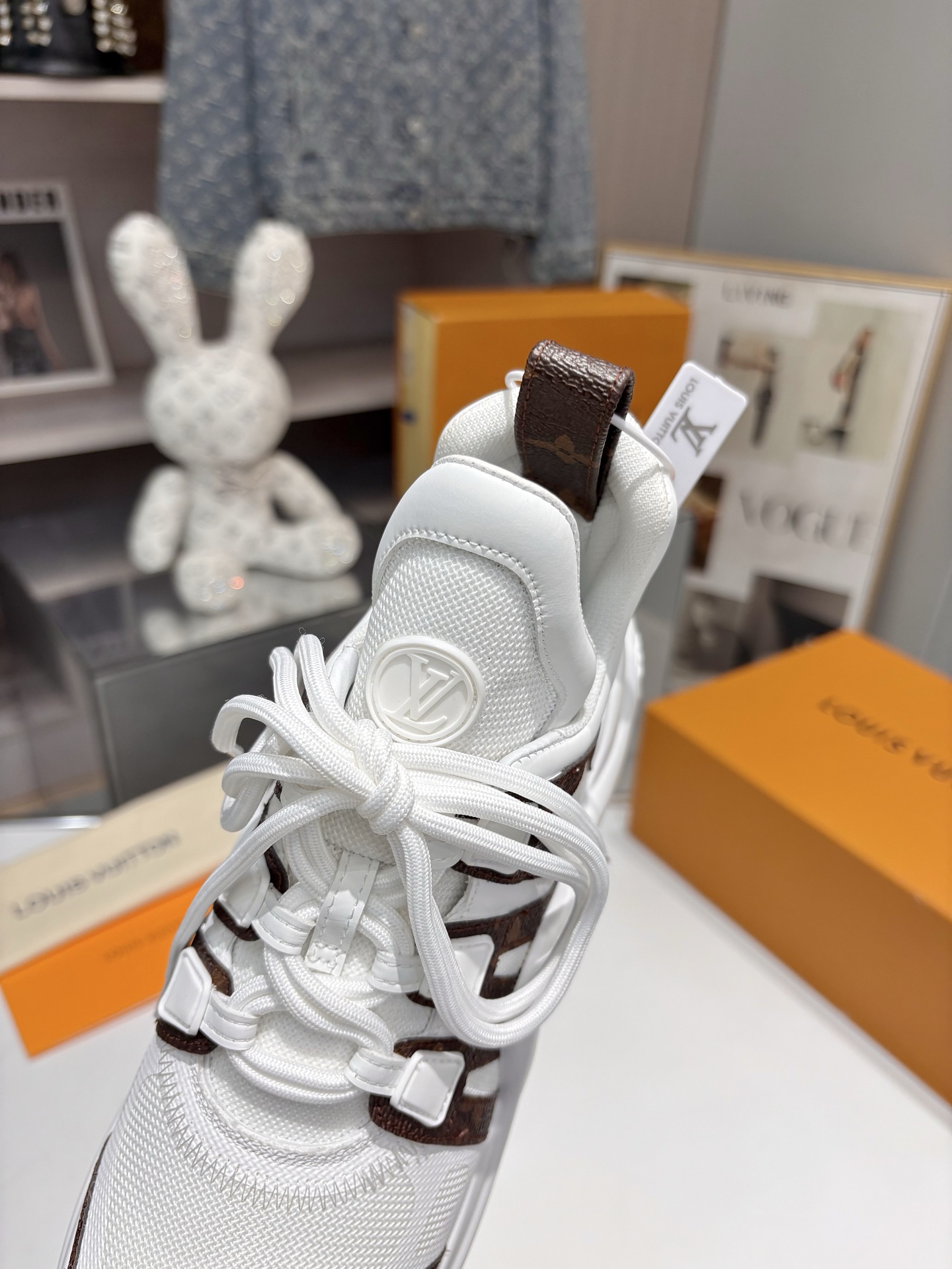 这款鞋子是AAAAA 1:1 质量 (非常棒). 使用了和原版一模一样的材料. 商标部分也保持了和路易威登/Louis Vuitton一样. 图片拍摄是实物鞋子拍摄, 您所收到的实物保证和我们图片一模一样.