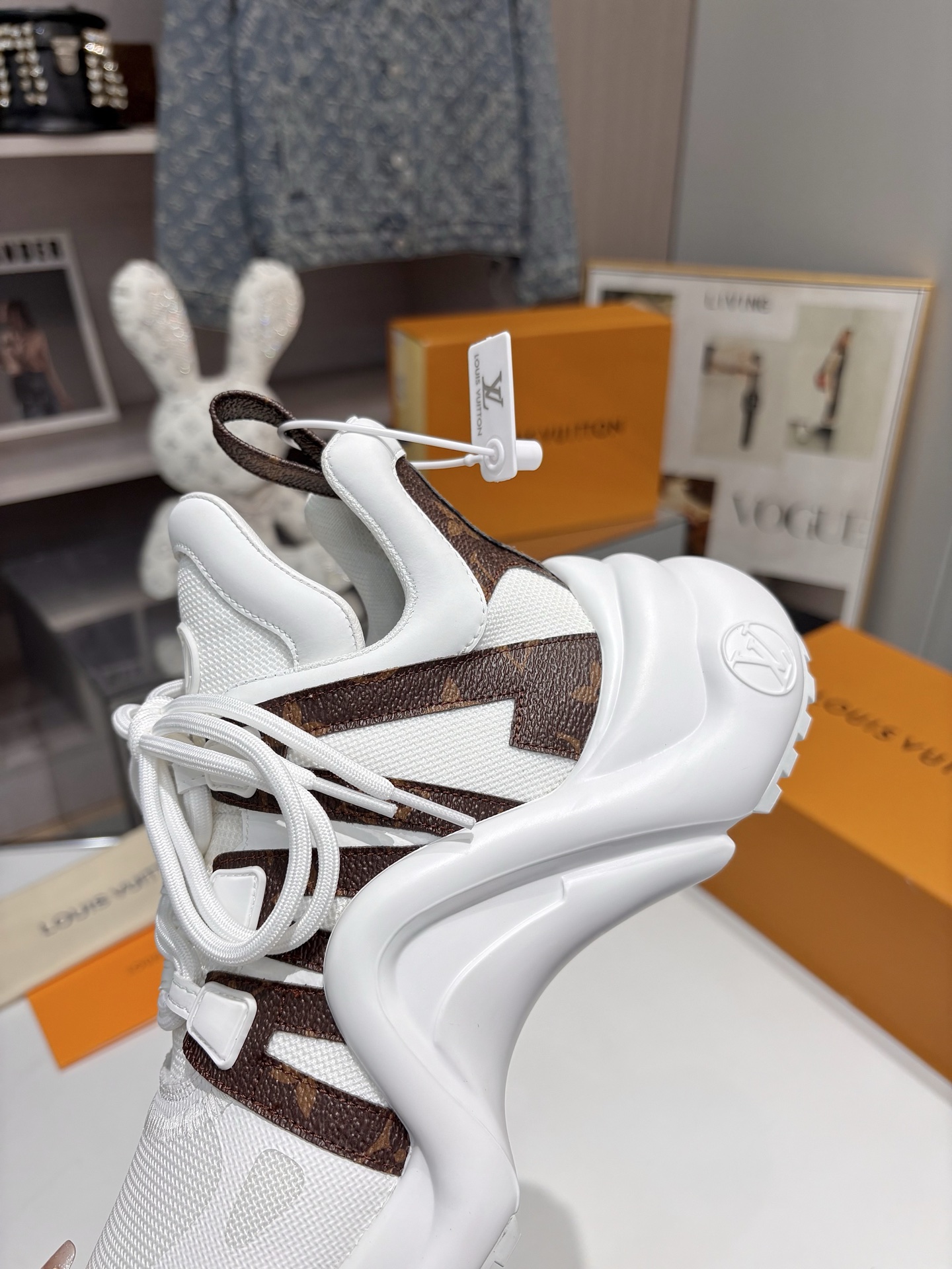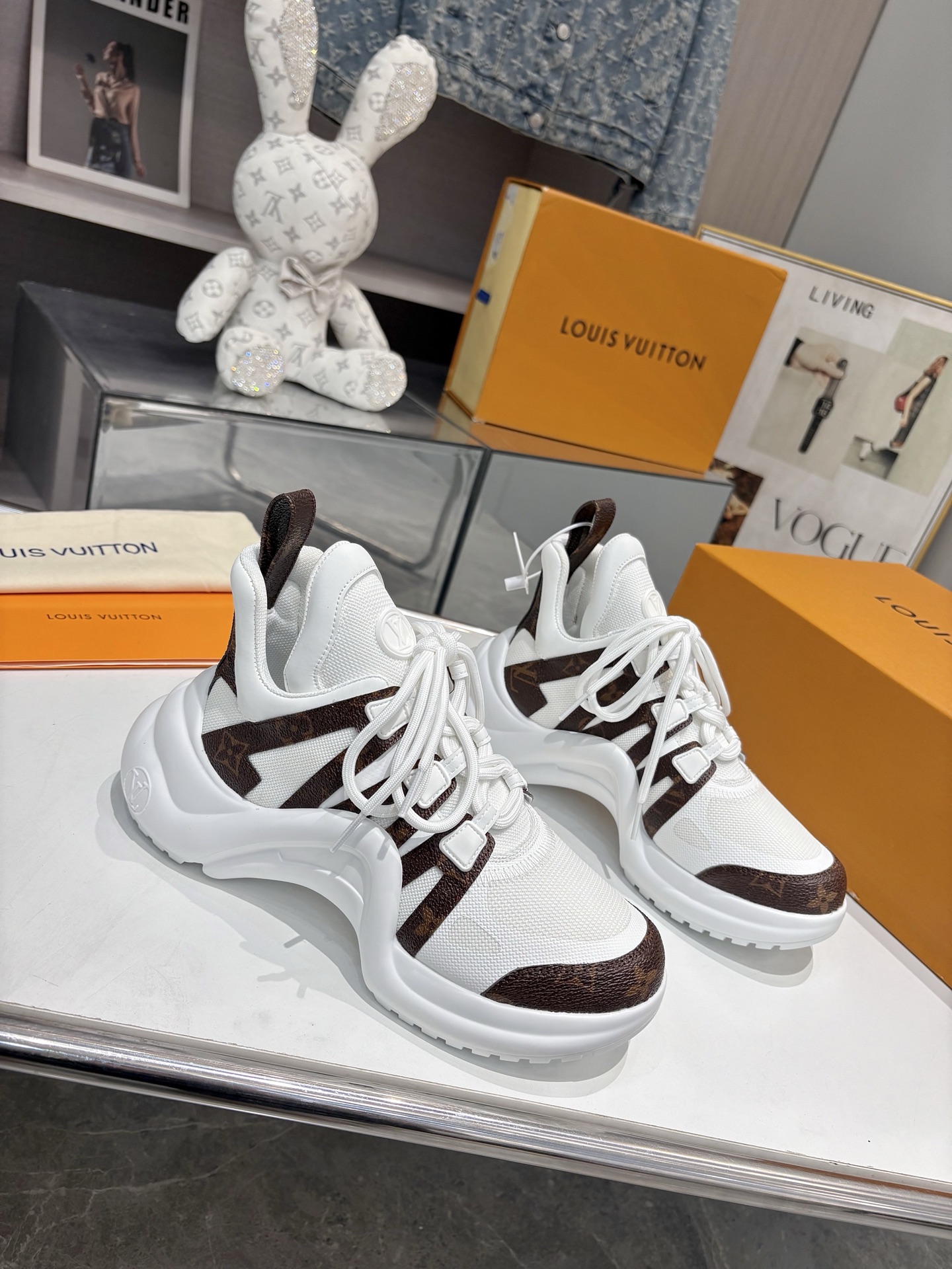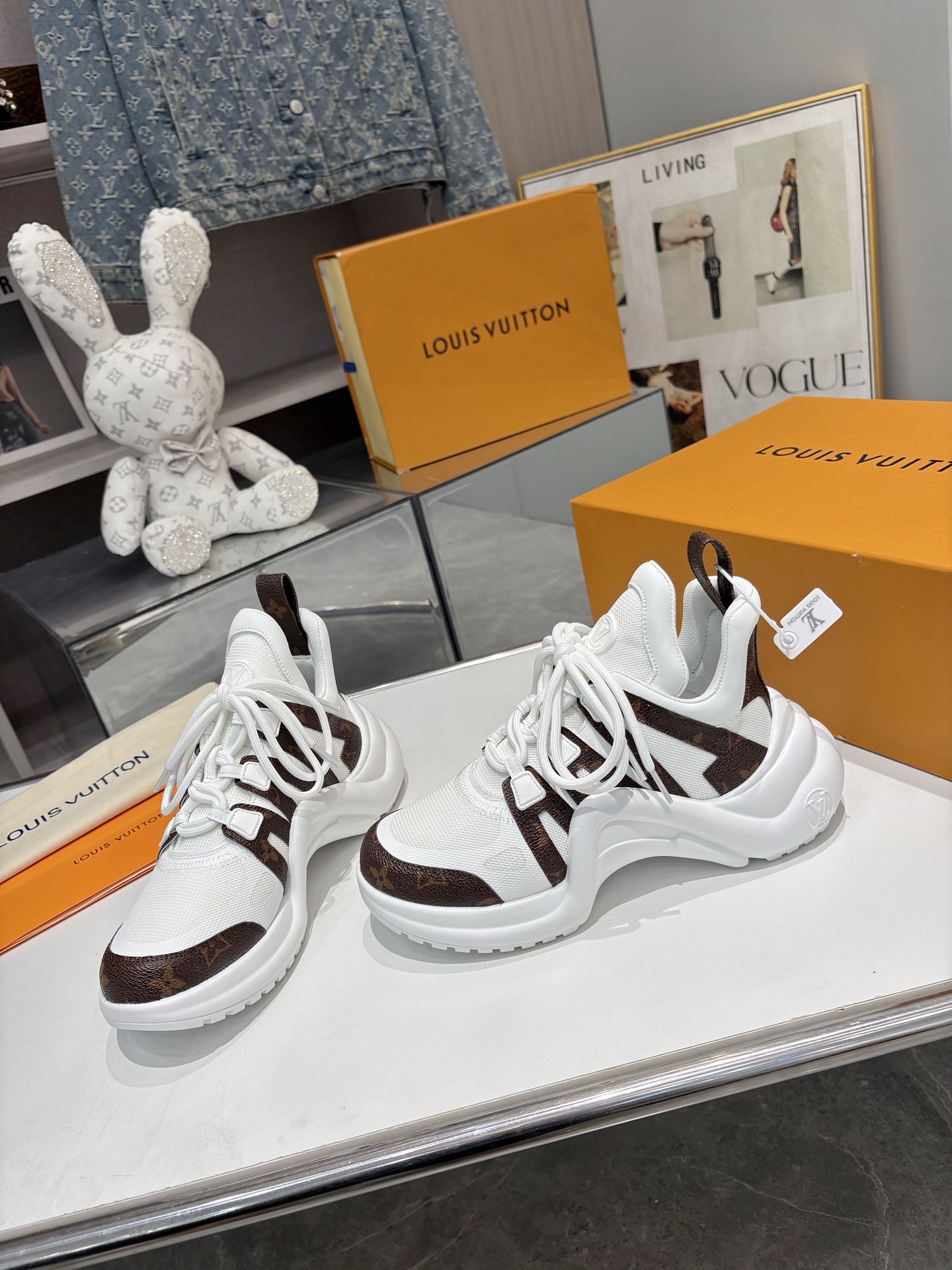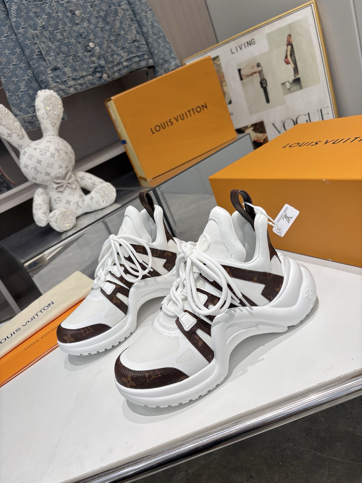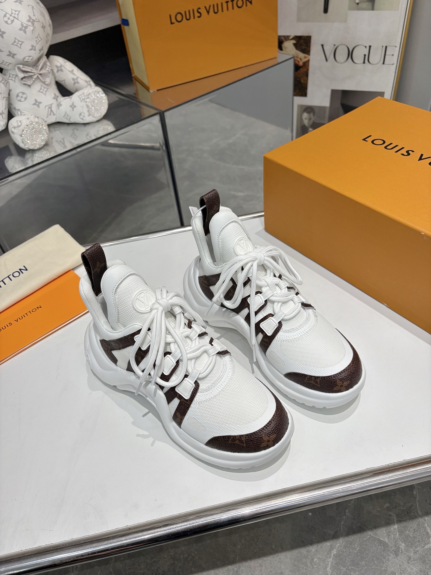 这款鞋子是AAAAA 1:1 质量 (非常棒). 使用了和原版一模一样的材料. 商标部分也保持了和路易威登/Louis Vuitton一样. 图片拍摄是实物鞋子拍摄, 您所收到的实物保证和我们图片一模一样.