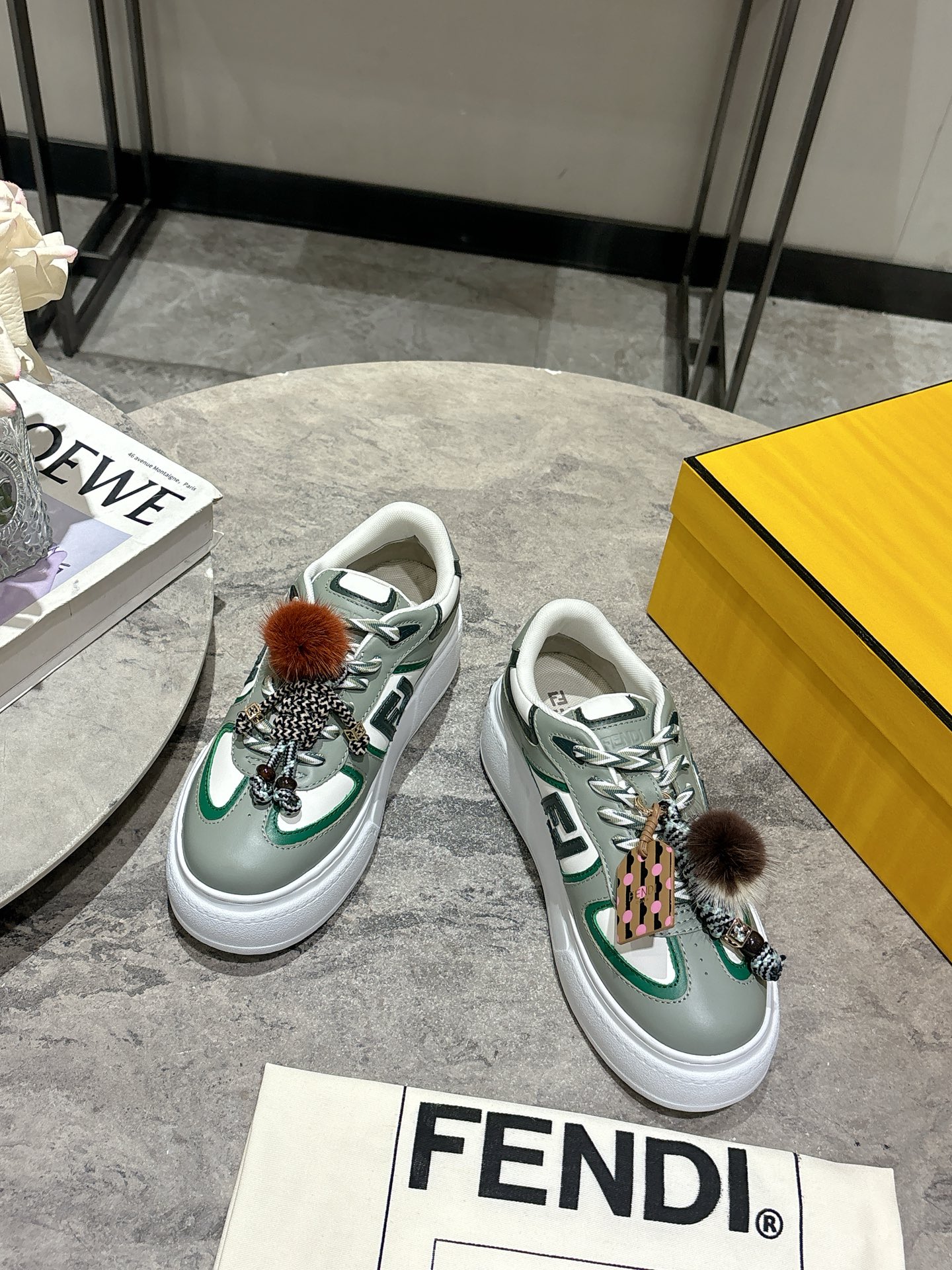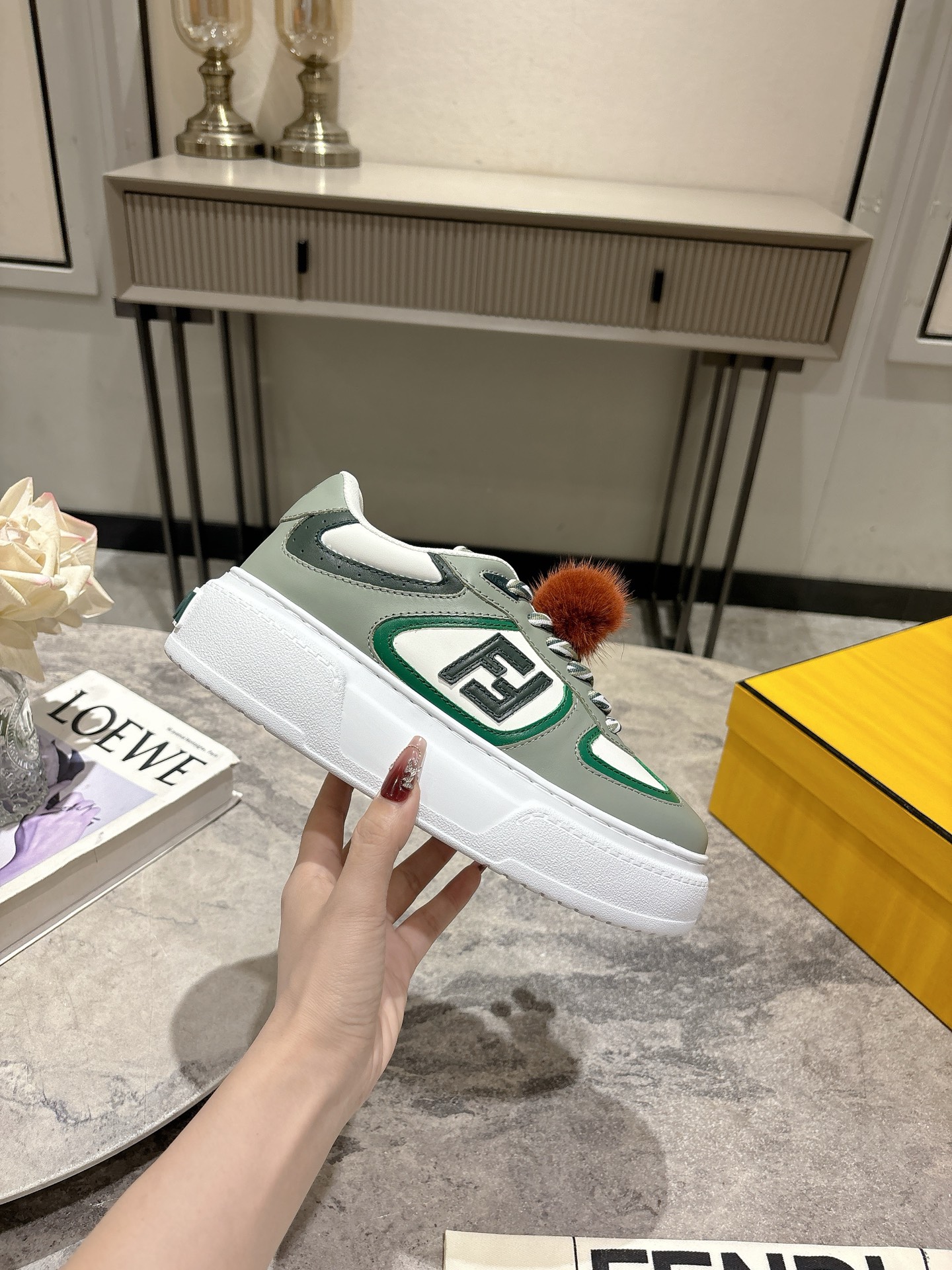 这款鞋子是AAAAA 1:1 质量 (非常棒). 使用了和原版一模一样的材料. 商标部分也保持了和芬迪/Fendi一样. 图片拍摄是实物鞋子拍摄, 您所收到的实物保证和我们图片一模一样.