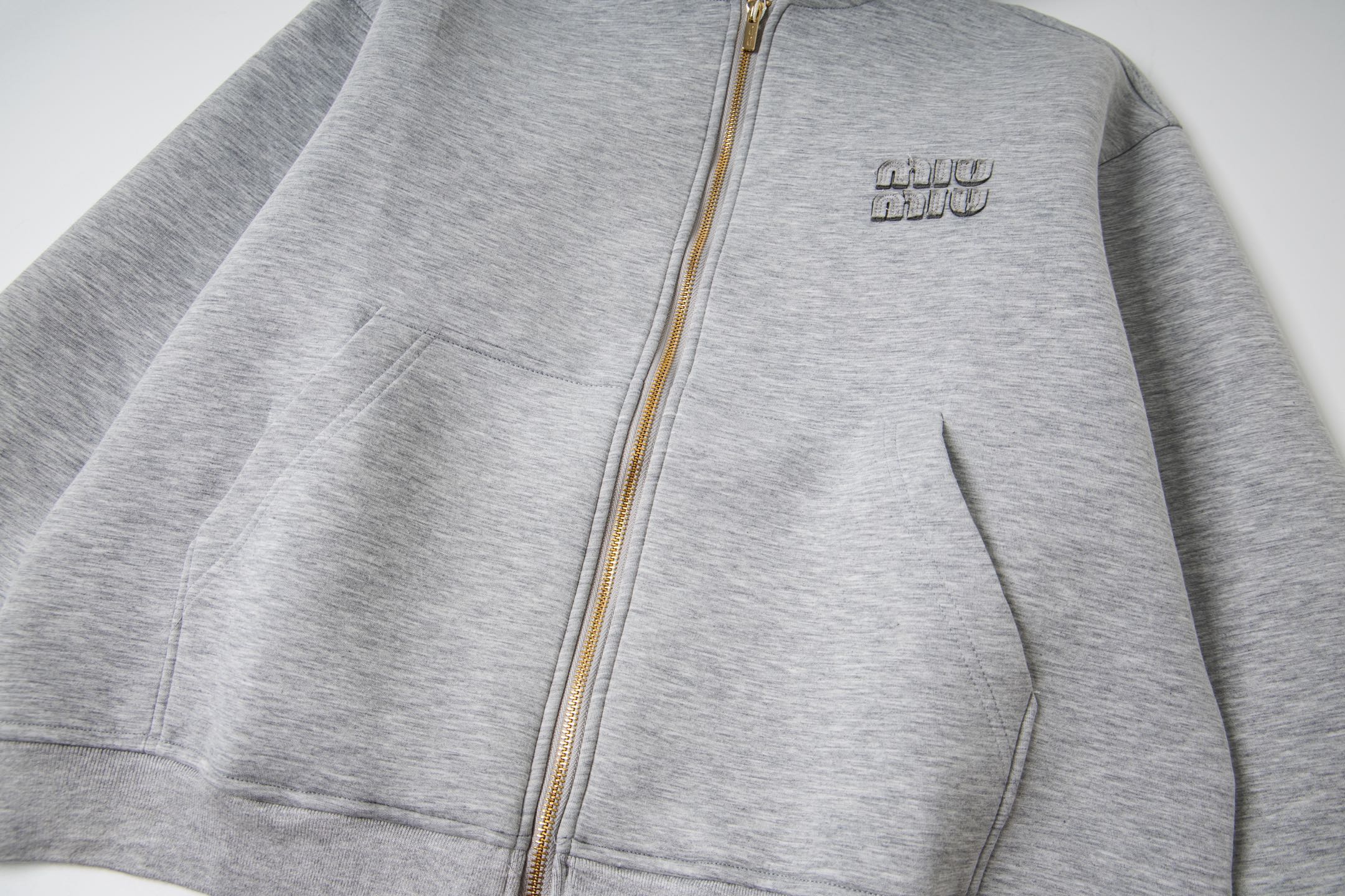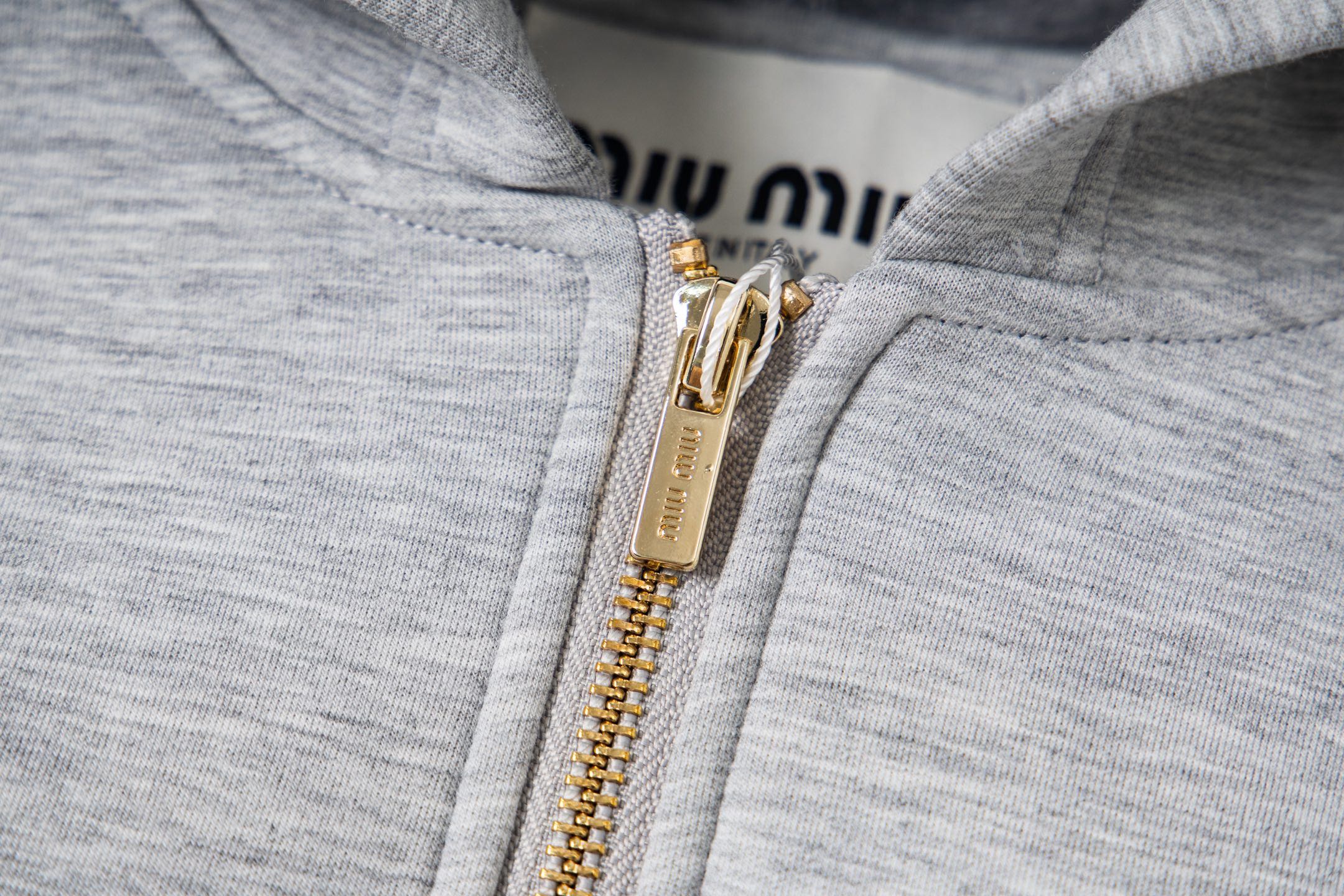 这款衣服是AAAAA 1:1 质量 (非常棒). 使用了和原版一模一样的材料. 商标部分也保持了和缪缪/Miu Miu一样. 图片拍摄是实物衣服拍摄, 您所收到的实物保证和我们图片一模一样.