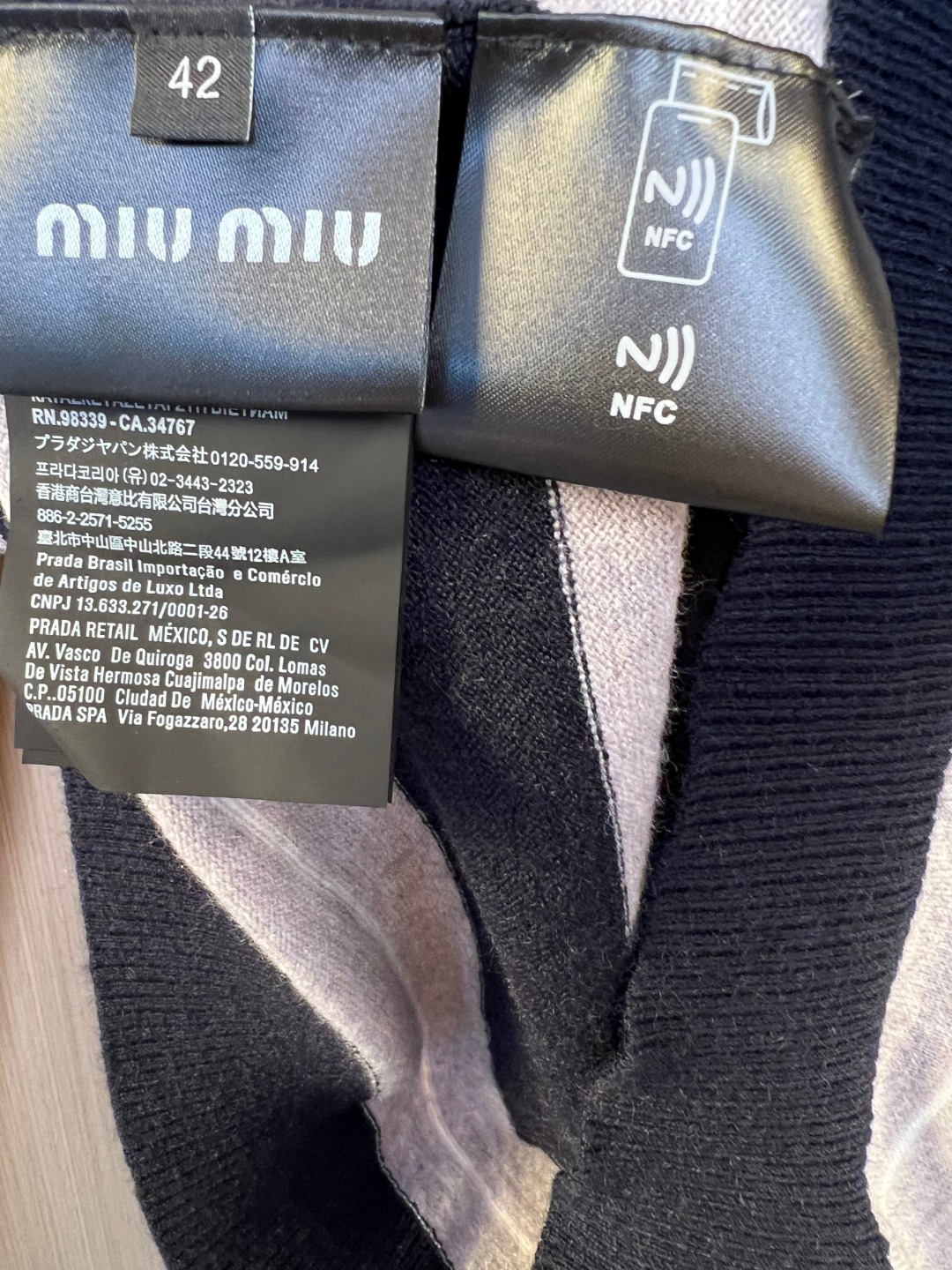 这款衣服是AAAAA 1:1 质量 (非常棒). 使用了和原版一模一样的材料. 商标部分也保持了和缪缪/Miu Miu一样. 图片拍摄是实物衣服拍摄, 您所收到的实物保证和我们图片一模一样.