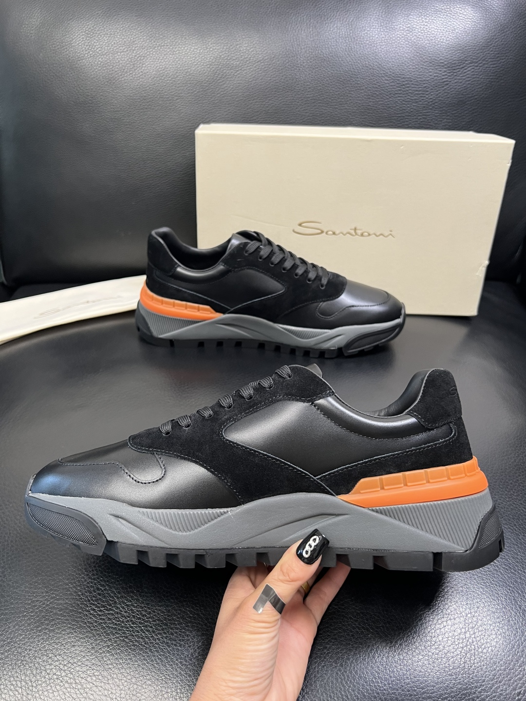 这款鞋子是AAAAA 1:1 质量 (非常棒). 使用了和原版一模一样的材料. 商标部分也保持了和Santoni一样. 图片拍摄是实物鞋子拍摄, 您所收到的实物保证和我们图片一模一样.