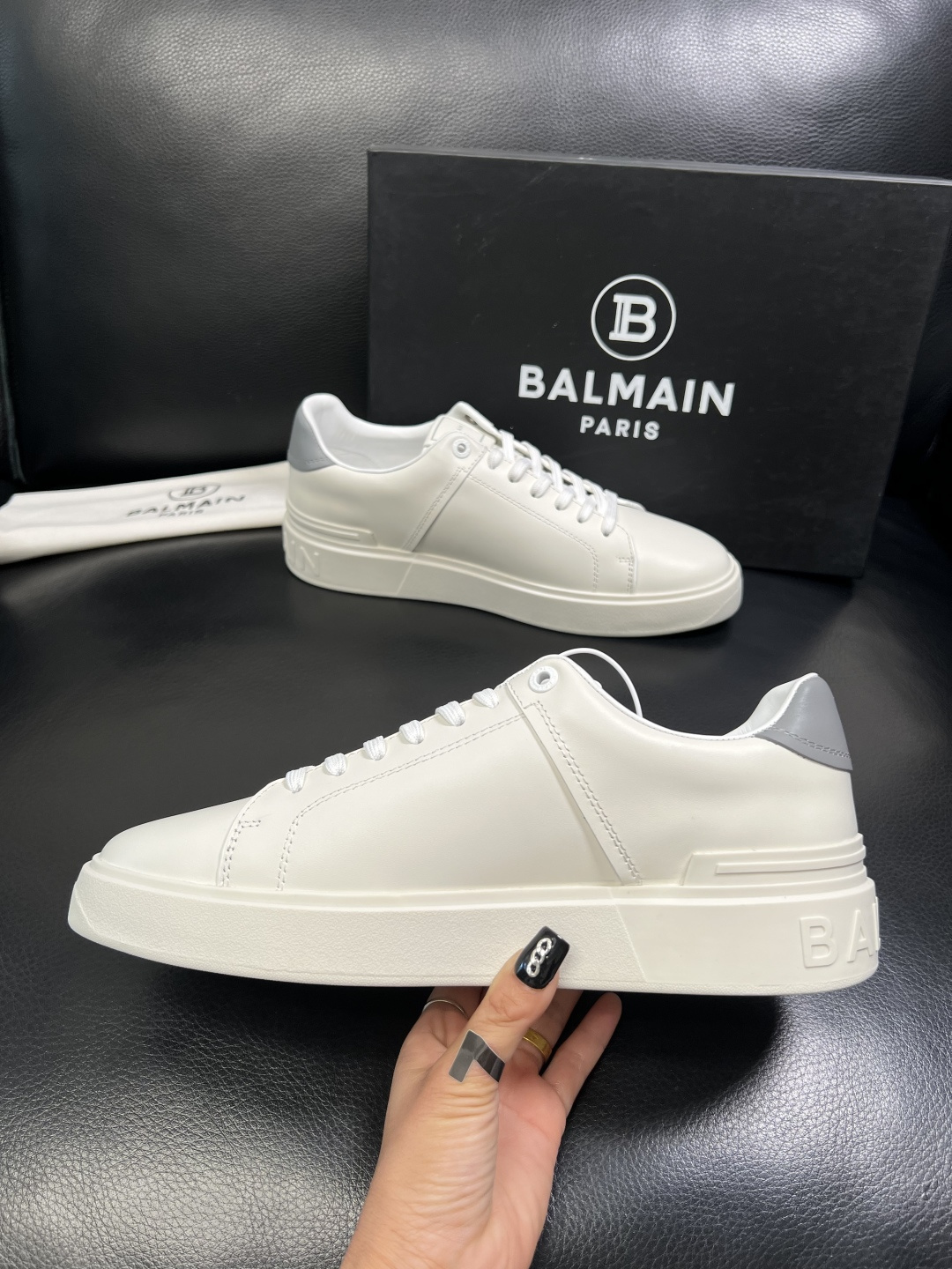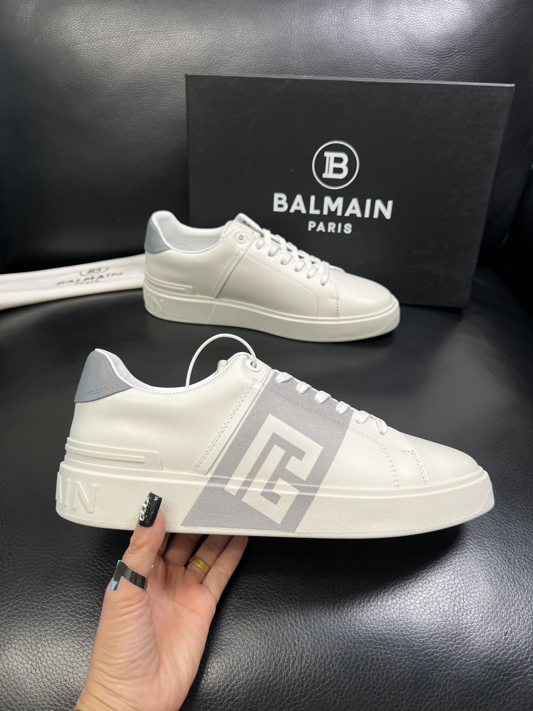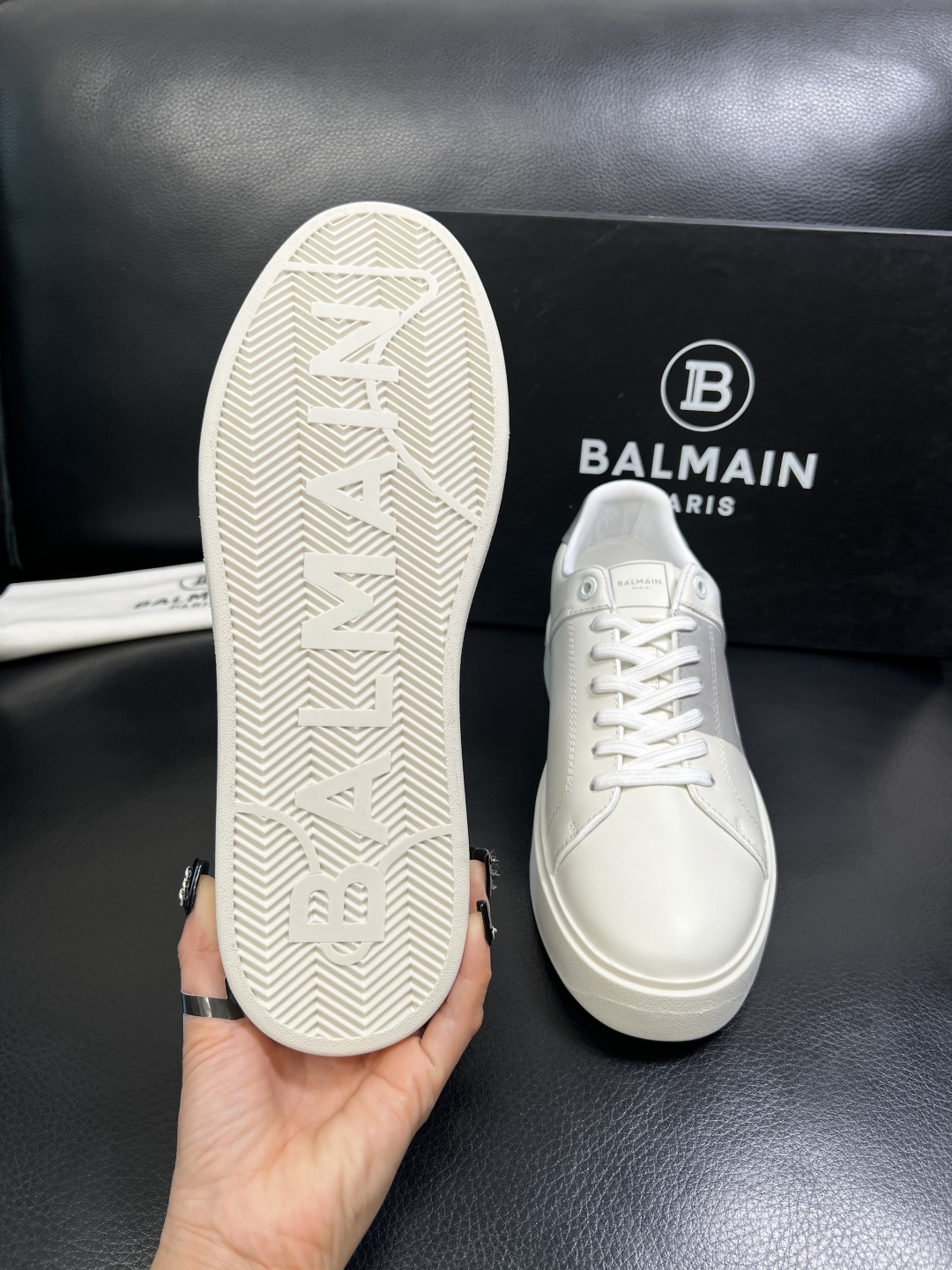 这款鞋子是AAAAA 1:1 质量 (非常棒). 使用了和原版一模一样的材料. 商标部分也保持了和巴尔曼/Balmain一样. 图片拍摄是实物鞋子拍摄, 您所收到的实物保证和我们图片一模一样.
