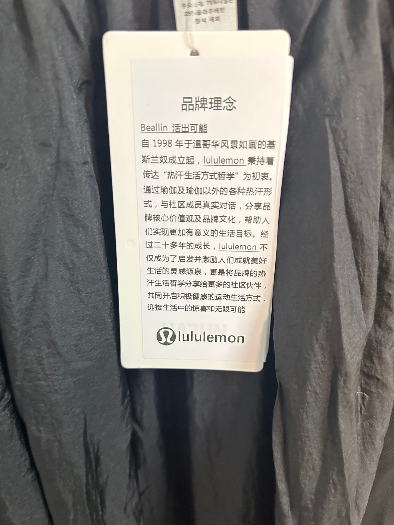 这款衣服是AAAAA 1:1 质量 (非常棒). 使用了和原版一模一样的材料. 商标部分也保持了和Lululemon一样. 图片拍摄是实物衣服拍摄, 您所收到的实物保证和我们图片一模一样.