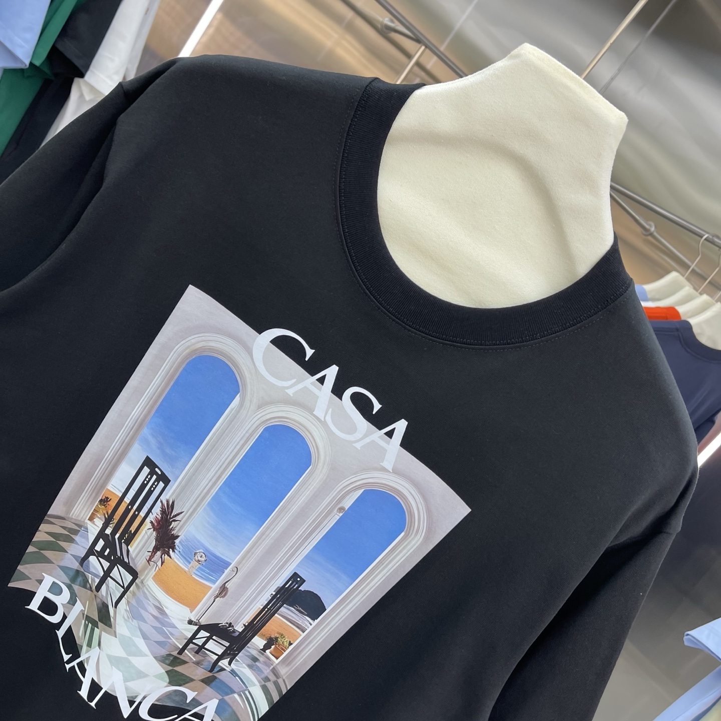 这款衣服是AAAAA 1:1 质量 (非常棒). 使用了和原版一模一样的材料. 商标部分也保持了和Casablanca一样. 图片拍摄是实物衣服拍摄, 您所收到的实物保证和我们图片一模一样.