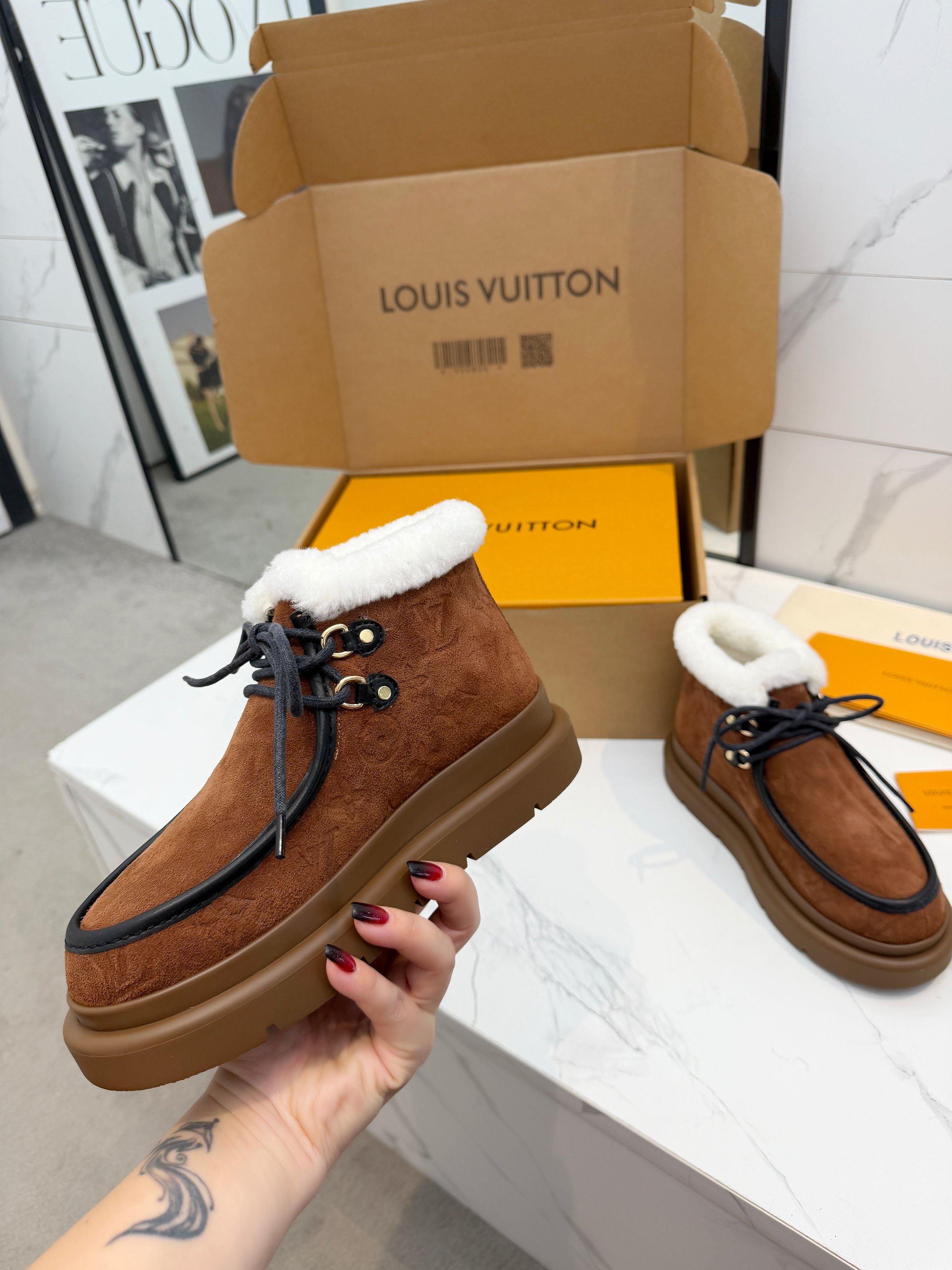 这款鞋子是AAAAA 1:1 质量 (非常棒). 使用了和原版一模一样的材料. 商标部分也保持了和路易威登/Louis Vuitton一样. 图片拍摄是实物鞋子拍摄, 您所收到的实物保证和我们图片一模一样.