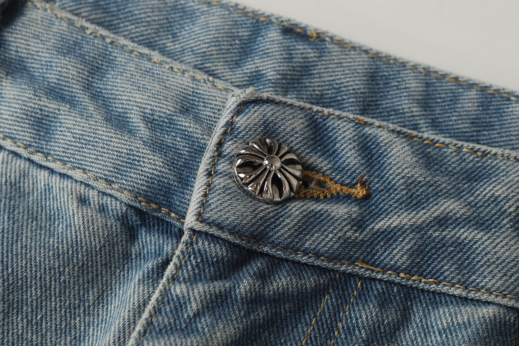 这款衣服是AAAAA 1:1 质量 (非常棒). 使用了和原版一模一样的材料. 商标部分也保持了和克罗心/Chrome Hearts一样. 图片拍摄是实物衣服拍摄, 您所收到的实物保证和我们图片一模一样.