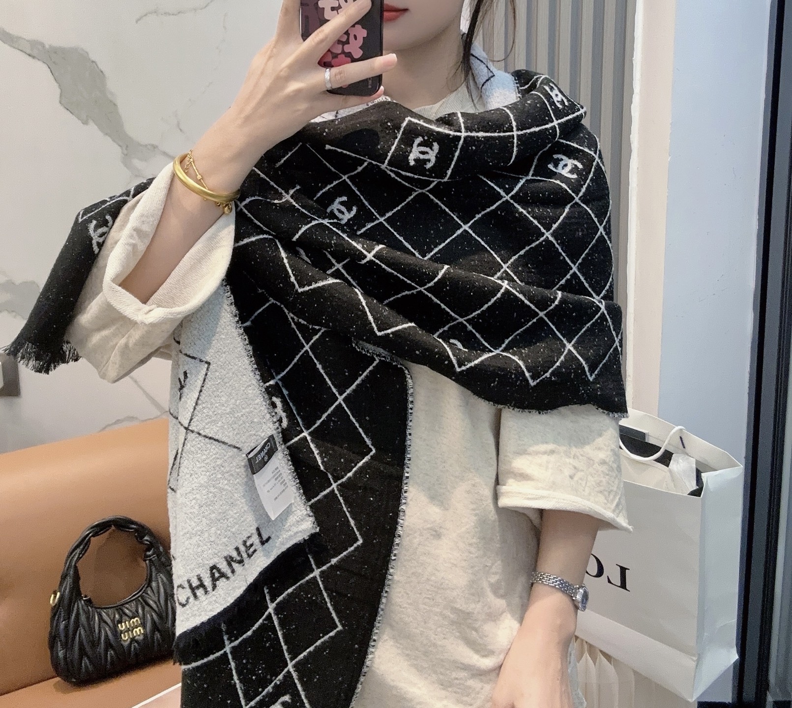 这款衣服是AAAAA 1:1 质量 (非常棒). 使用了和原版一模一样的材料. 商标部分也保持了和香奈儿/Chanel一样. 图片拍摄是实物衣服拍摄, 您所收到的实物保证和我们图片一模一样.