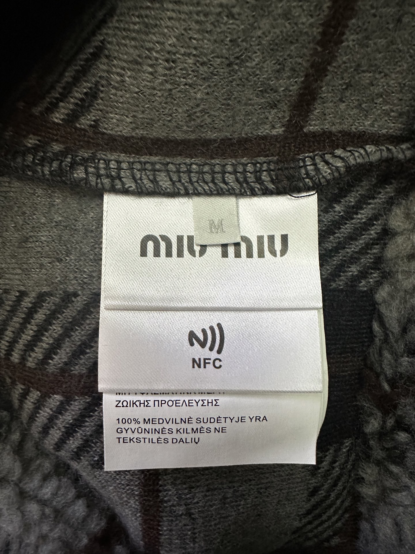 这款衣服是AAAAA 1:1 质量 (非常棒). 使用了和原版一模一样的材料. 商标部分也保持了和缪缪/Miu Miu一样. 图片拍摄是实物衣服拍摄, 您所收到的实物保证和我们图片一模一样.