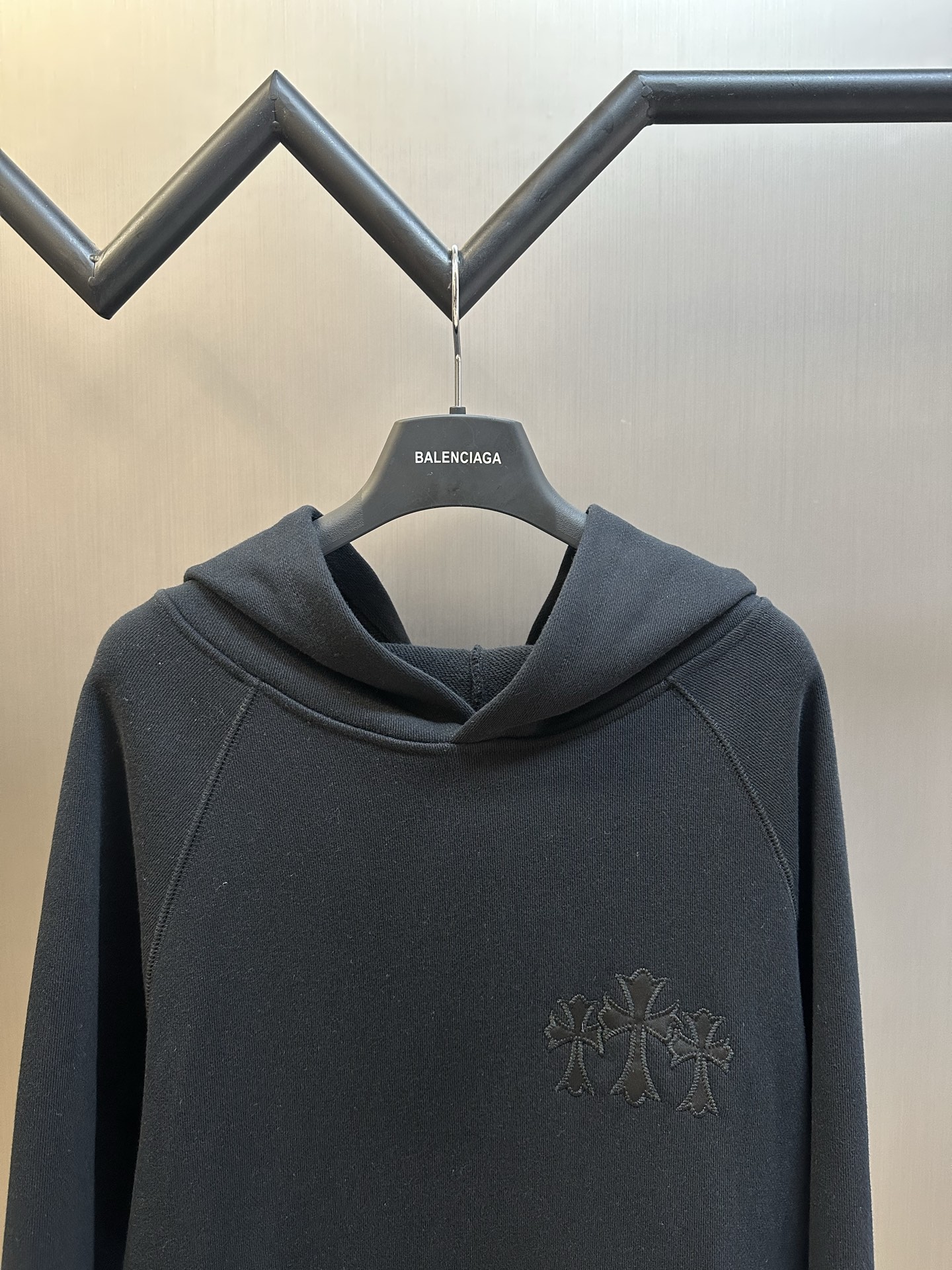 这款衣服是AAAAA 1:1 质量 (非常棒). 使用了和原版一模一样的材料. 商标部分也保持了和克罗心/Chrome Hearts一样. 图片拍摄是实物衣服拍摄, 您所收到的实物保证和我们图片一模一样.