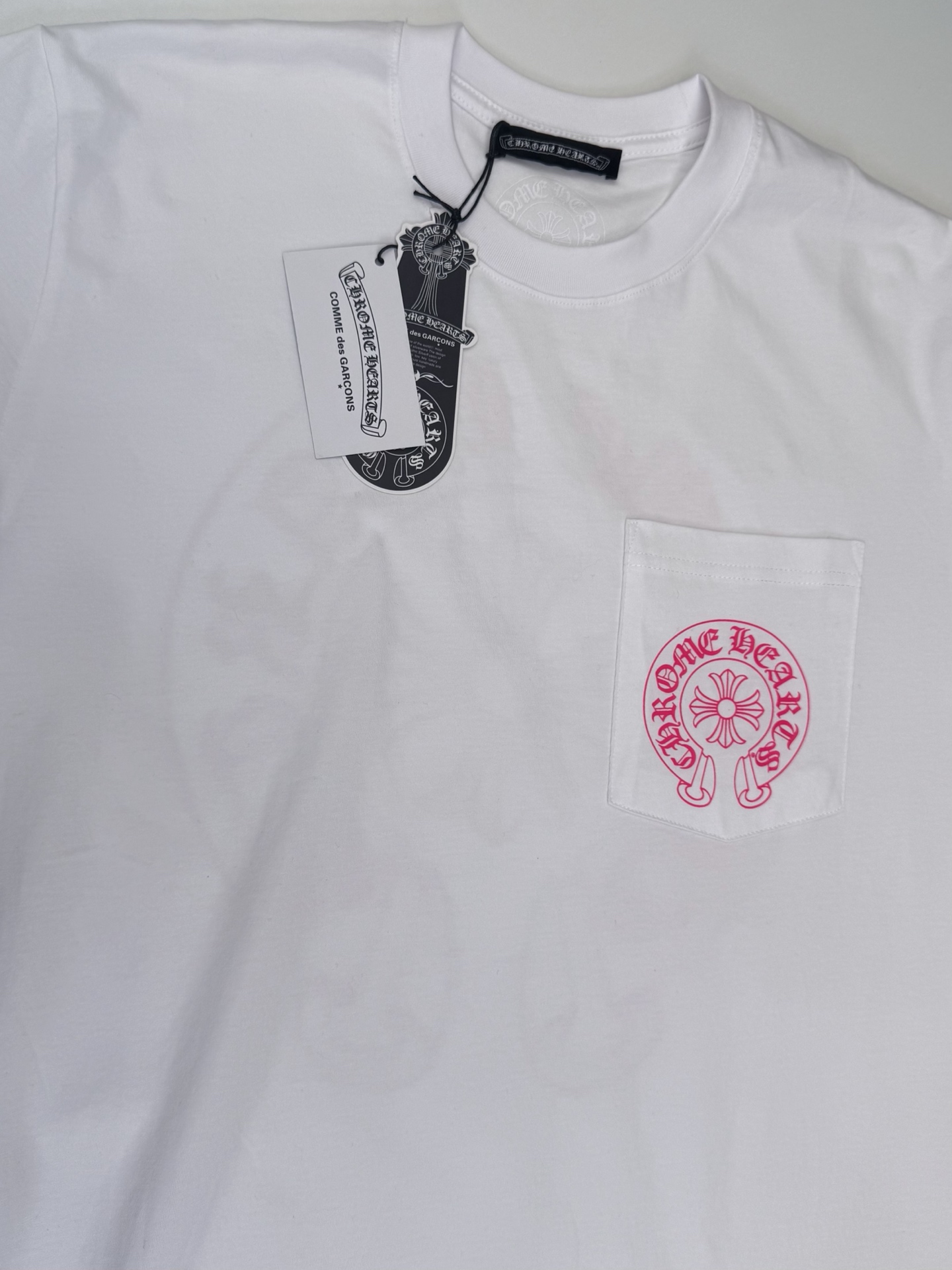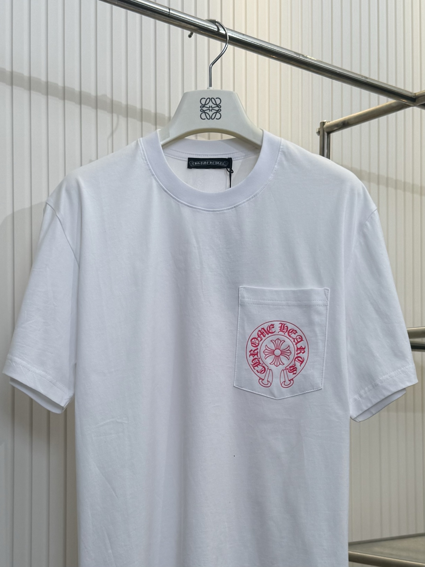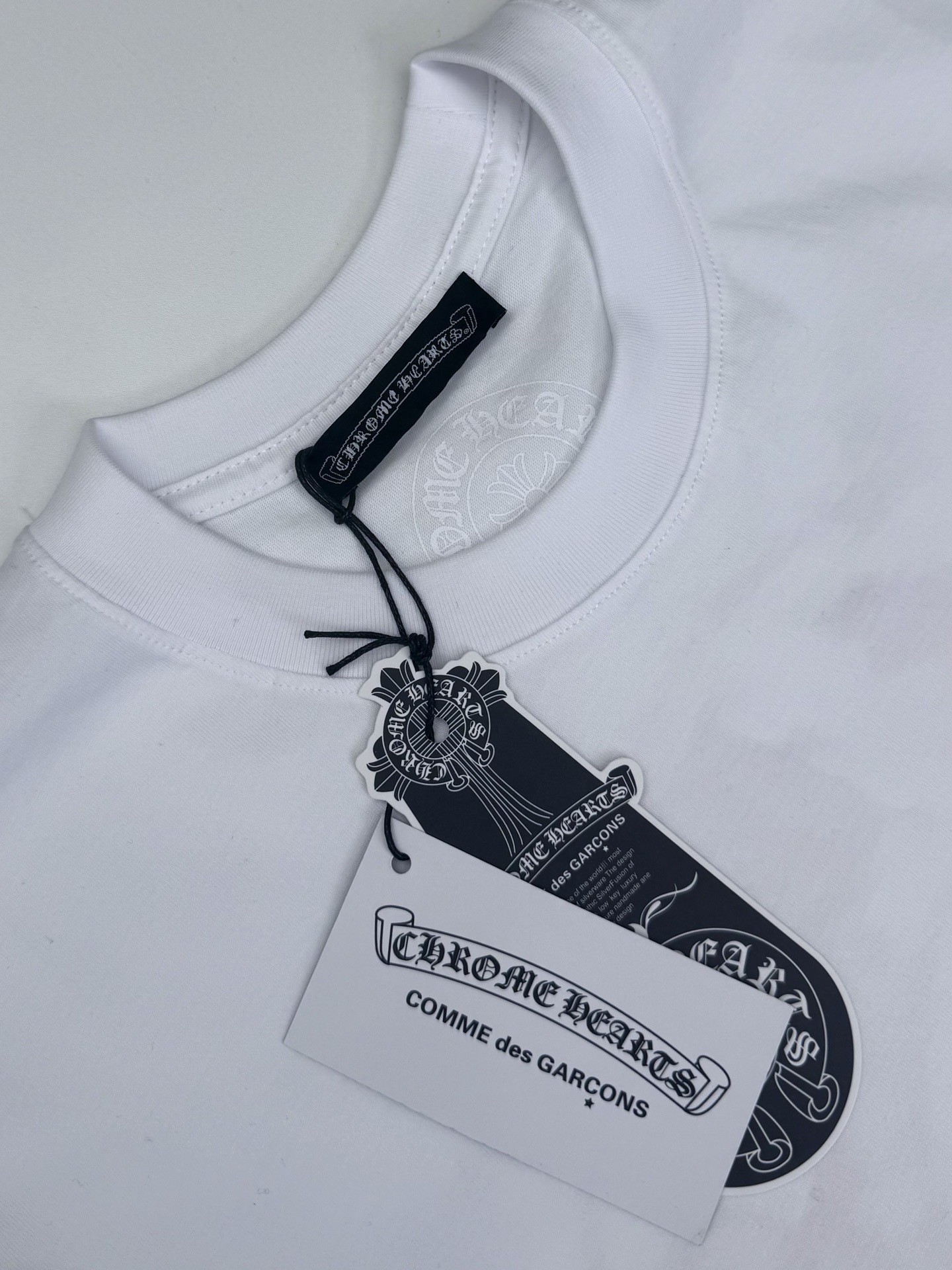 这款衣服是AAAAA 1:1 质量 (非常棒). 使用了和原版一模一样的材料. 商标部分也保持了和克罗心/Chrome Hearts一样. 图片拍摄是实物衣服拍摄, 您所收到的实物保证和我们图片一模一样.