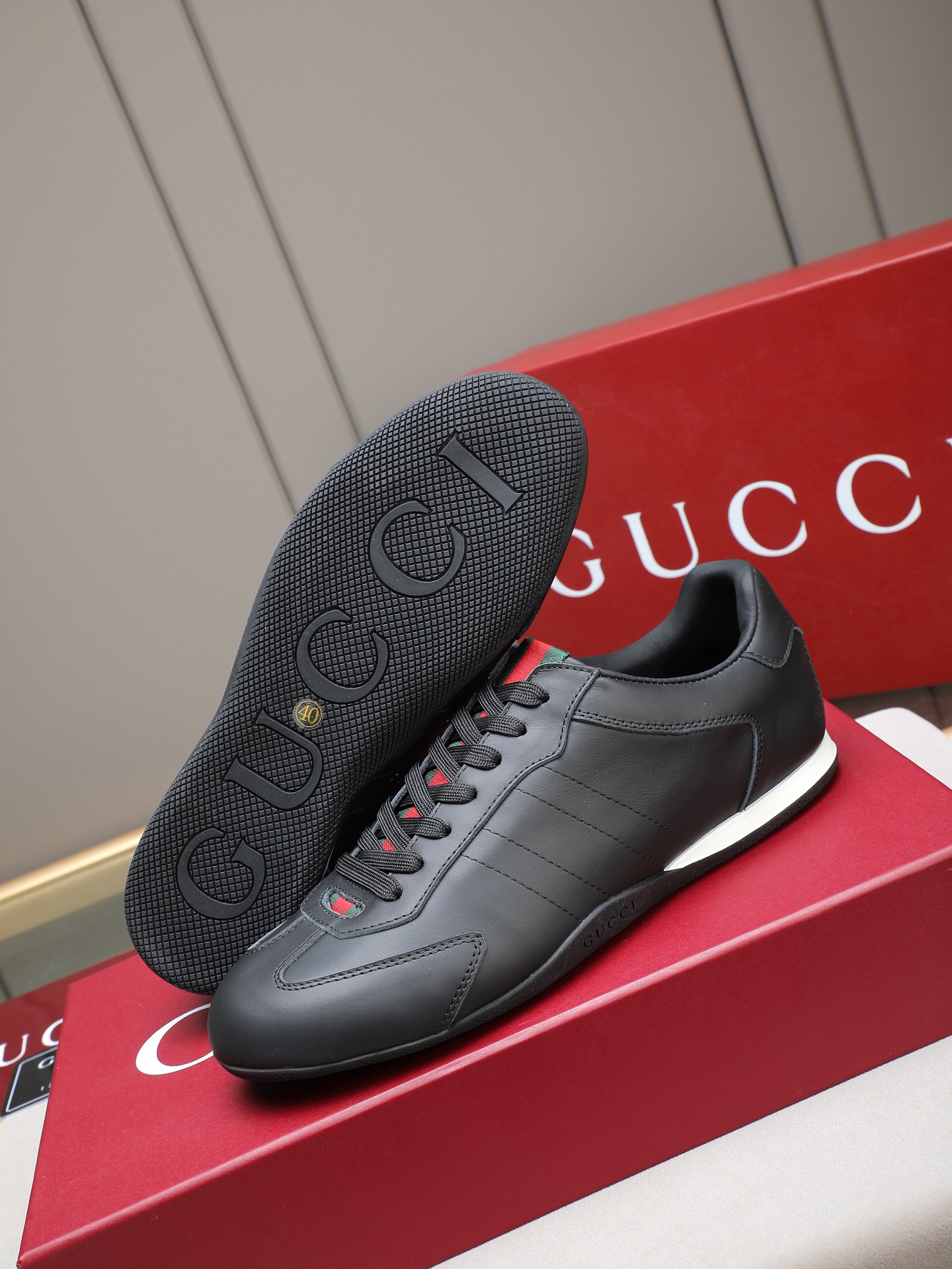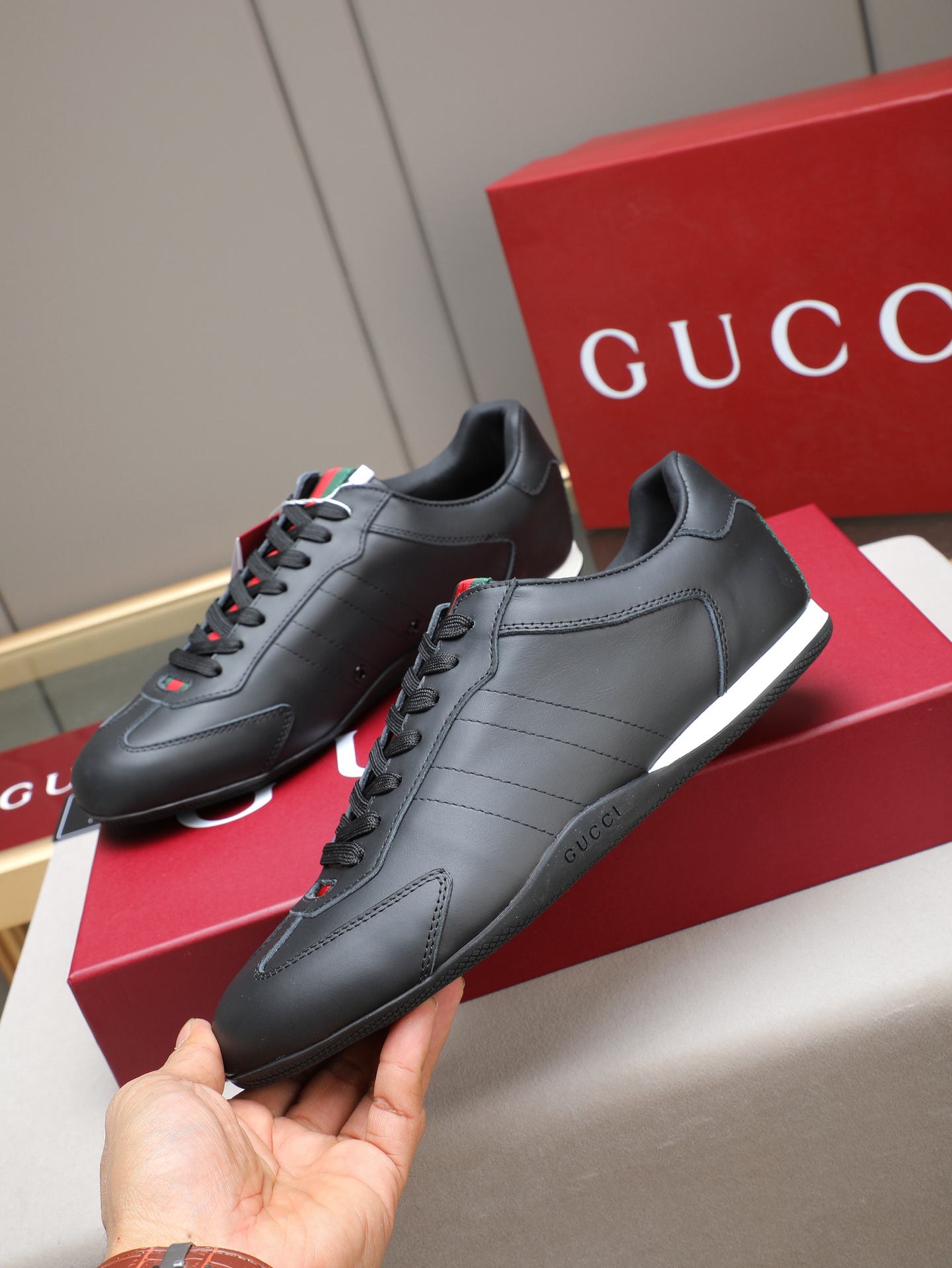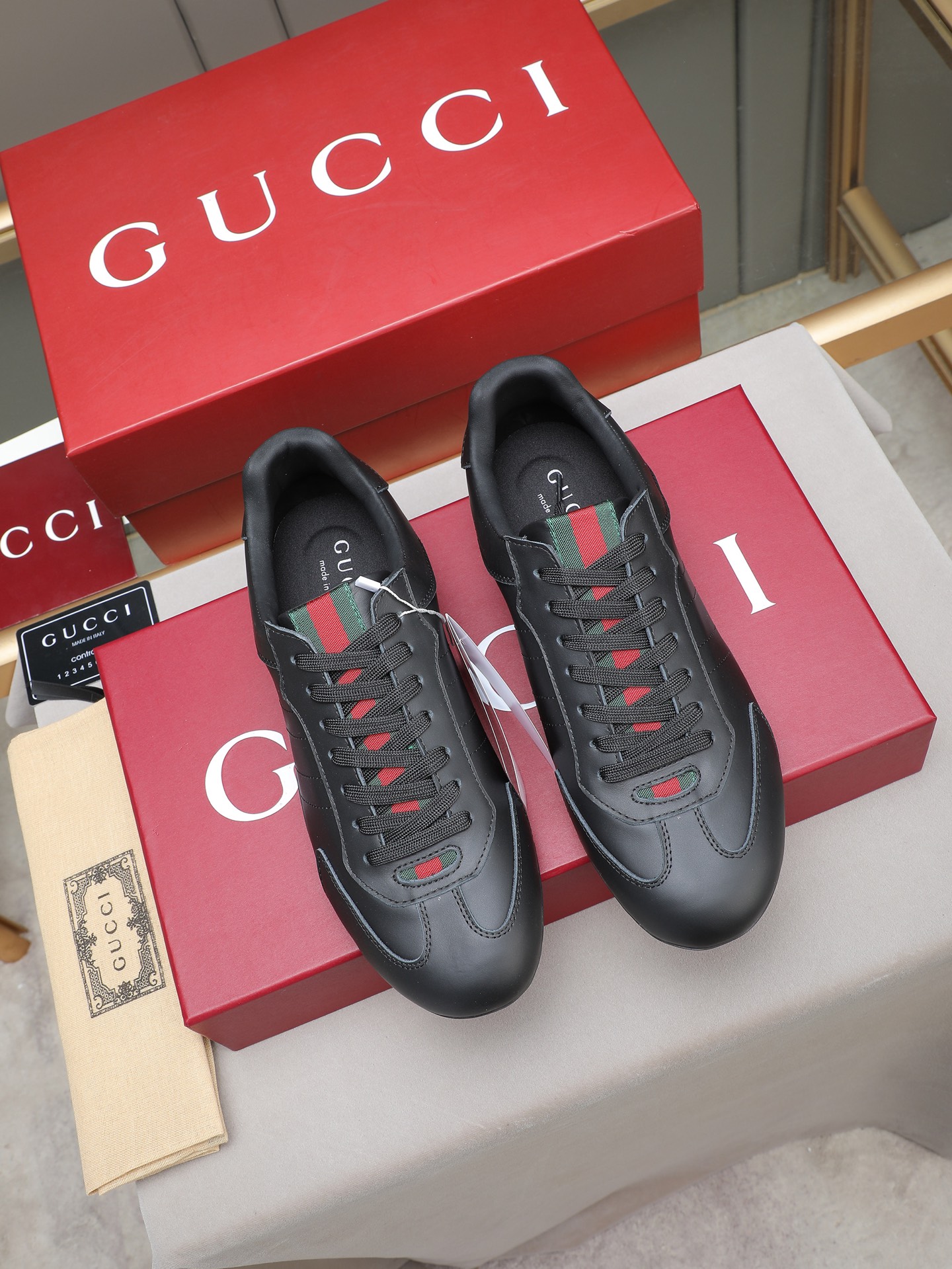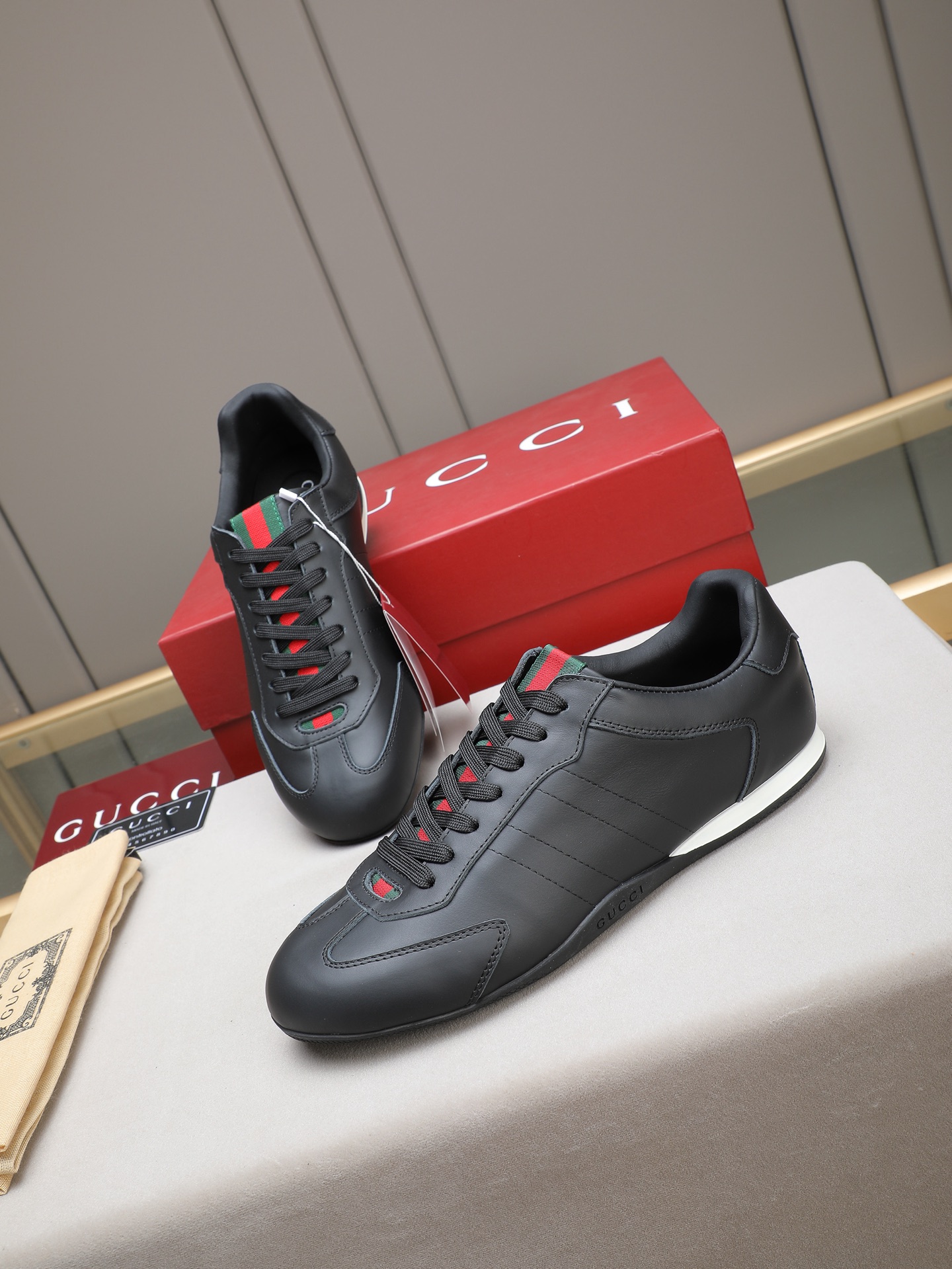 这款鞋子是AAAAA 1:1 质量 (非常棒). 使用了和原版一模一样的材料. 商标部分也保持了和古奇/Gucci一样. 图片拍摄是实物鞋子拍摄, 您所收到的实物保证和我们图片一模一样.