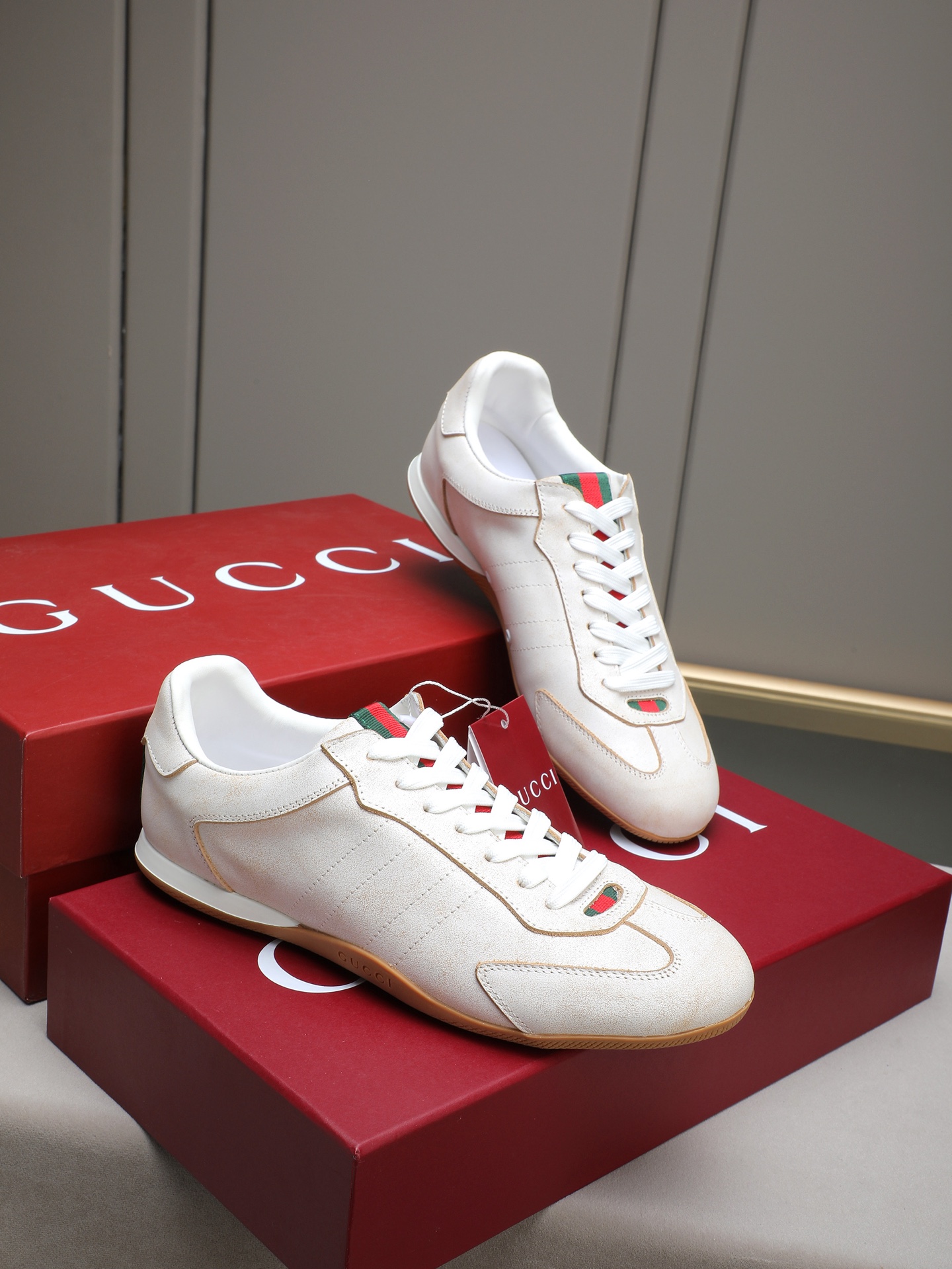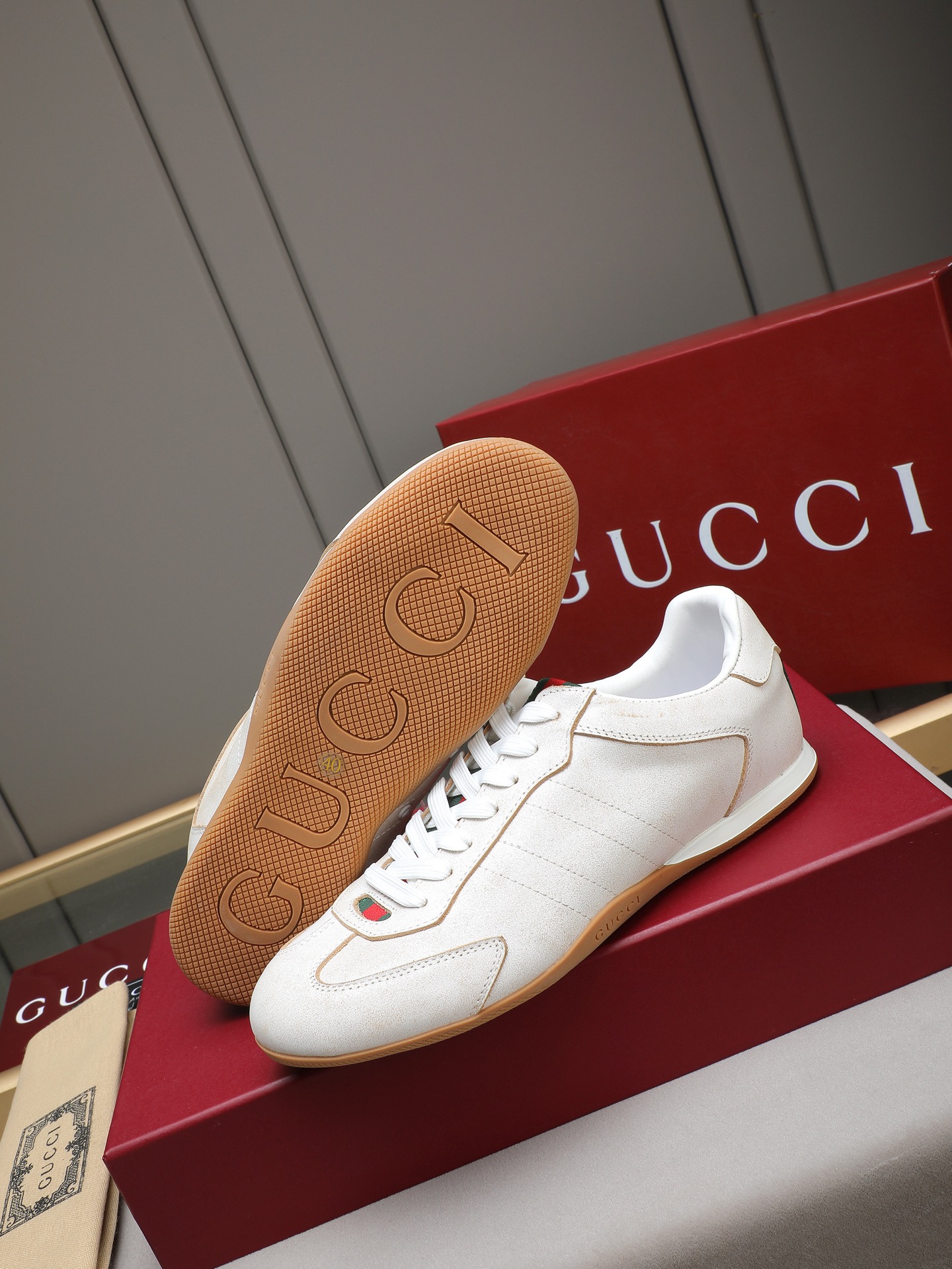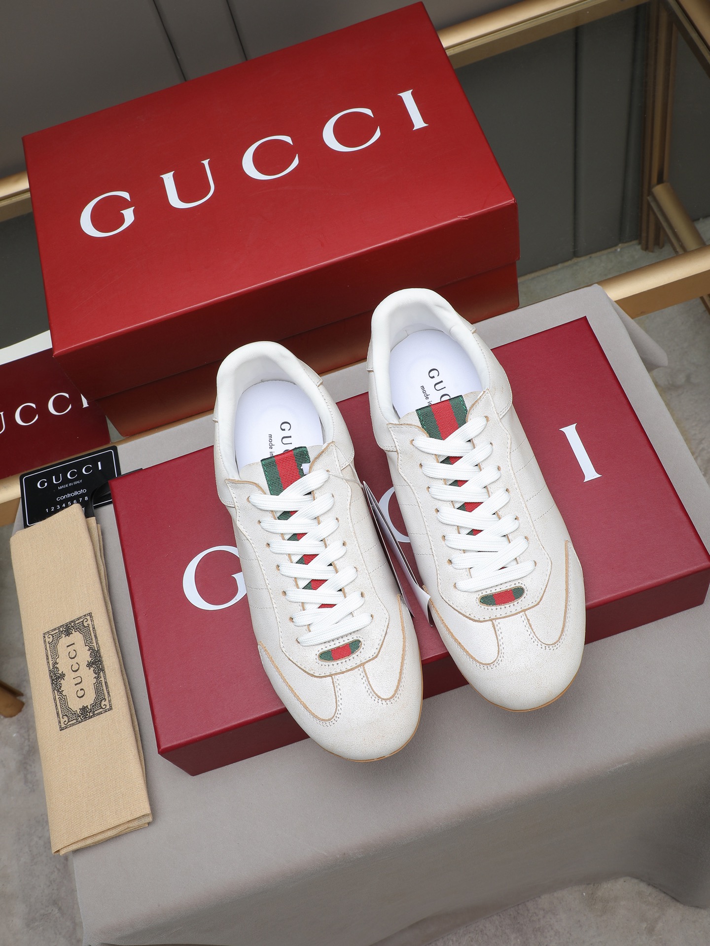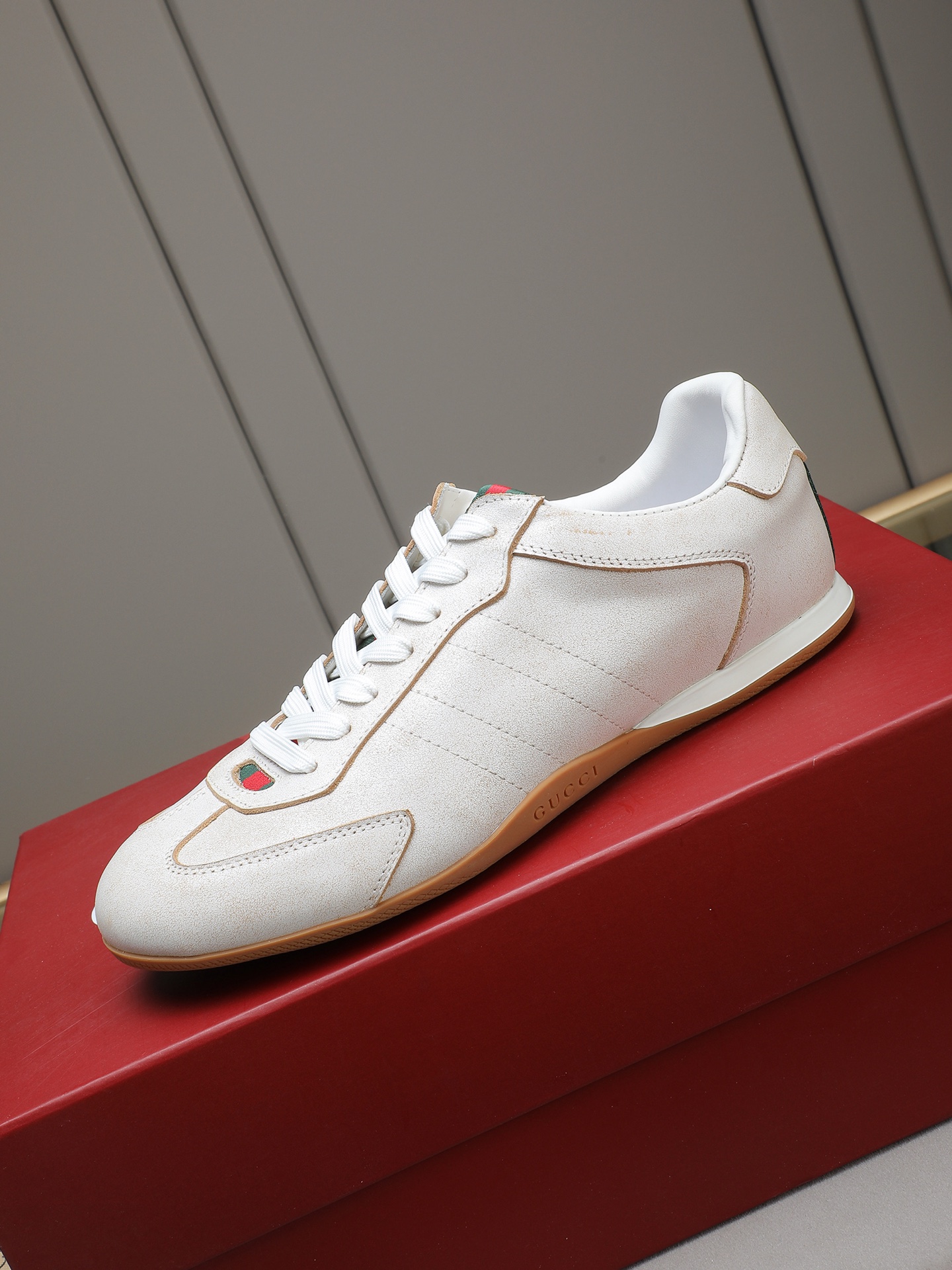 这款鞋子是AAAAA 1:1 质量 (非常棒). 使用了和原版一模一样的材料. 商标部分也保持了和古奇/Gucci一样. 图片拍摄是实物鞋子拍摄, 您所收到的实物保证和我们图片一模一样.