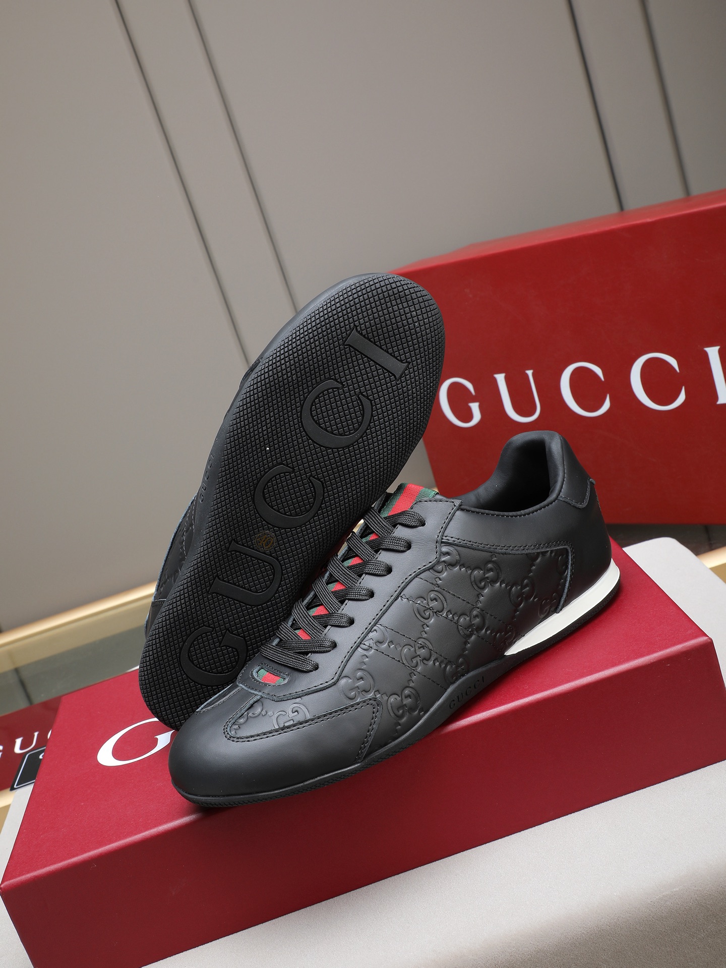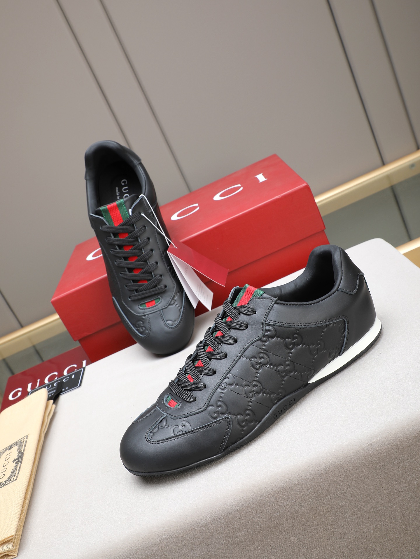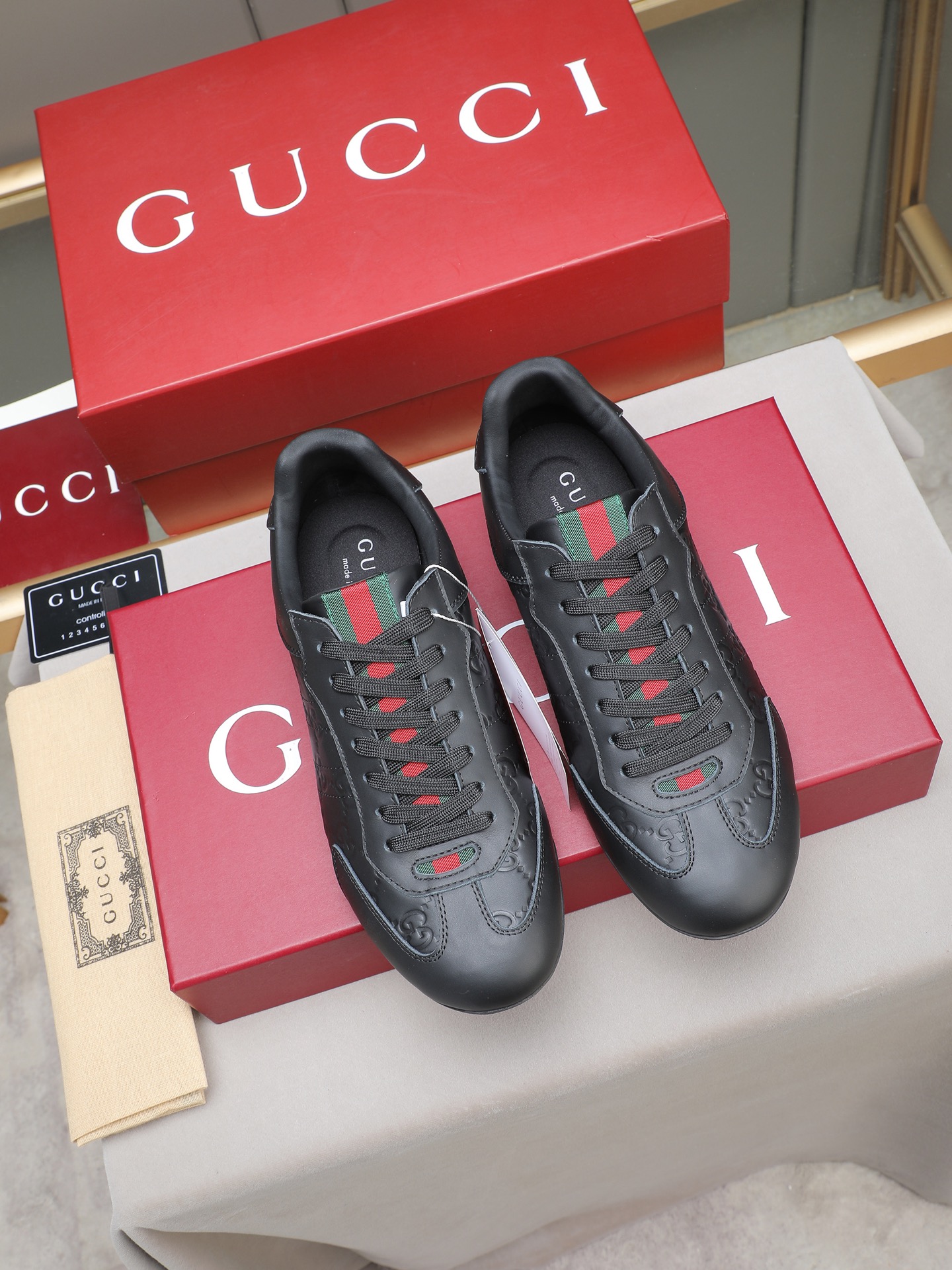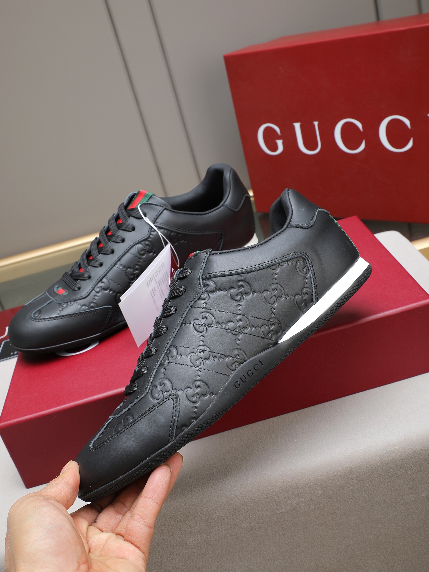 这款鞋子是AAAAA 1:1 质量 (非常棒). 使用了和原版一模一样的材料. 商标部分也保持了和古奇/Gucci一样. 图片拍摄是实物鞋子拍摄, 您所收到的实物保证和我们图片一模一样.